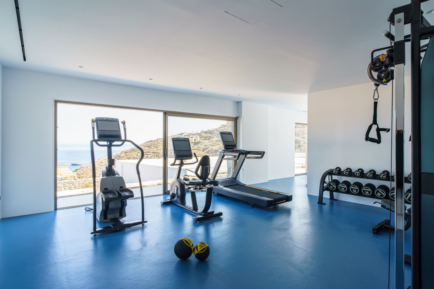 Here, wellness isn’t an afterthought—it’s a core part of the experience. High atop the villa, you’ll find a glass-walled gymand a dedicated massage room, both offering sweeping views over the sea. Whether you’re lifting weights, finding your breath in a morning stretch, or indulging in a massage with the ocean as your backdrop, the setting elevates every moment.