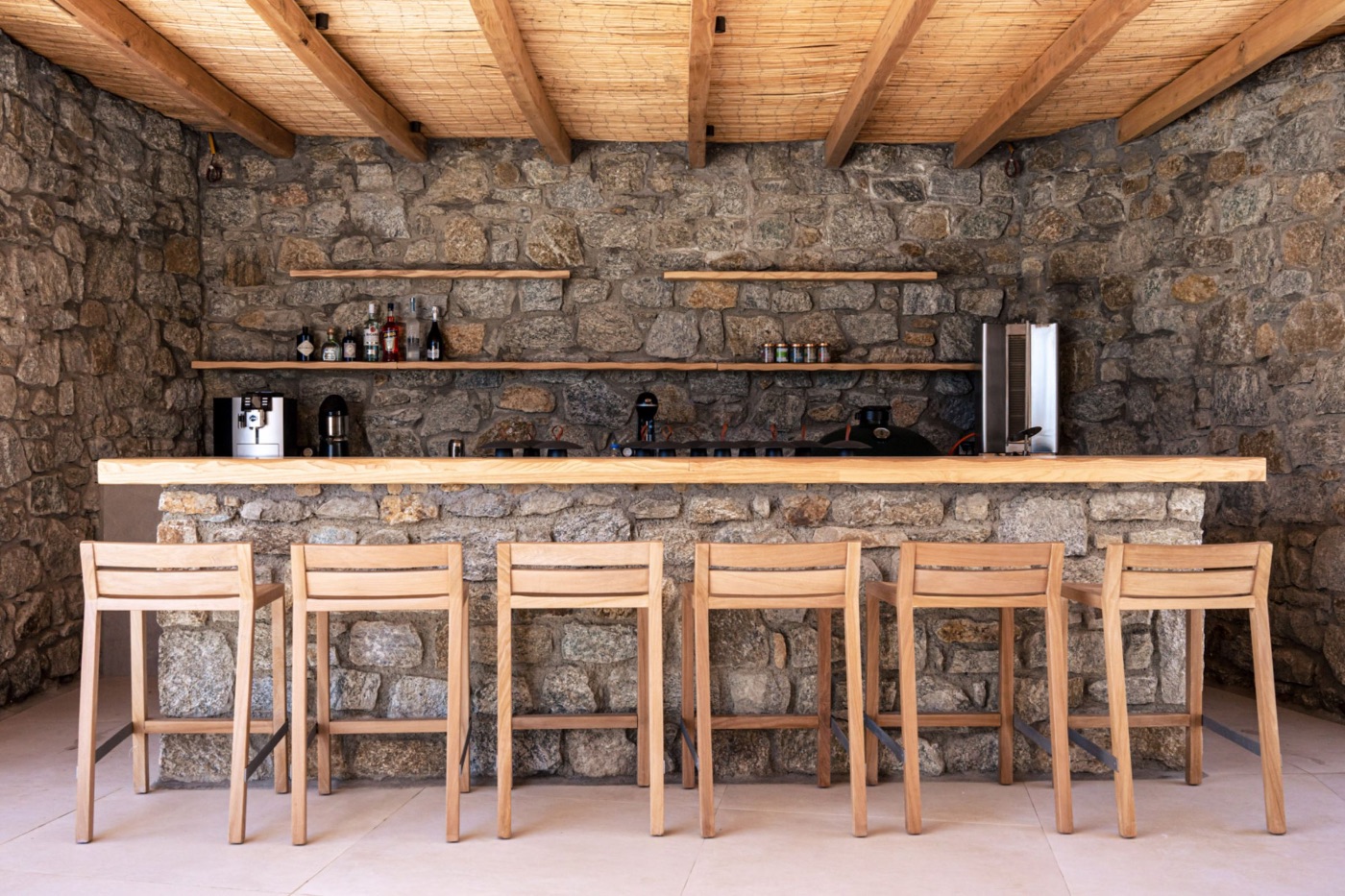 A full outdoor bar, perfect for sundowners overlooking Psarou