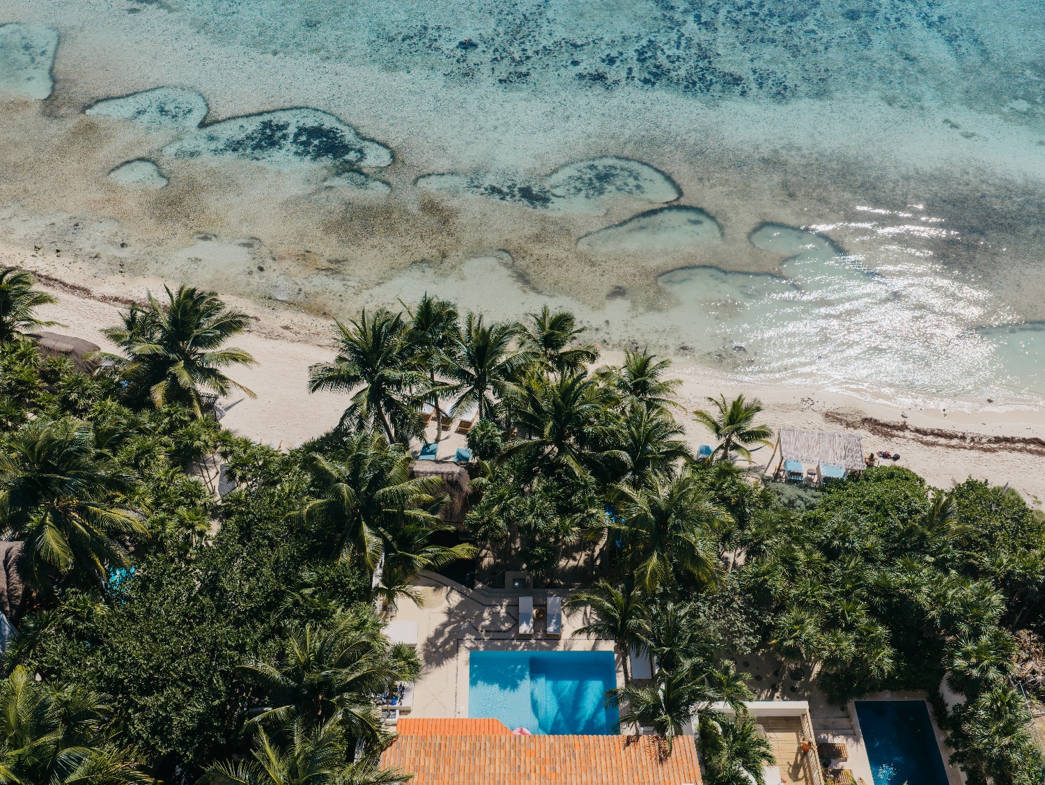 Sueño del Mar is best enjoyed outdoors. Enjoy leisurely afternoons drifting between two lounge areas by the pool, taking naps occasionally and alternating dips with book chapters. When you’re prepared for a change of scenery and a broad view of the sky and sea, ascend to the roof lounge. The beachside palapa at the water’s edge invites you to eat in the shade while keeping your toes in the sand and listening to the surf.