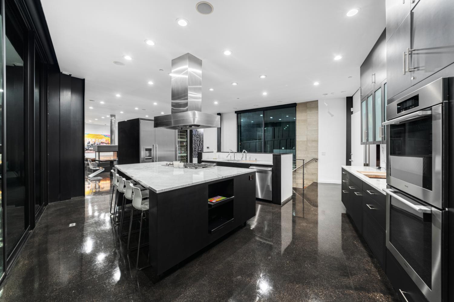 A house that announces itself not by ornament but by view—a continuous, cinematic sweep of sky and distant ridgeline that becomes the property’s animating presence—is set into the slope with sightlines that drink in the ravine from every room. Constructed from the ground up as a purposeful experiment with contemporary materials, the building reads as a graceful machine for light and landscape, with steel, concrete, and glass composed with a discipline that elevates restraint.