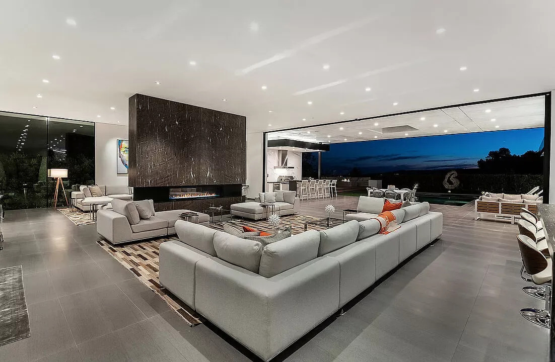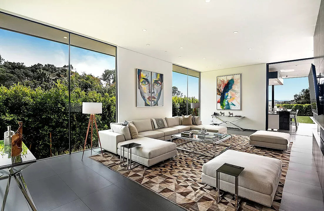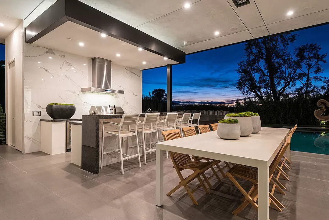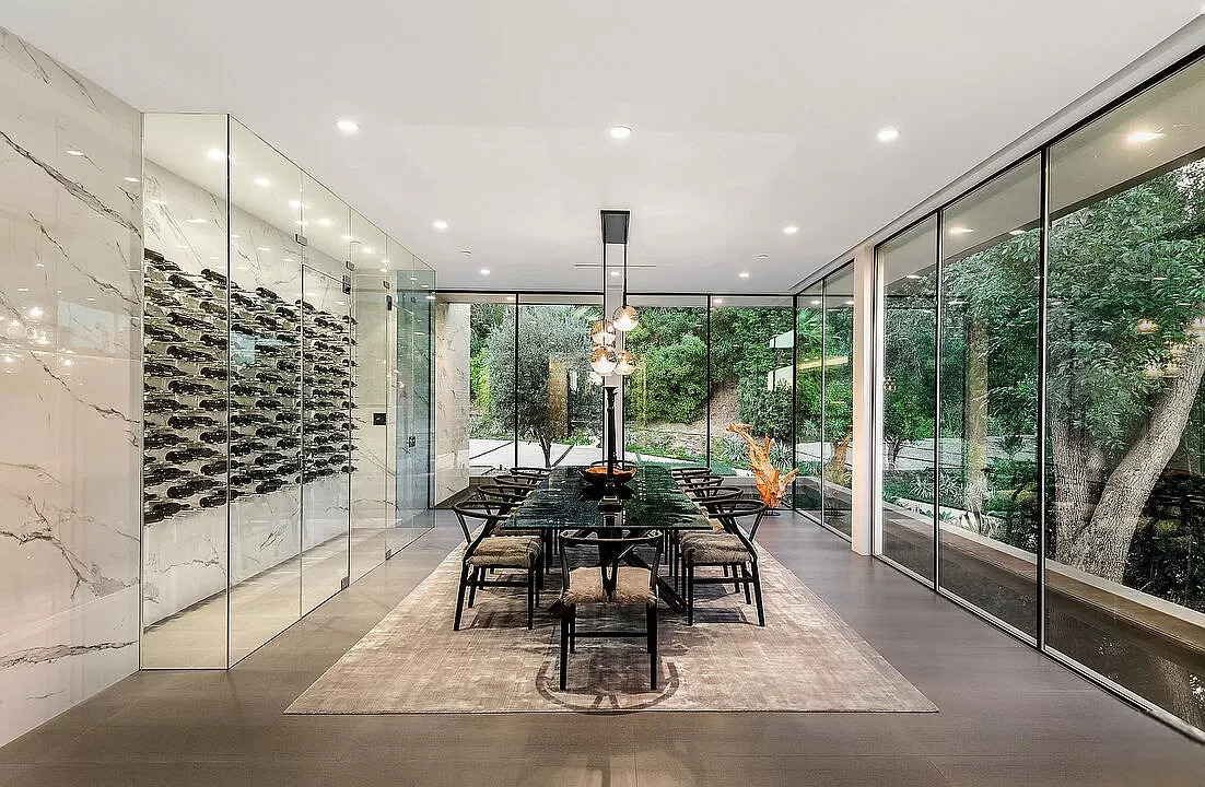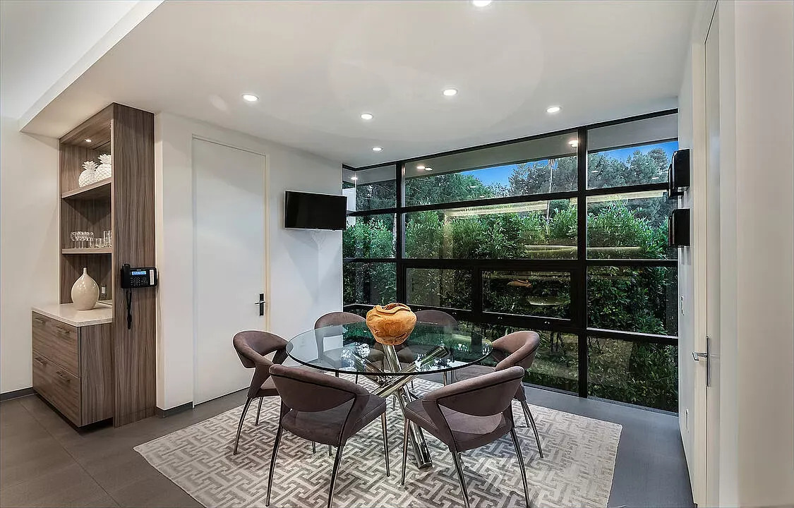 The great room, with its ample proportions, floor-to-ceiling glass, and ease of movement that encourages cocktail hours to spill outdoors, is the social hub of the house. A seamless indoor-outdoor lifestyle begins as the glass doors open; dinners flow onto terraces, conversations take place under the stars at night, and canyon breezes bring a freshness to rooms that the city seldom provides.