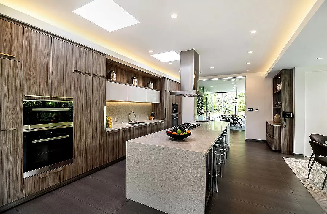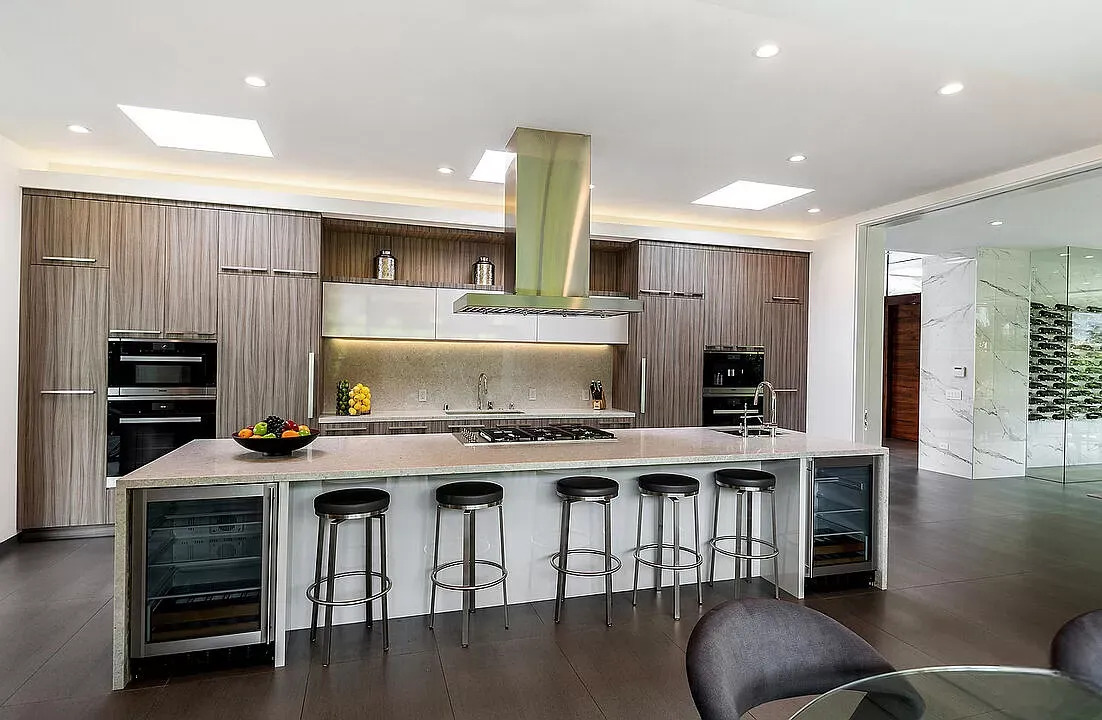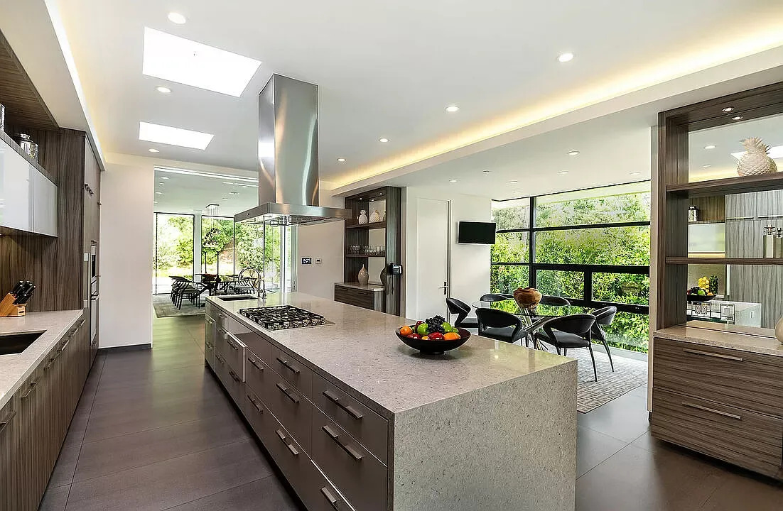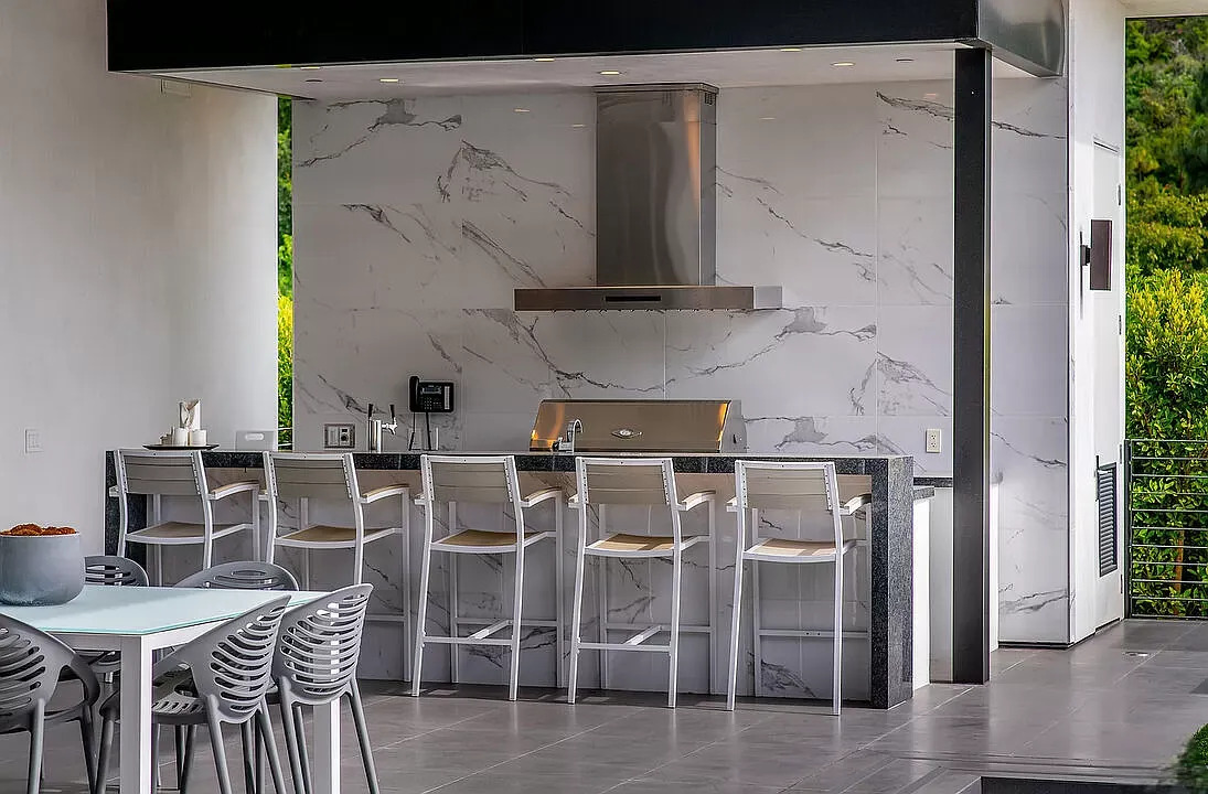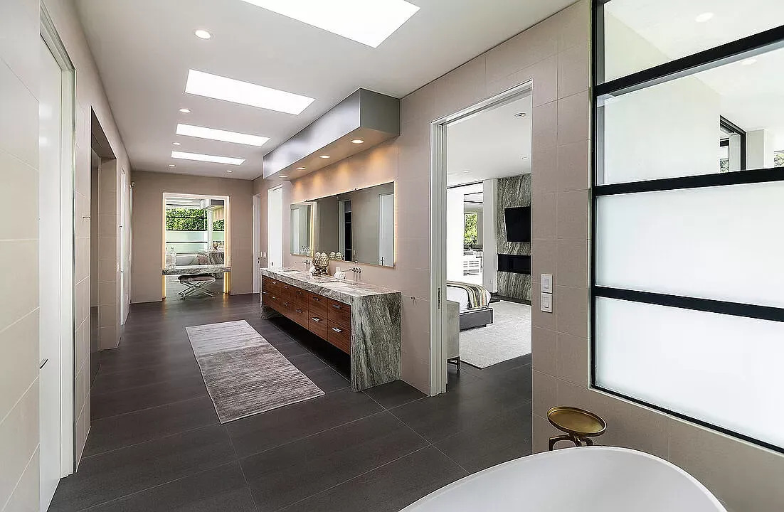 The great room, with its ample proportions, floor-to-ceiling glass, and ease of movement that encourages cocktail hours to spill outdoors, is the social hub of the house. A seamless indoor-outdoor lifestyle begins as the glass doors open; dinners flow onto terraces, conversations take place under the stars at night, and canyon breezes bring a freshness to rooms that the city seldom provides.