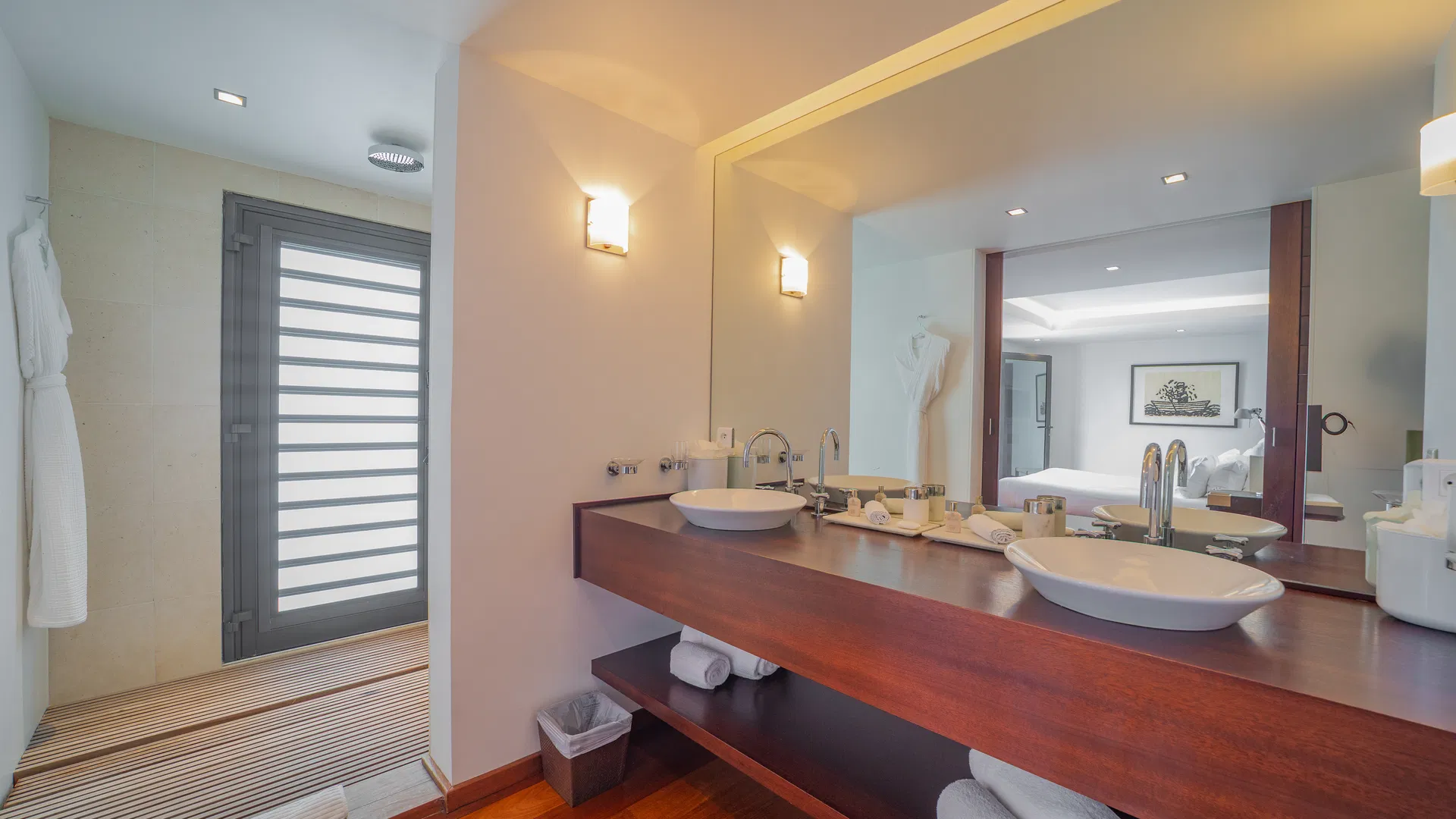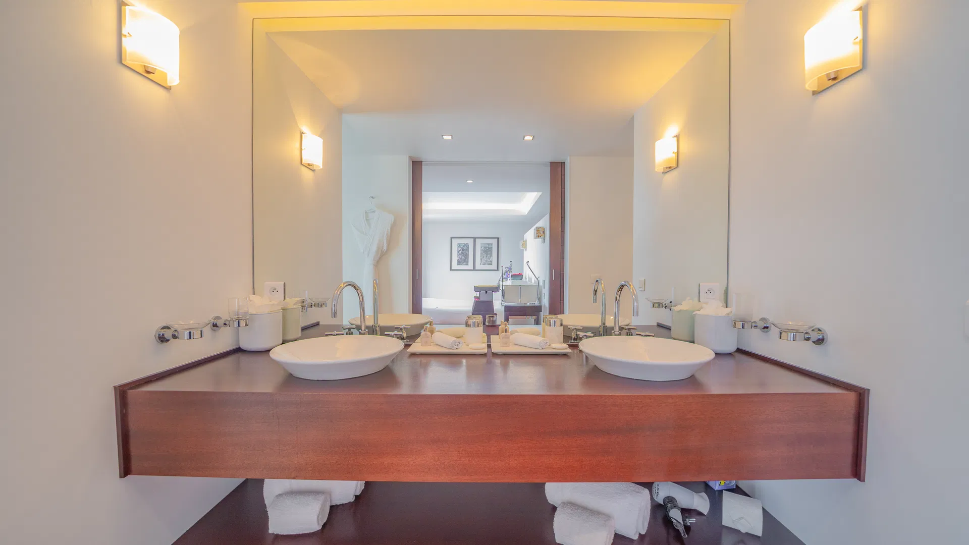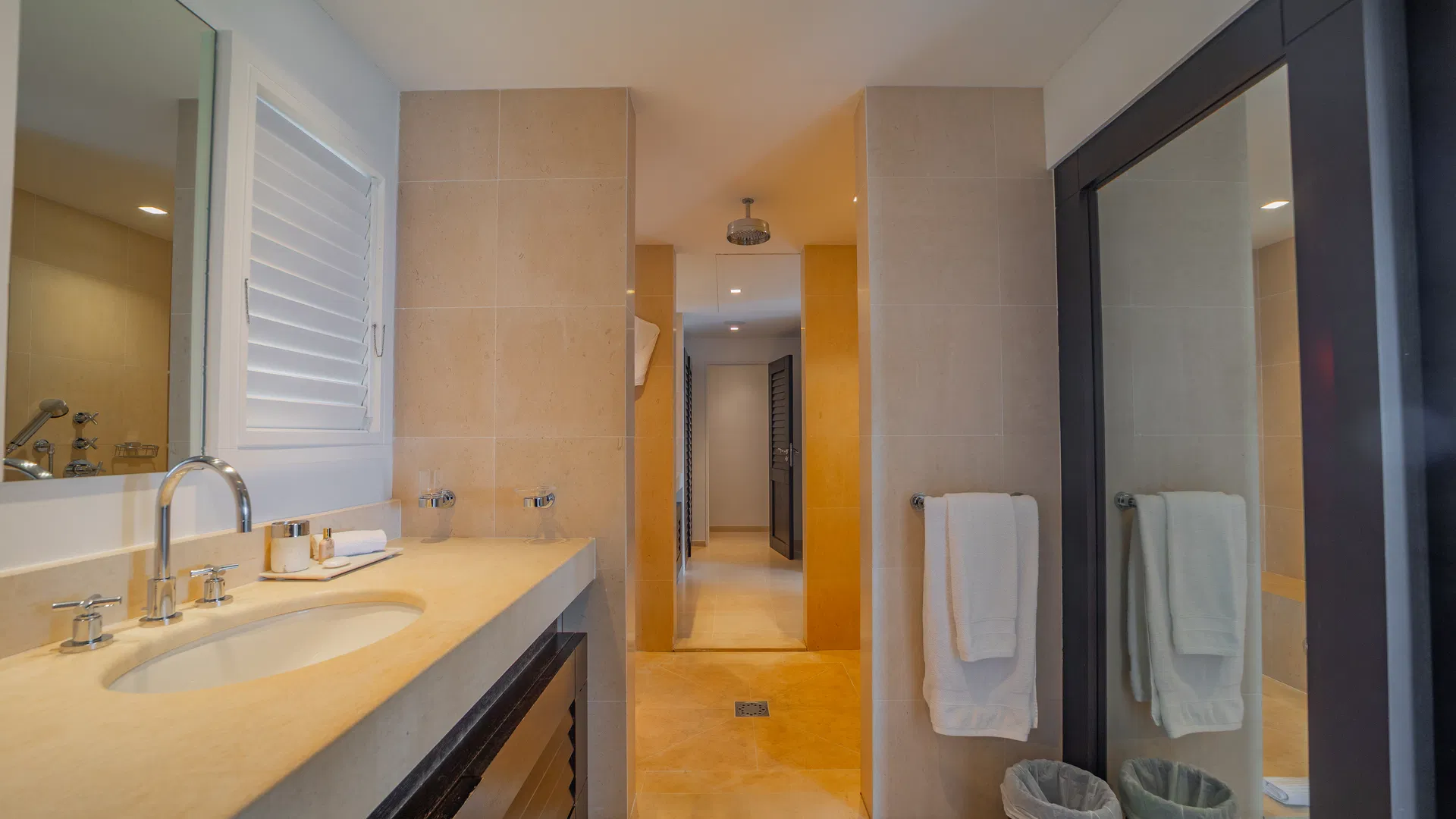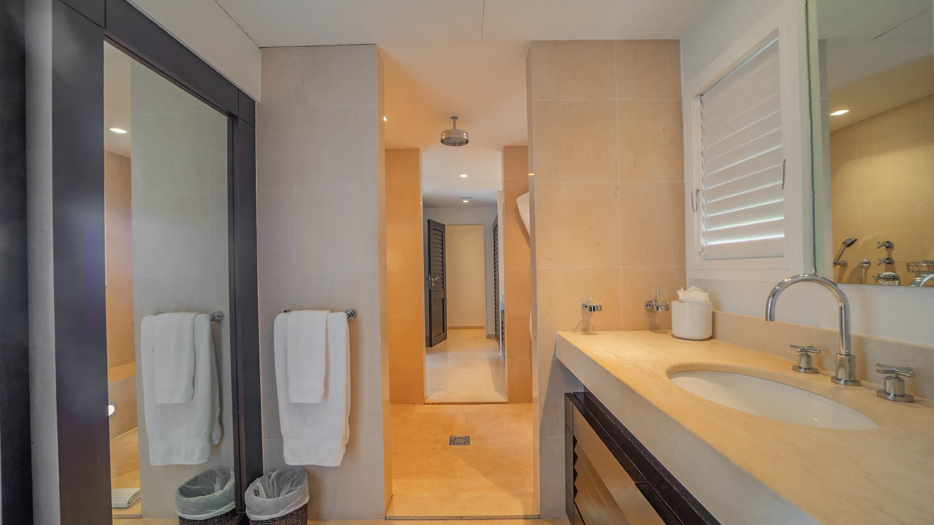To optimize privacy and view, the property features four bedrooms arranged in tiers. Two suites on the main floor offer expansive views of the sea and spa-like bathrooms with double vanities and large showers that will take you from bed to the stars.