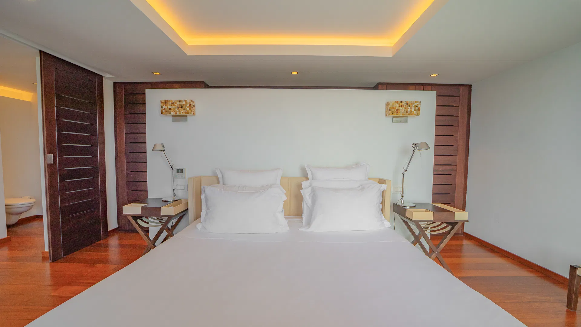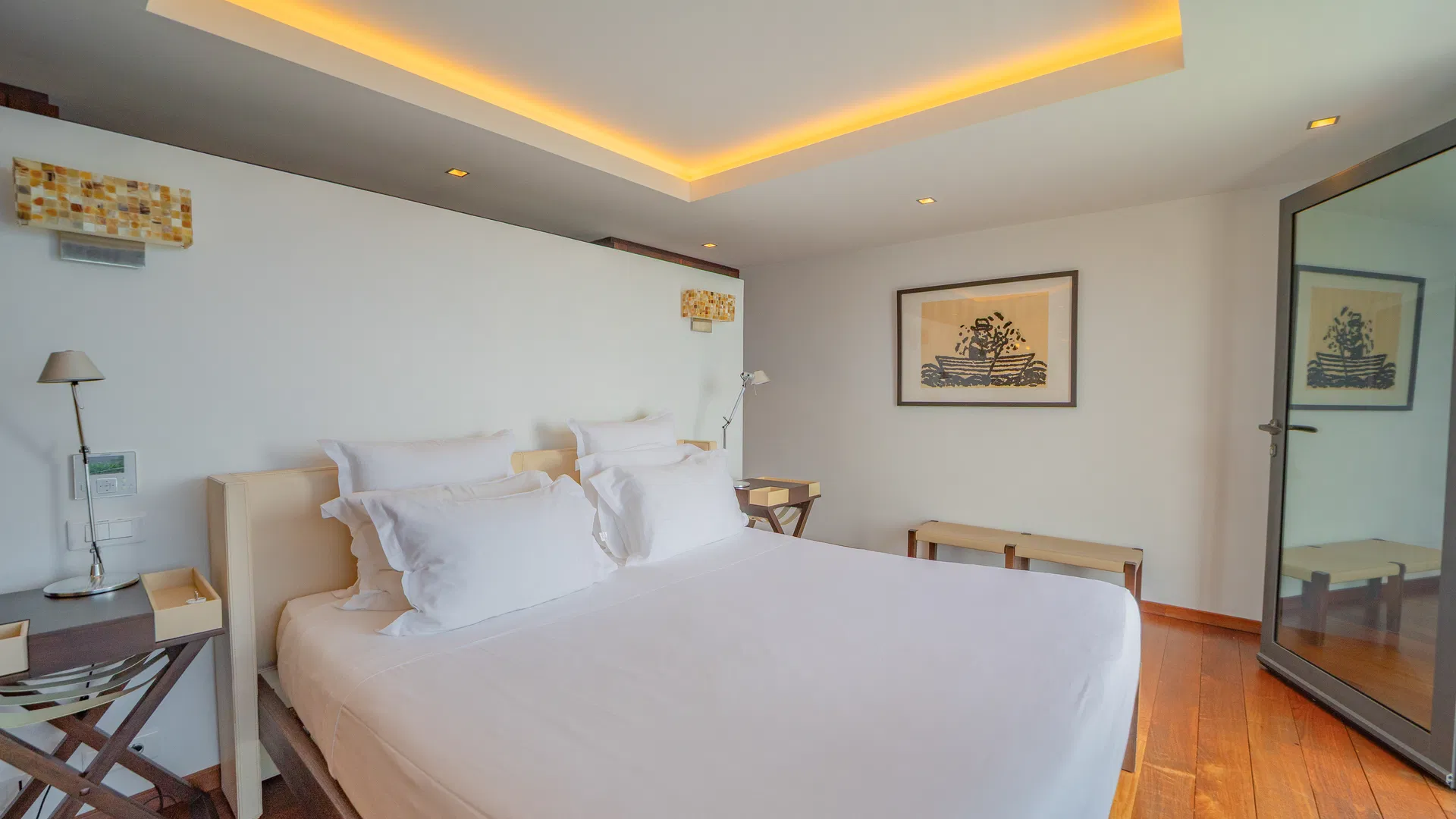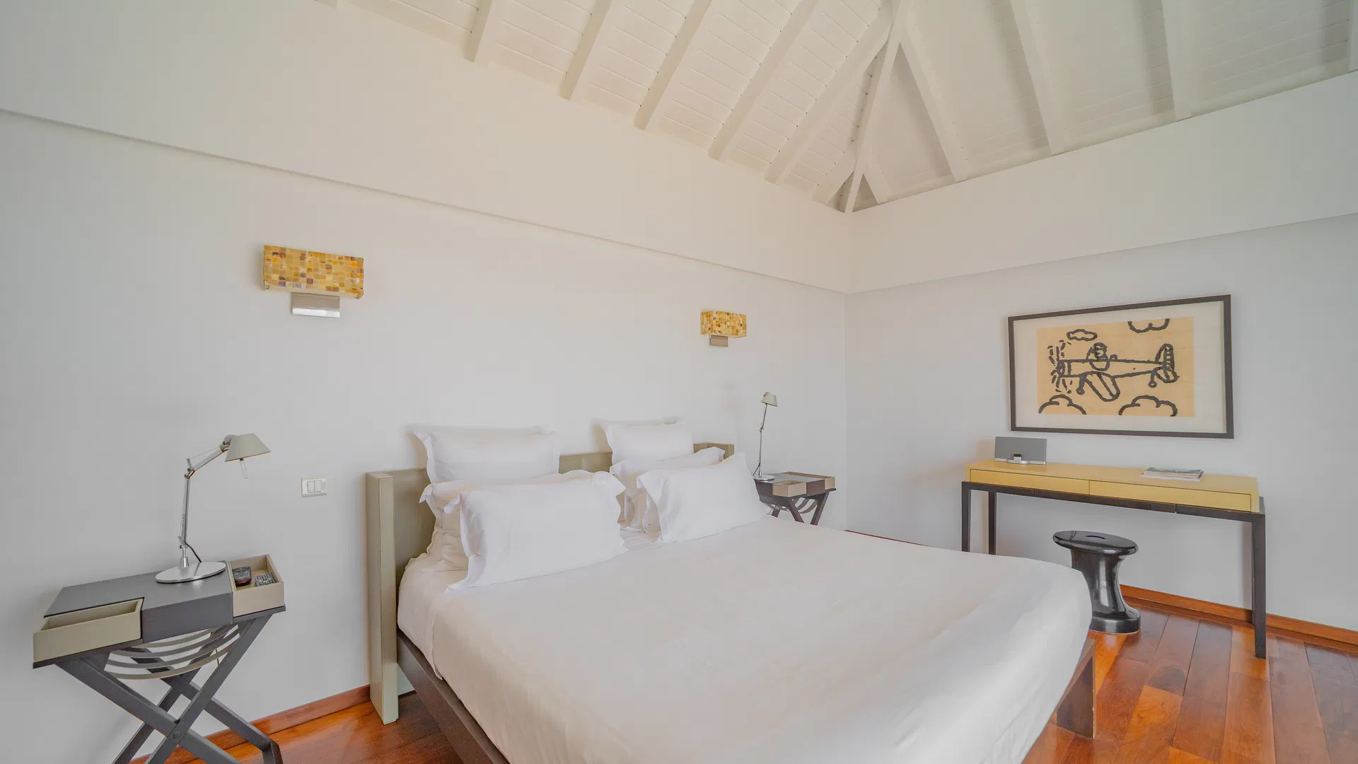 On the level below is a third main suite, which can be accessed by a separate staircase and has a furnished deck of its own, perfect for peaceful mornings when the only company is the wind and the water. A level up, a separate cottage transforms into a tiny haven complete with a large ensuite, a private terrace with a Jacuzzi for stargazing and late-night chats while sipping cold bottles from the cave, and a lounge and office.