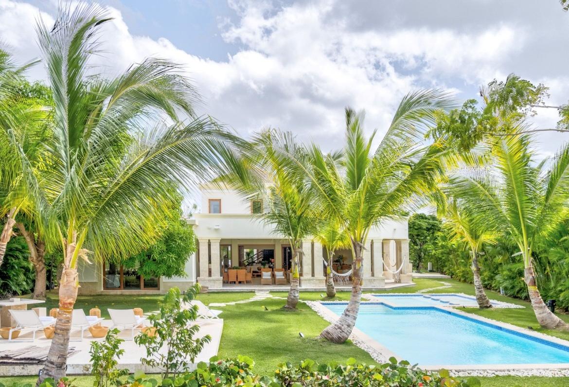 The house lives as comfortably as it looks thanks to generously scaled rooms inside that balance beauty and function, which are set in motion by majestic columns and a gracious entrance. Even in the height of summer, the cool Coralina floors, tall ceilings, and elegant millwork keep afternoons serene. Additionally, the walls of doors that open to the golf course and gardens make the distinction between indoors and outdoors more suggestive than definitive. With its classic architecture, modern conveniences, and a setting that makes every hour feel leisurely, this is one of those Punta Cana villas that just feels right.