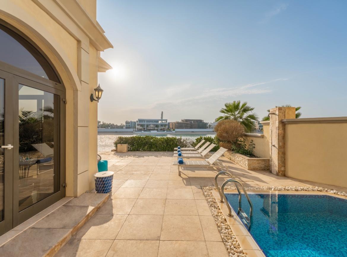 Welcome to a sophisticated blend of urban luxury and coastal serenity on the prestigious Palm Jumeirah island in Dubai. Nestled where the city meets the sea, our luxury villa, Milestone, promises an unforgettable beachside escape immersed in sun-soaked leisure, unparalleled shopping, and tranquil ambiance. Immerse yourself in the opulence for which the Emirate is renowned as you indulge in the exclusivity of our grand villa, boasting breathtaking ocean vistas and a myriad of upscale amenities.