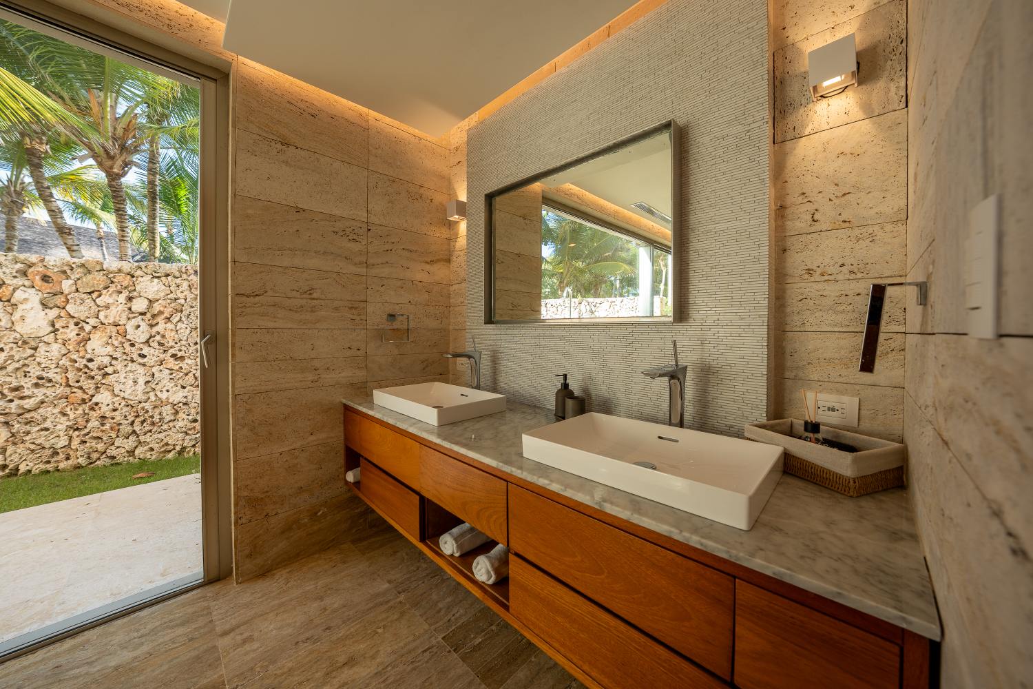 Villa Agua is a study in tranquility outside. The ocean is just beyond, changing color with the hour. Loungers fan out beside the pool so that swimmers and readers can keep company. The terrace is just above the lawn and has shaded living areas that make the midday sun feel civilized. Beach clubs with powder-soft sand and long, swimmable shallows are just a leisurely golf cart ride away. The way Villa Agua blends elegant, water-inspired design with a private, restorative base when you want peace and quiet makes it stand out among Punta Cana villas.