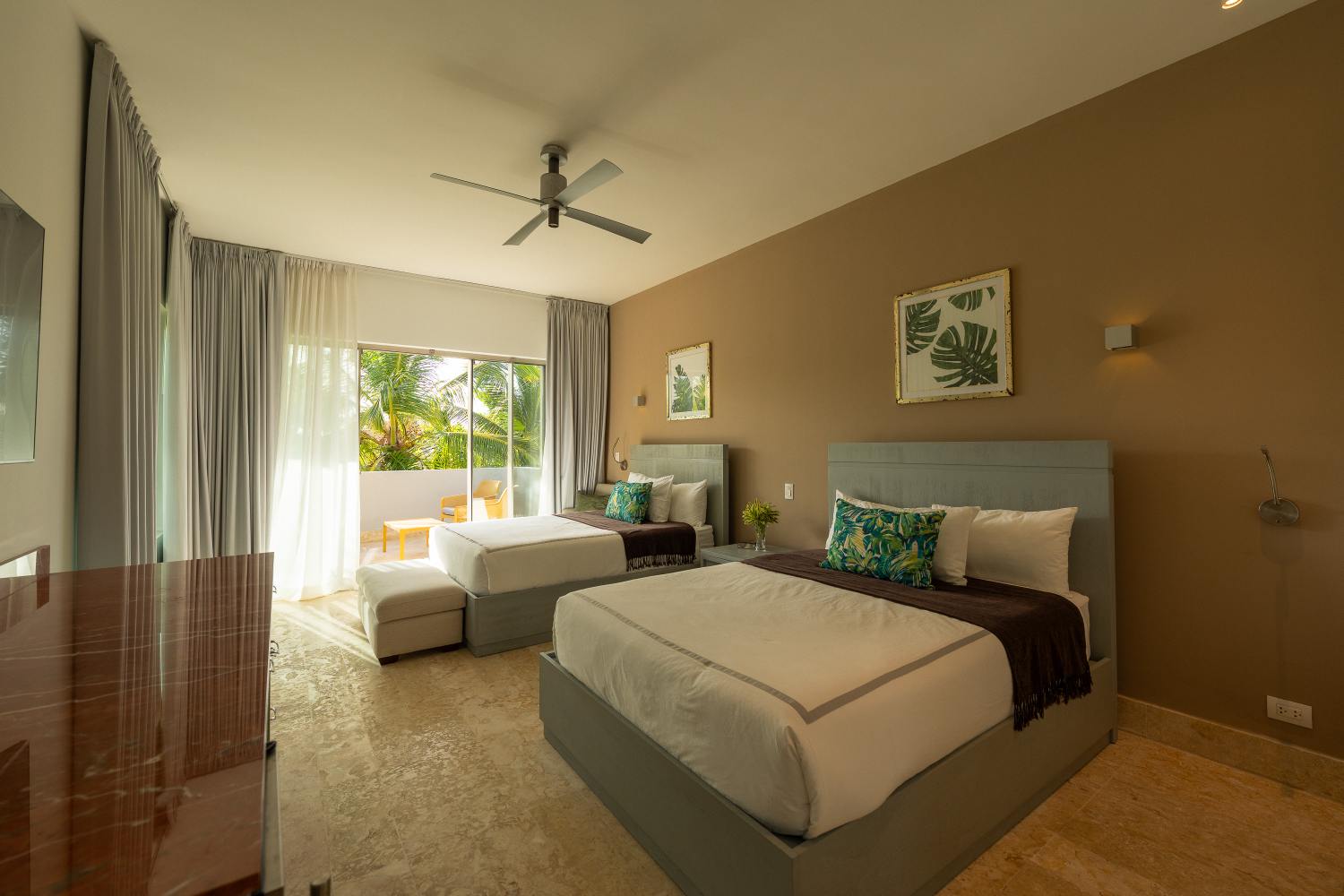 Realistic, door-to-door travel times and distances: Punta Cana International Airport (PUJ) to Villa Agua takes 8–12 minutes off-peak and 12–18 minutes during peak hours; La Cana Beach Club and Golf takes 5–10 minutes by golf cart; Corales Golf Course takes 10–15 minutes; PUNTACANA Village (supermarket, pharmacy, ATM, and cafés) takes 8–12 minutes by car; BlueMall Puntacana takes 12–18 minutes; and trailheads for Ojos Indígenas freshwater lagoons take 10–15 minutes, depending on gate access. Map cue: The Tortuga/Arrecife section of PUNTACANA RESORT & CLUB, located close to La Cana on the southeast coast of the island at roughly 18.51° N, 68.38° W, with easy-to-find signage on the interior boulevards.