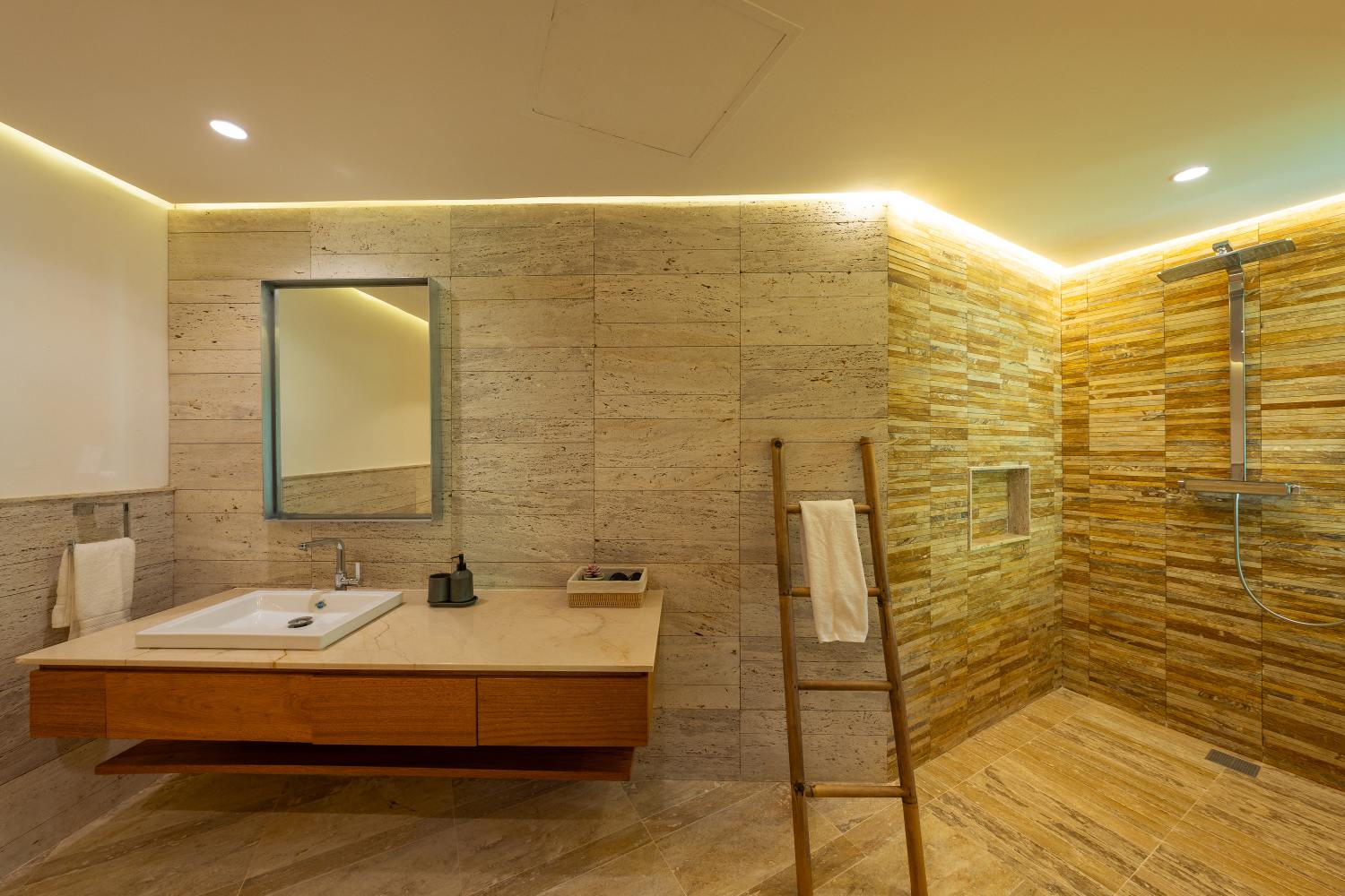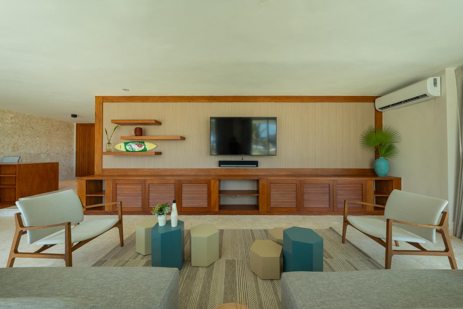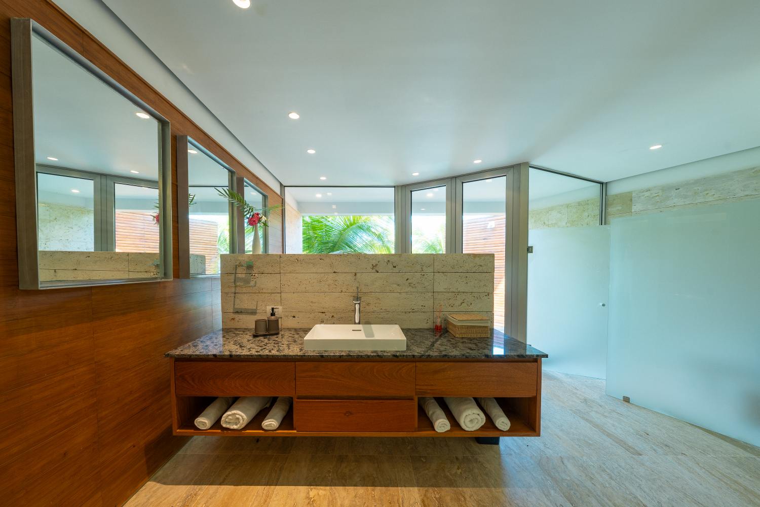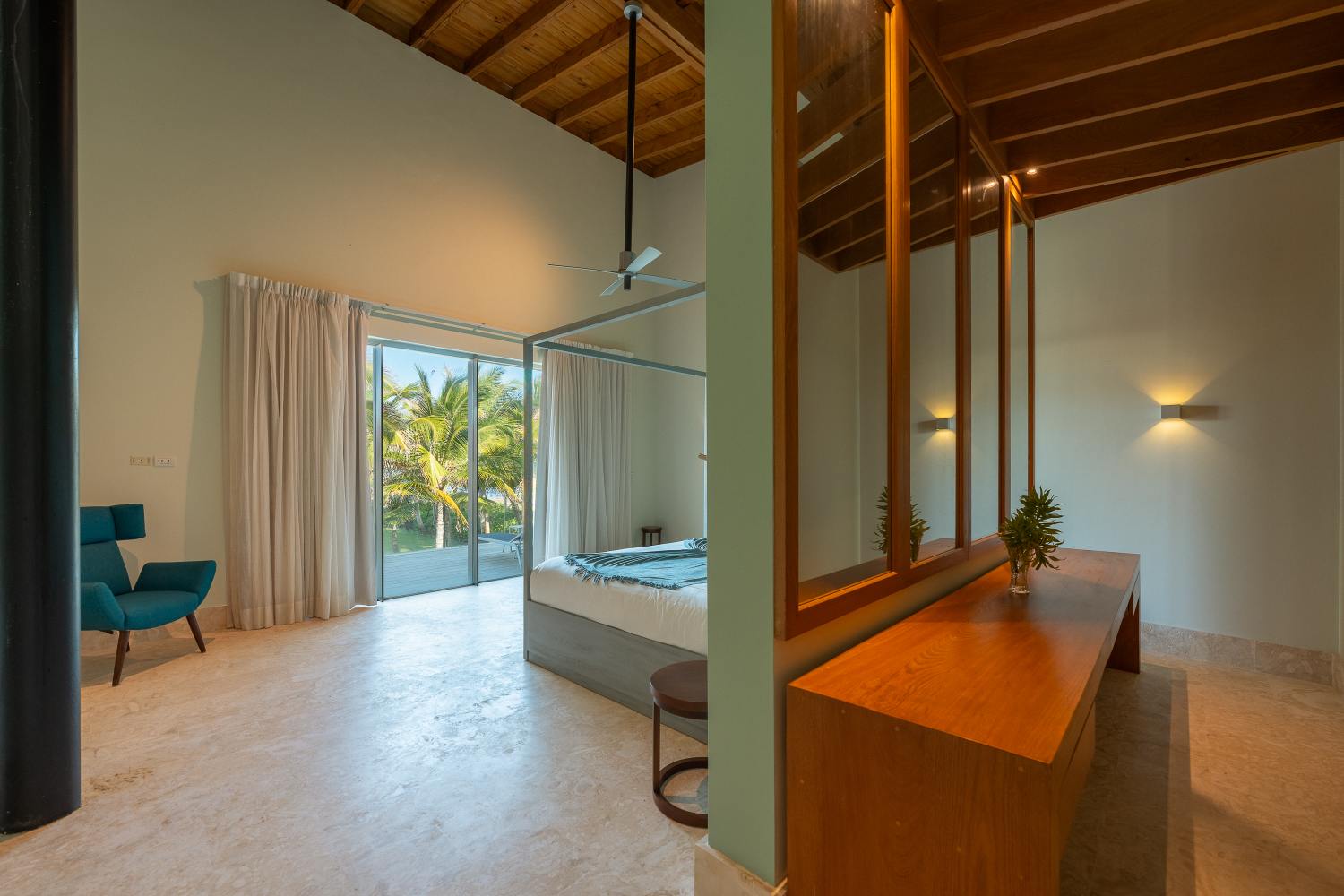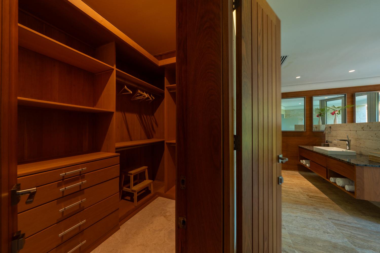Friends settle into areas designed for true rest: breezy circulation by day, storage where you expect it to make suitcases disappear and the villa feel like yours, couples retreat to ocean-facing nooks, and children commandeer a suite close to the garden.