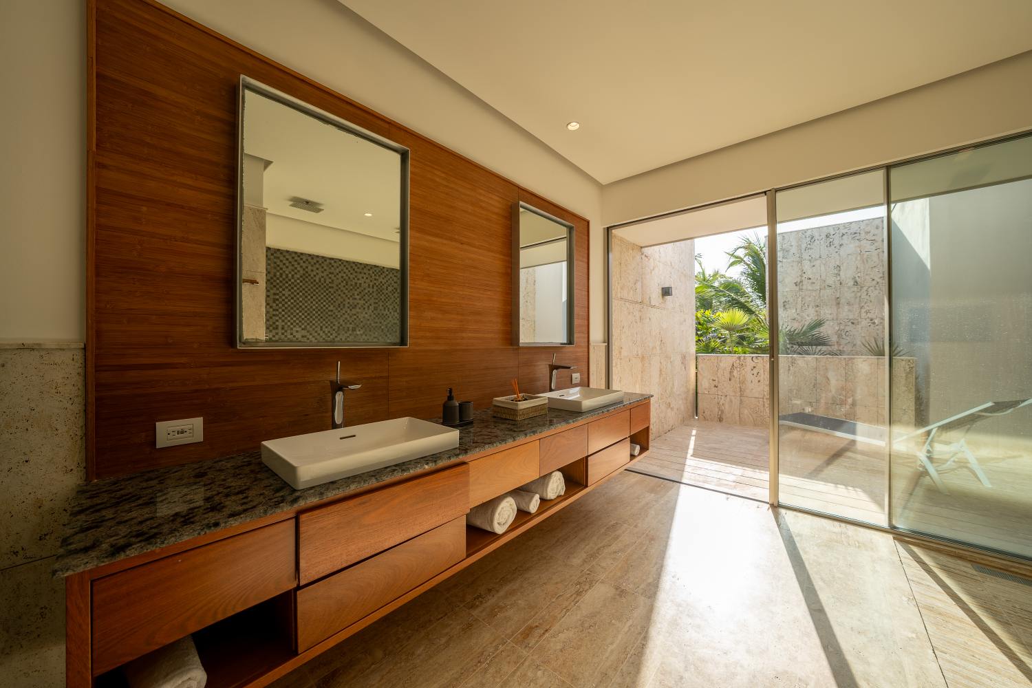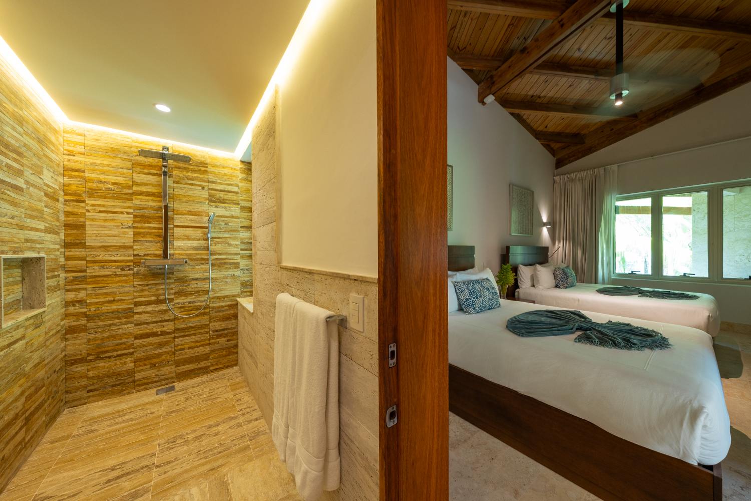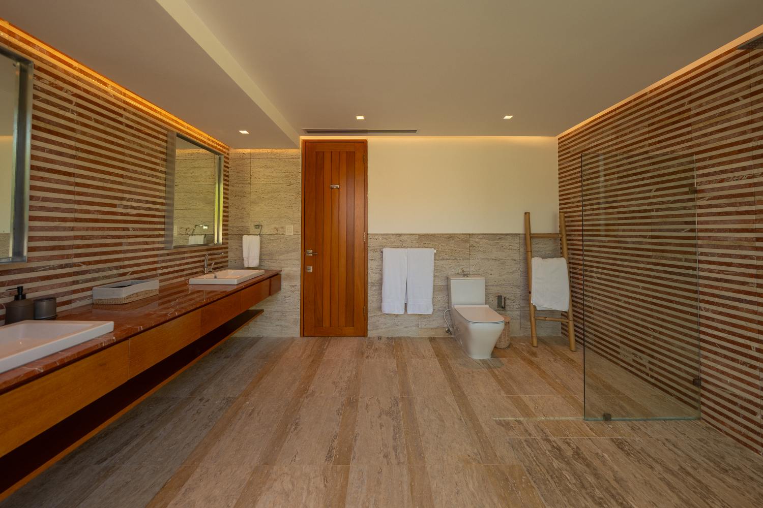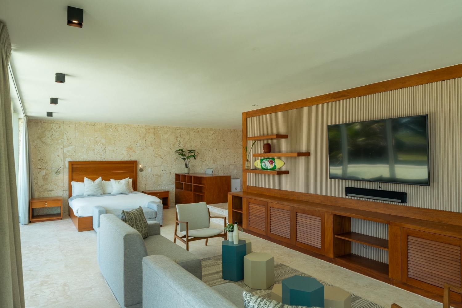 Friends settle into areas designed for true rest: breezy circulation by day, storage where you expect it to make suitcases disappear and the villa feel like yours, couples retreat to ocean-facing nooks, and children commandeer a suite close to the garden.