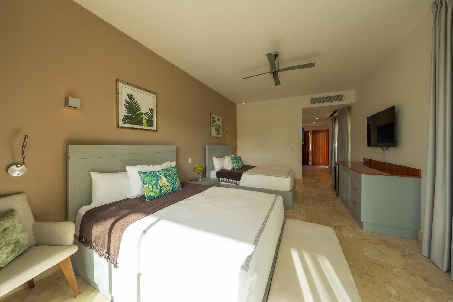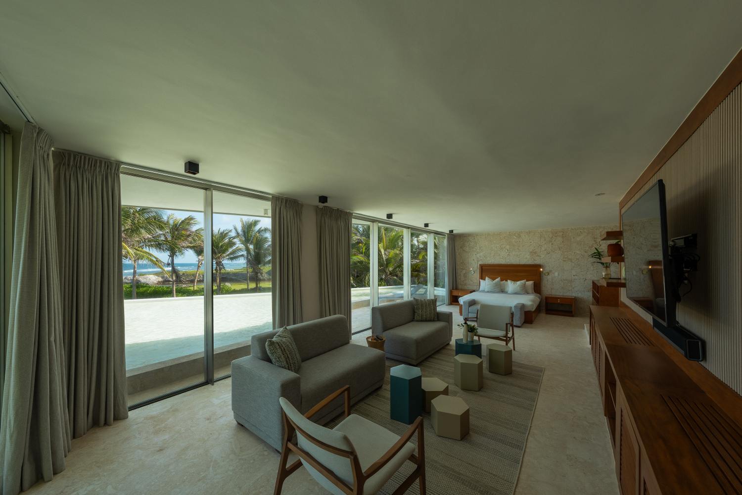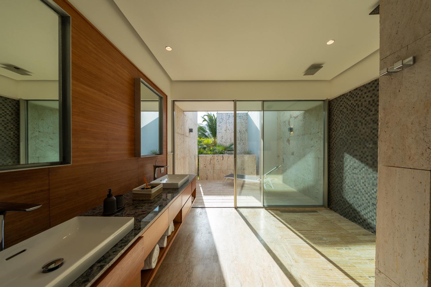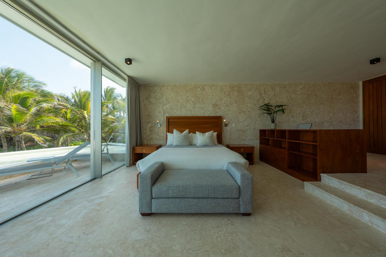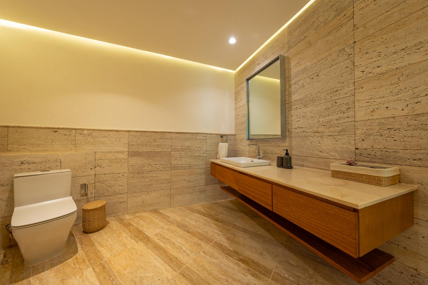 Friends settle into areas designed for true rest: breezy circulation by day, storage where you expect it to make suitcases disappear and the villa feel like yours, couples retreat to ocean-facing nooks, and children commandeer a suite close to the garden.