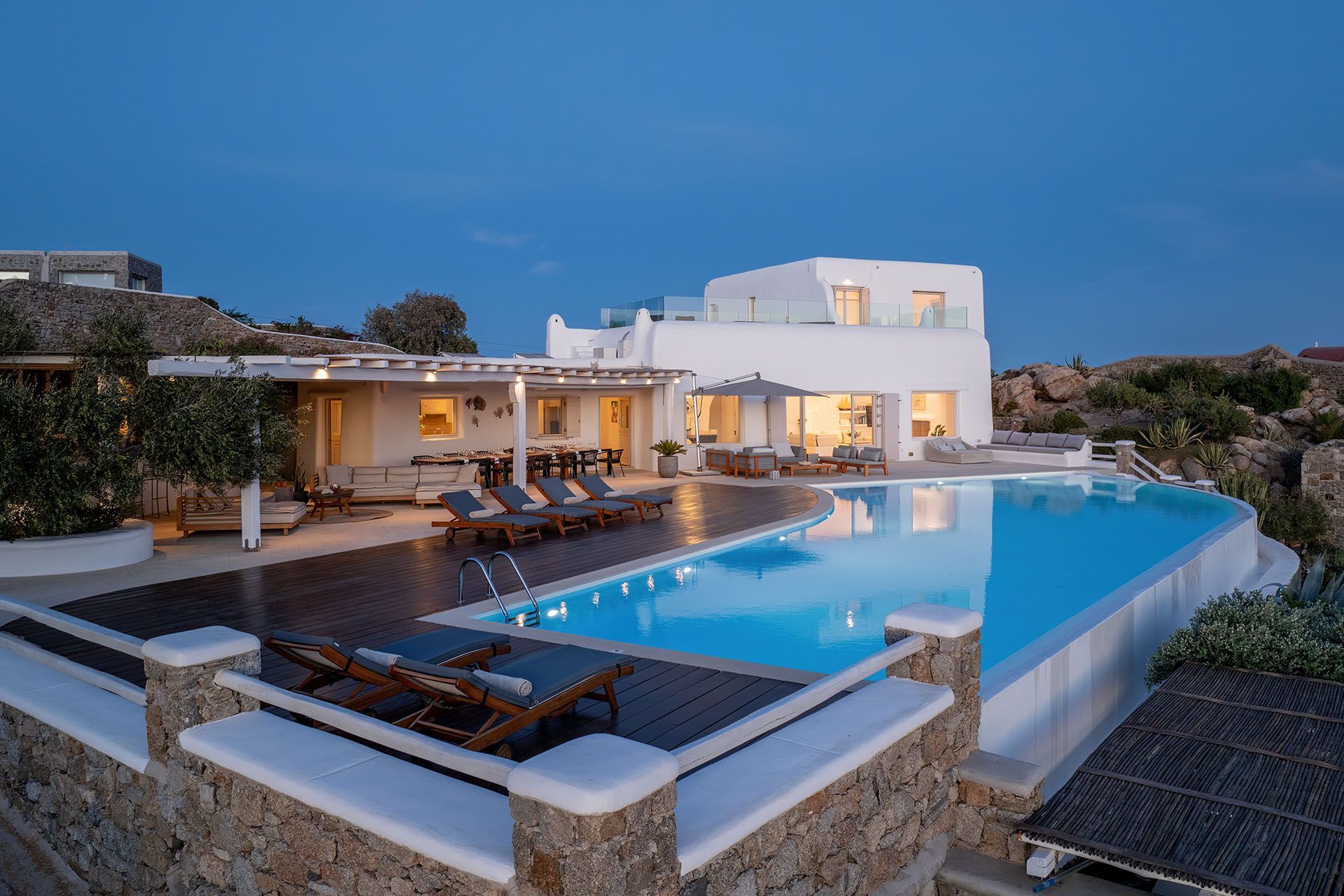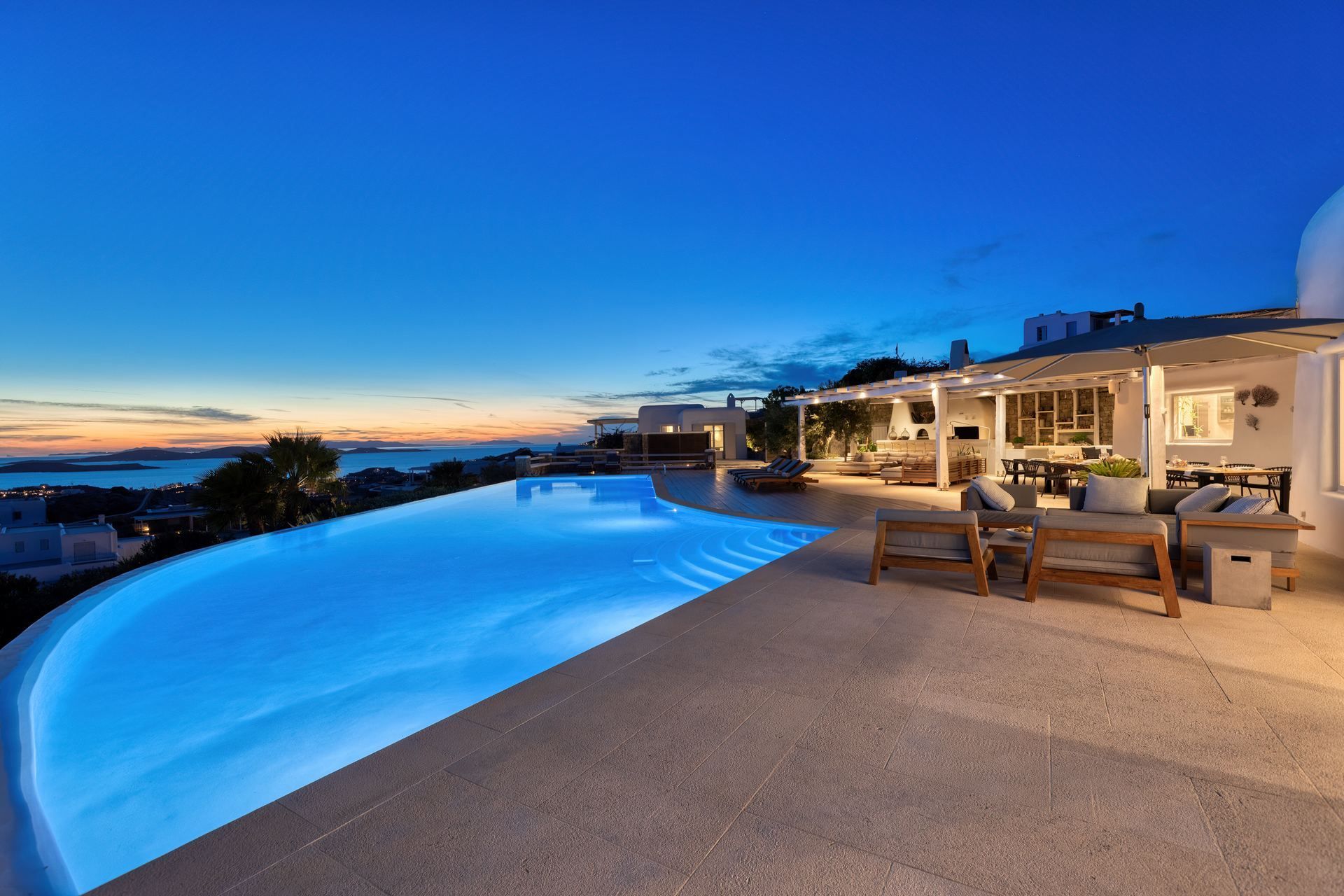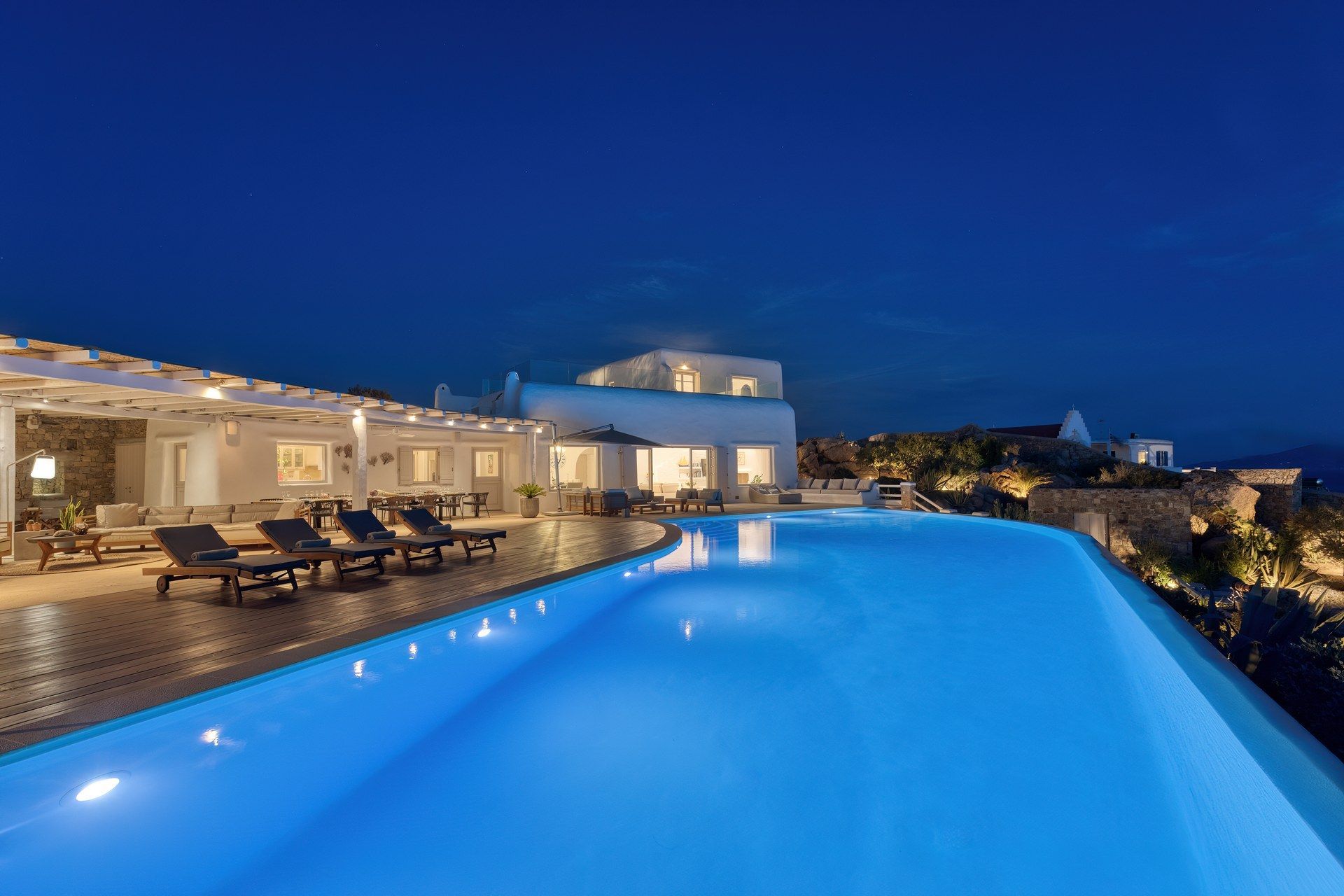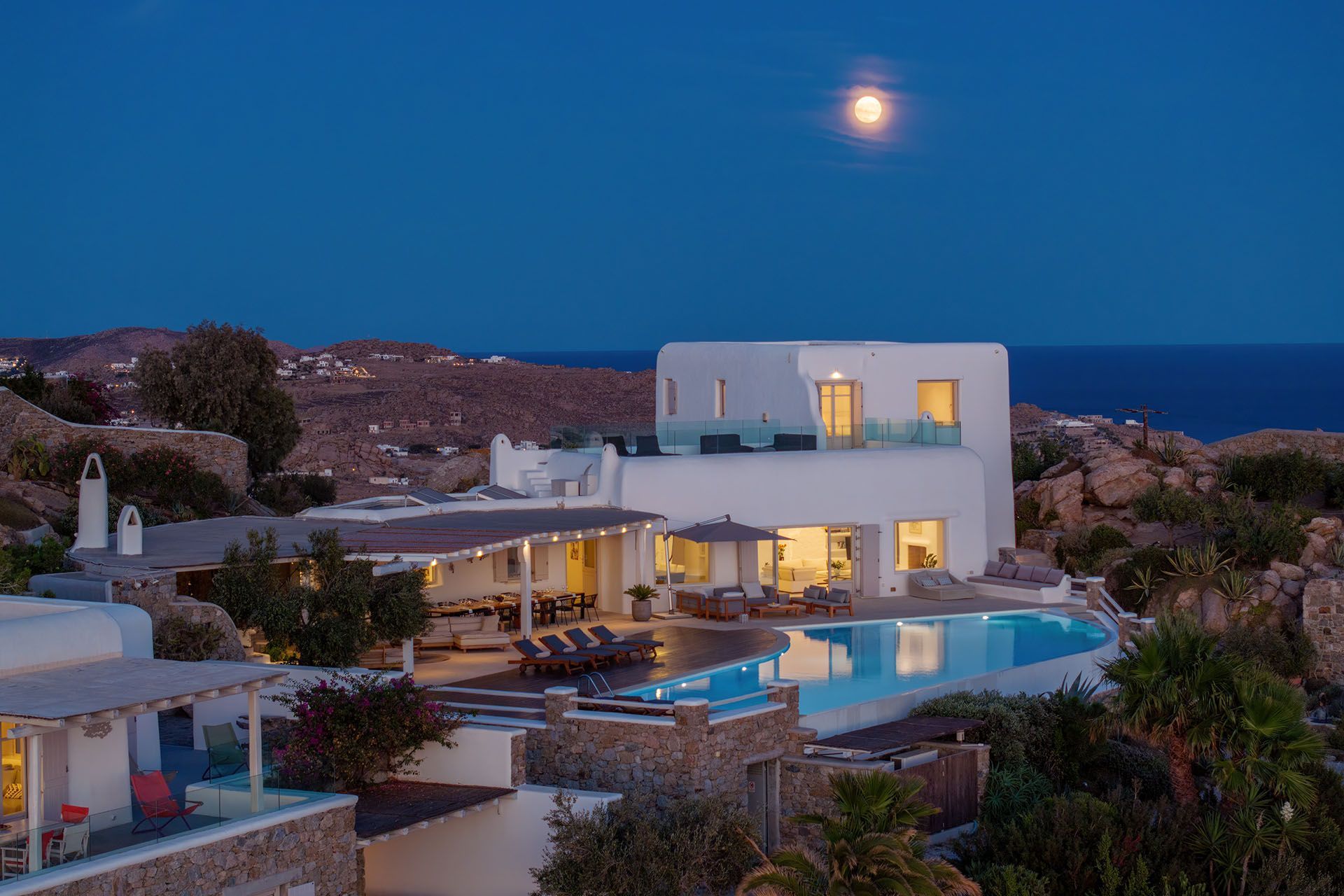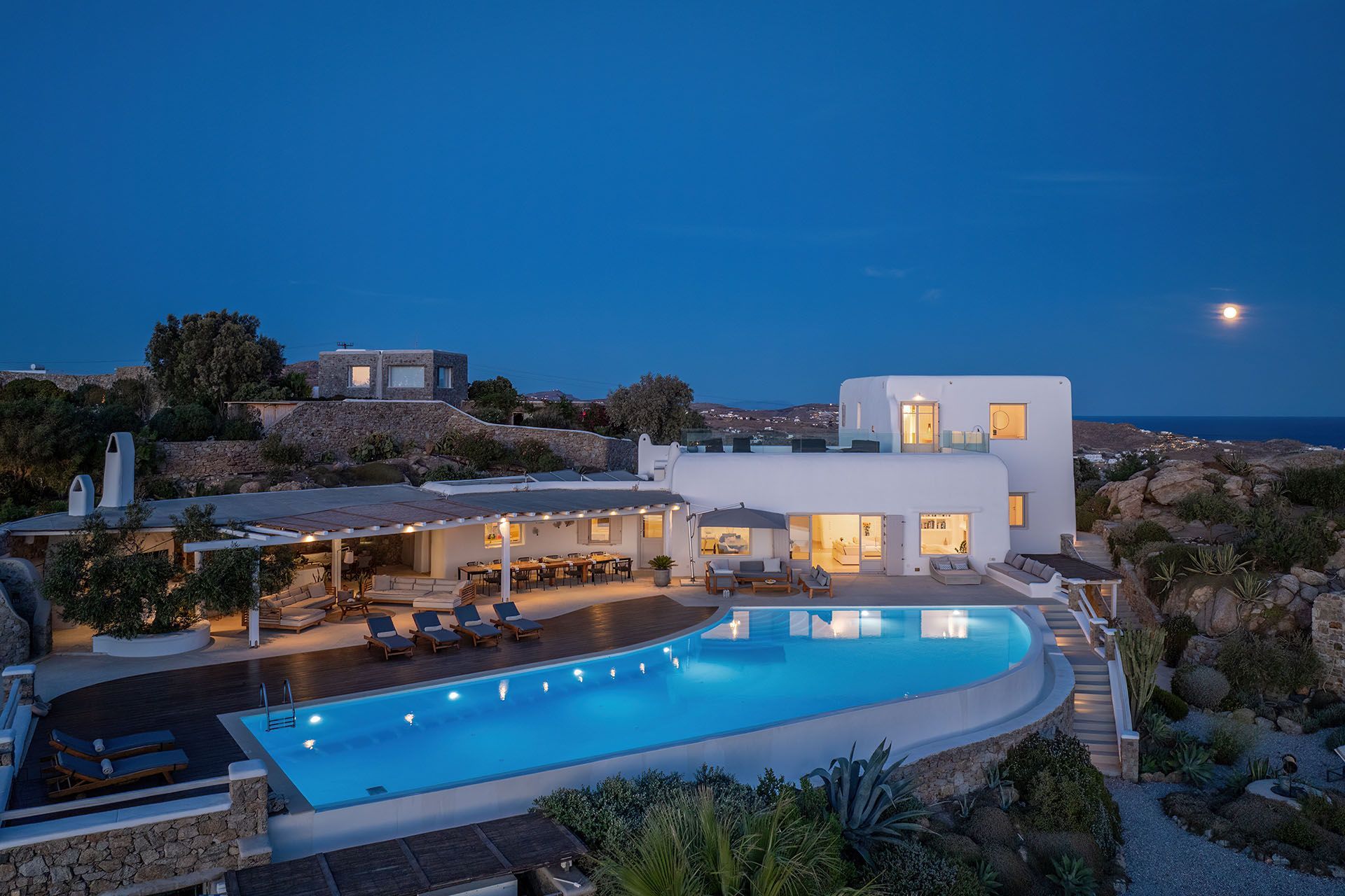 It is elegant, laid-back, and ideally situated for dipping in and out of the island’s vibrant, cosmopolitan scene. This nine-bedroom estate, which can accommodate up to 18 guests, is ideal for large families and groups of friends who want privacy without sacrificing any of their time. It is conveniently located 5 km from the airport for easy arrival, 3 km from Chora for shopping and late-night exploration, and 1.5 km from Psarou Beach, which is the home of Nammos and all-day glamour. Stay for the way the villa transforms each day into something a little magical; come for the views.