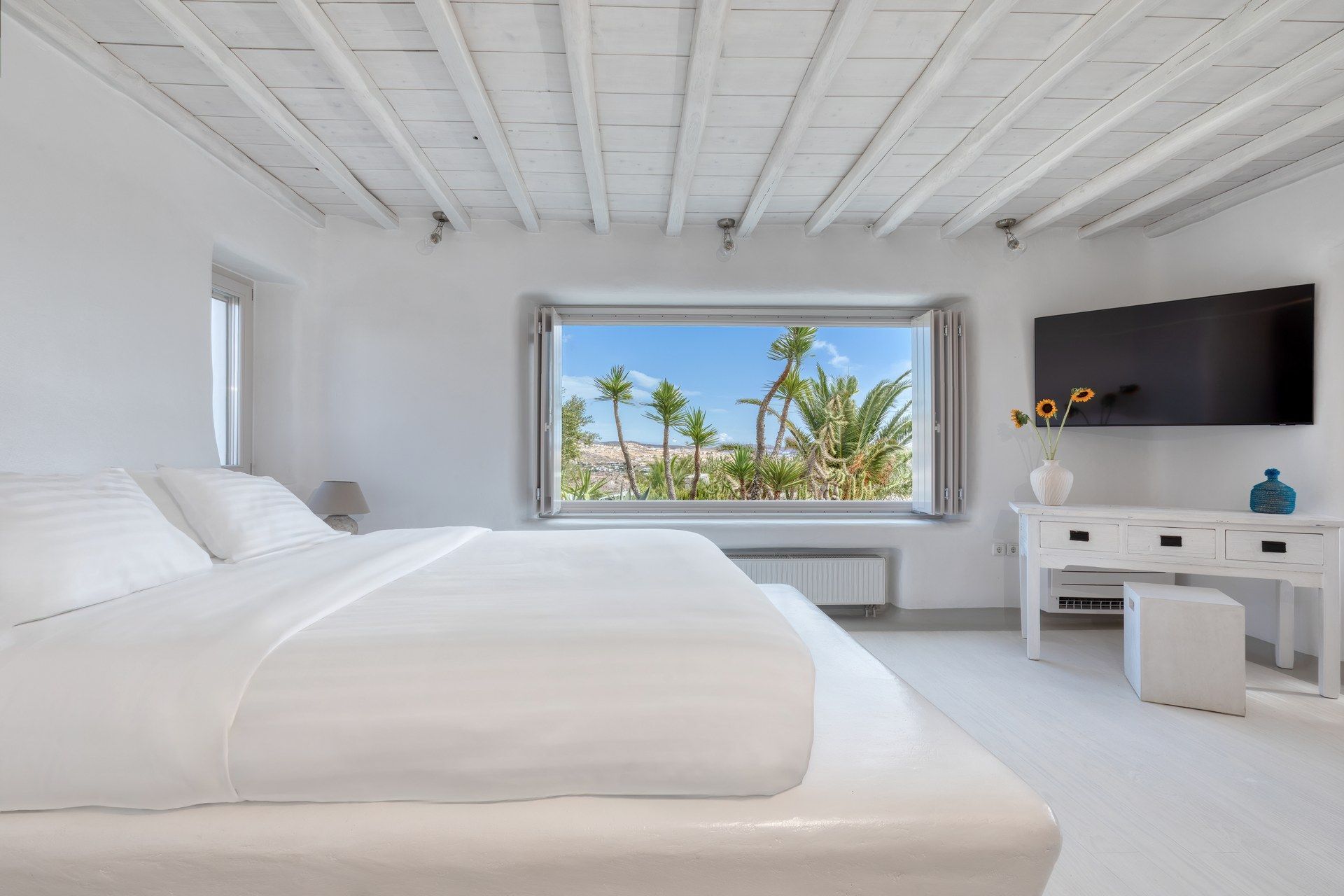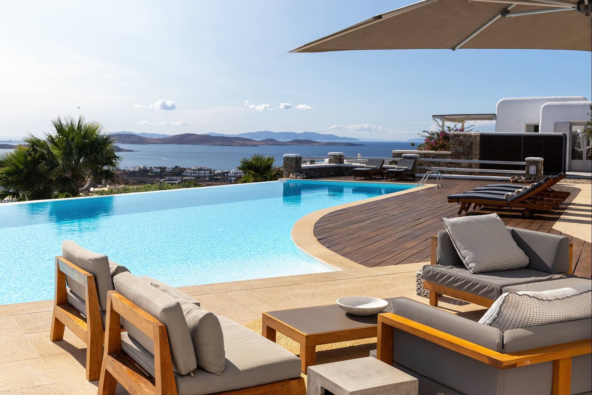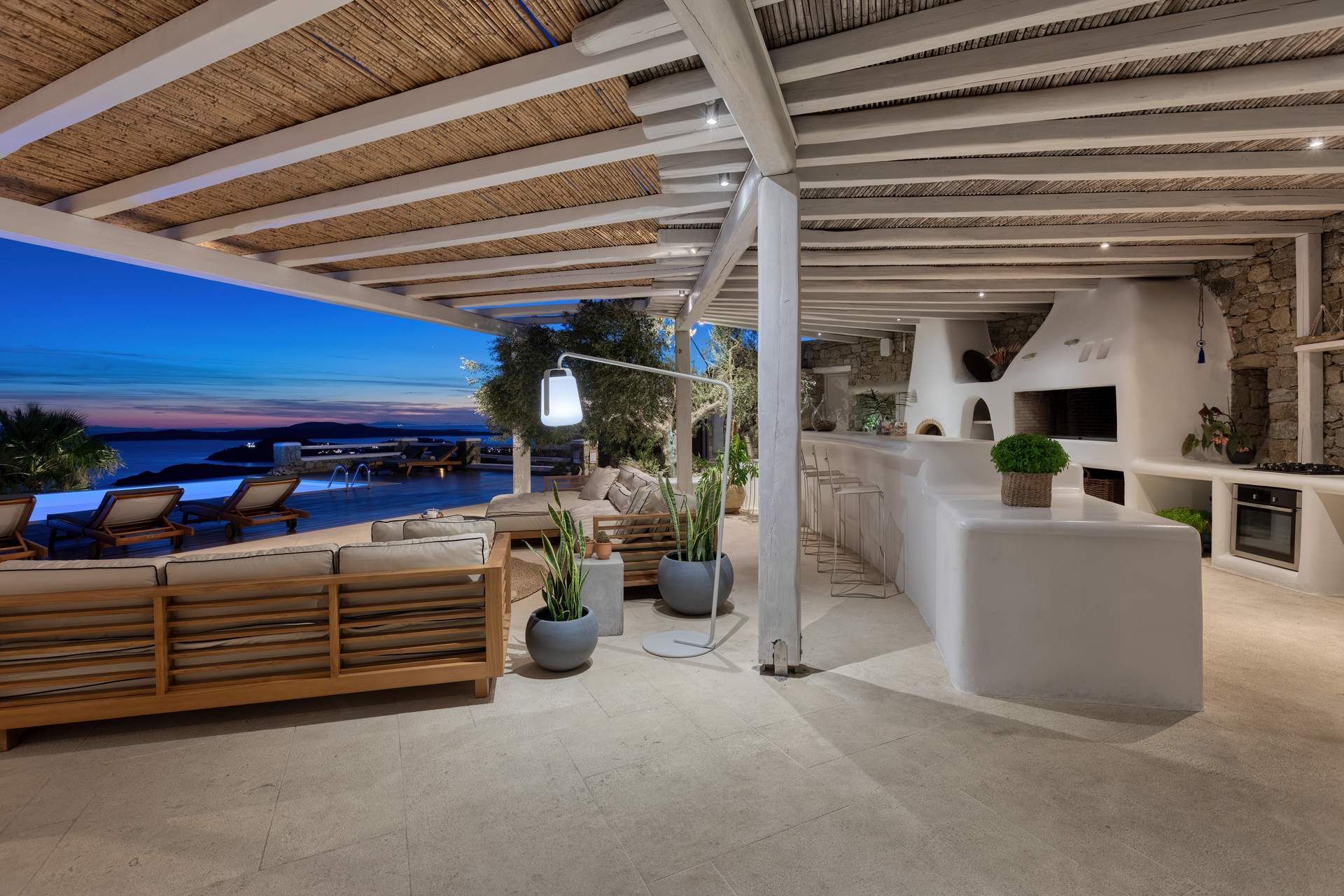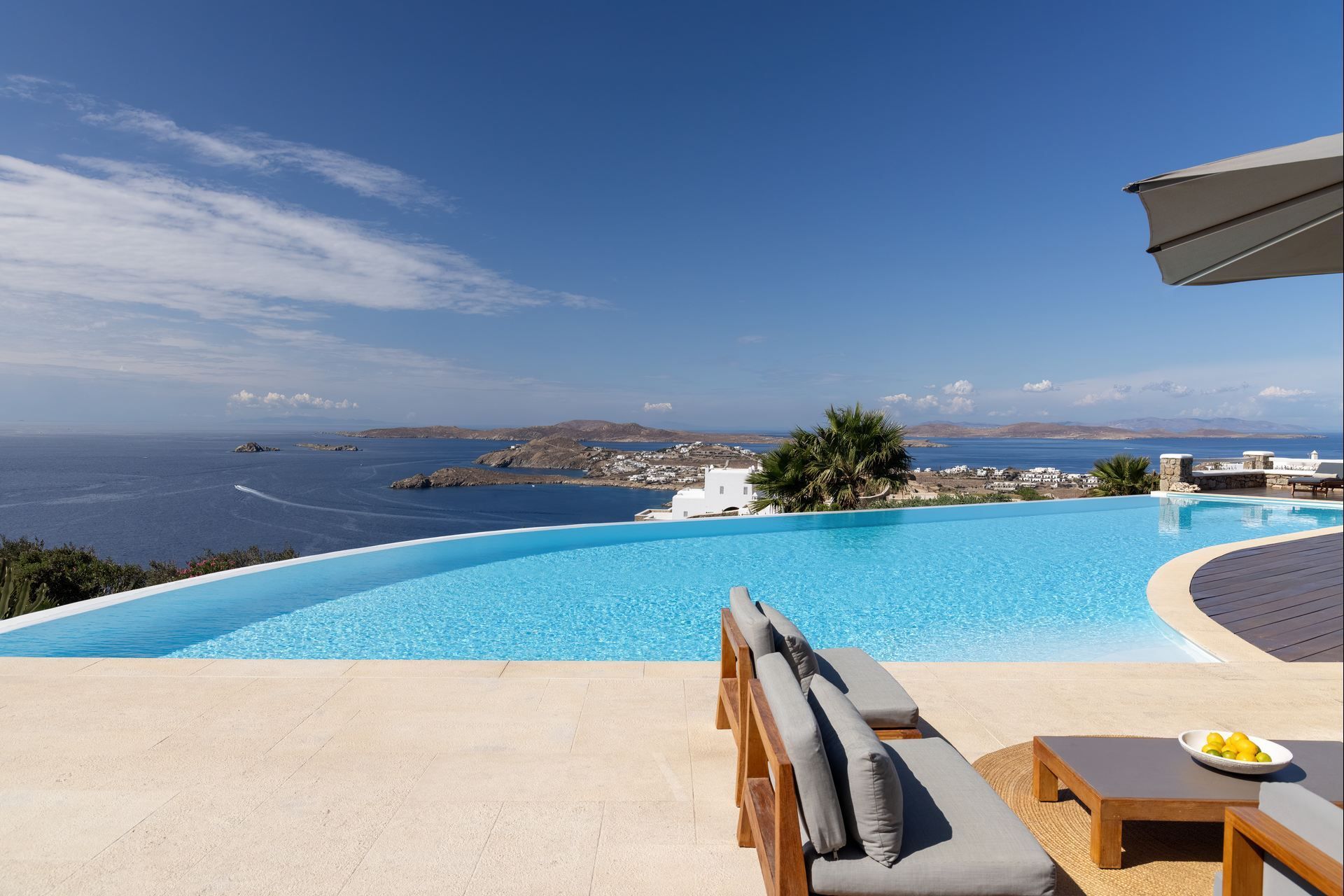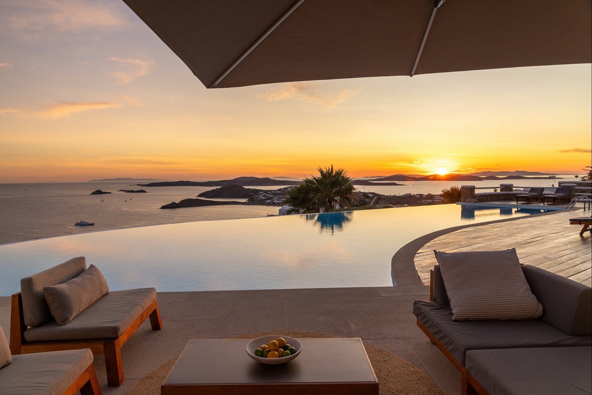 It is elegant, laid-back, and ideally situated for dipping in and out of the island’s vibrant, cosmopolitan scene. This nine-bedroom estate, which can accommodate up to 18 guests, is ideal for large families and groups of friends who want privacy without sacrificing any of their time. It is conveniently located 5 km from the airport for easy arrival, 3 km from Chora for shopping and late-night exploration, and 1.5 km from Psarou Beach, which is the home of Nammos and all-day glamour. Stay for the way the villa transforms each day into something a little magical; come for the views.