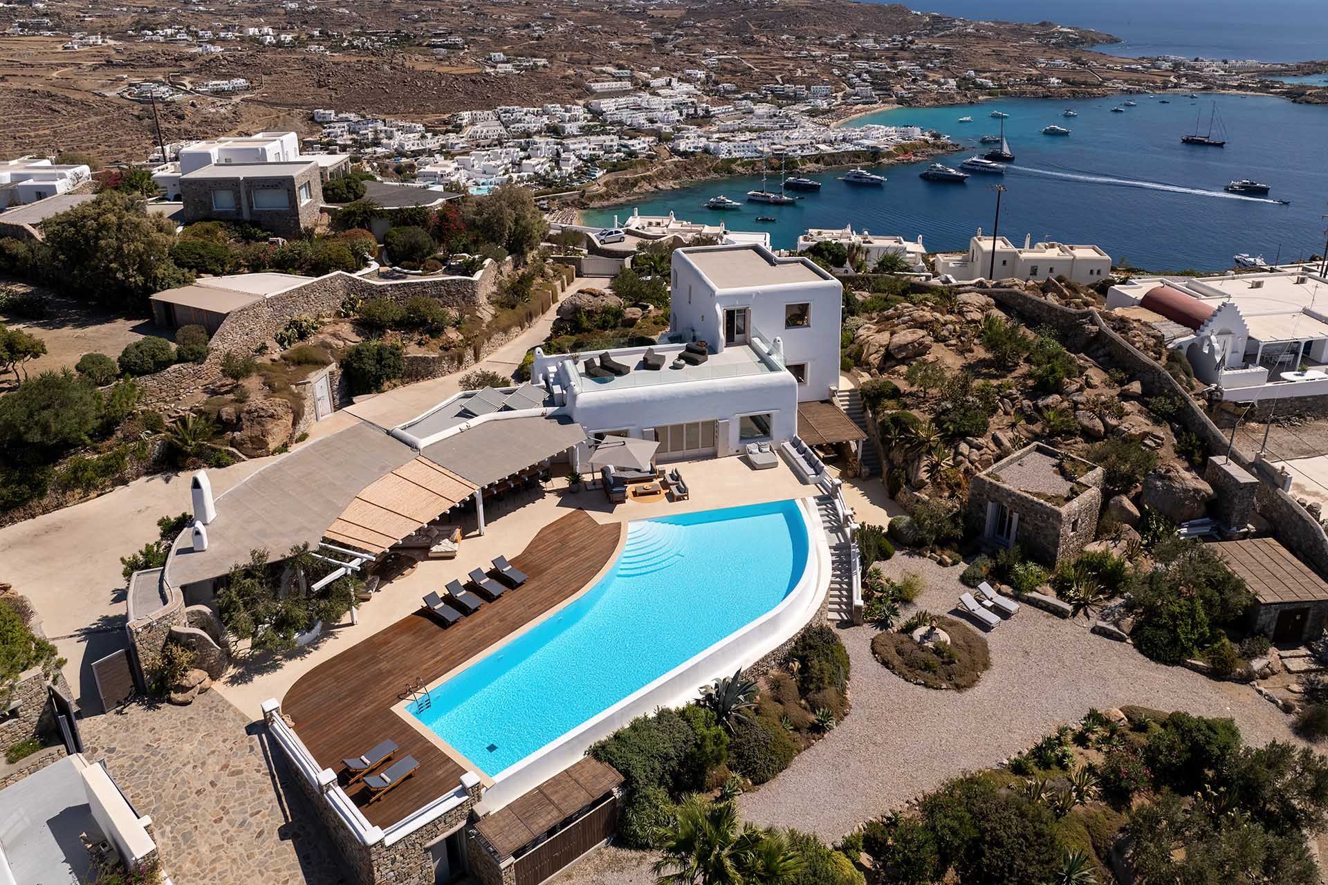 Villa Alchemia is your front-row seat to authentic Mykonian living, situated on the rocky hill of Agios Lazaros with the Aegean unfolding below.