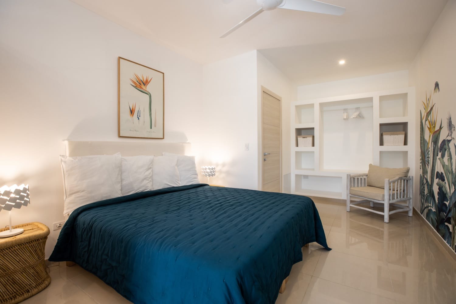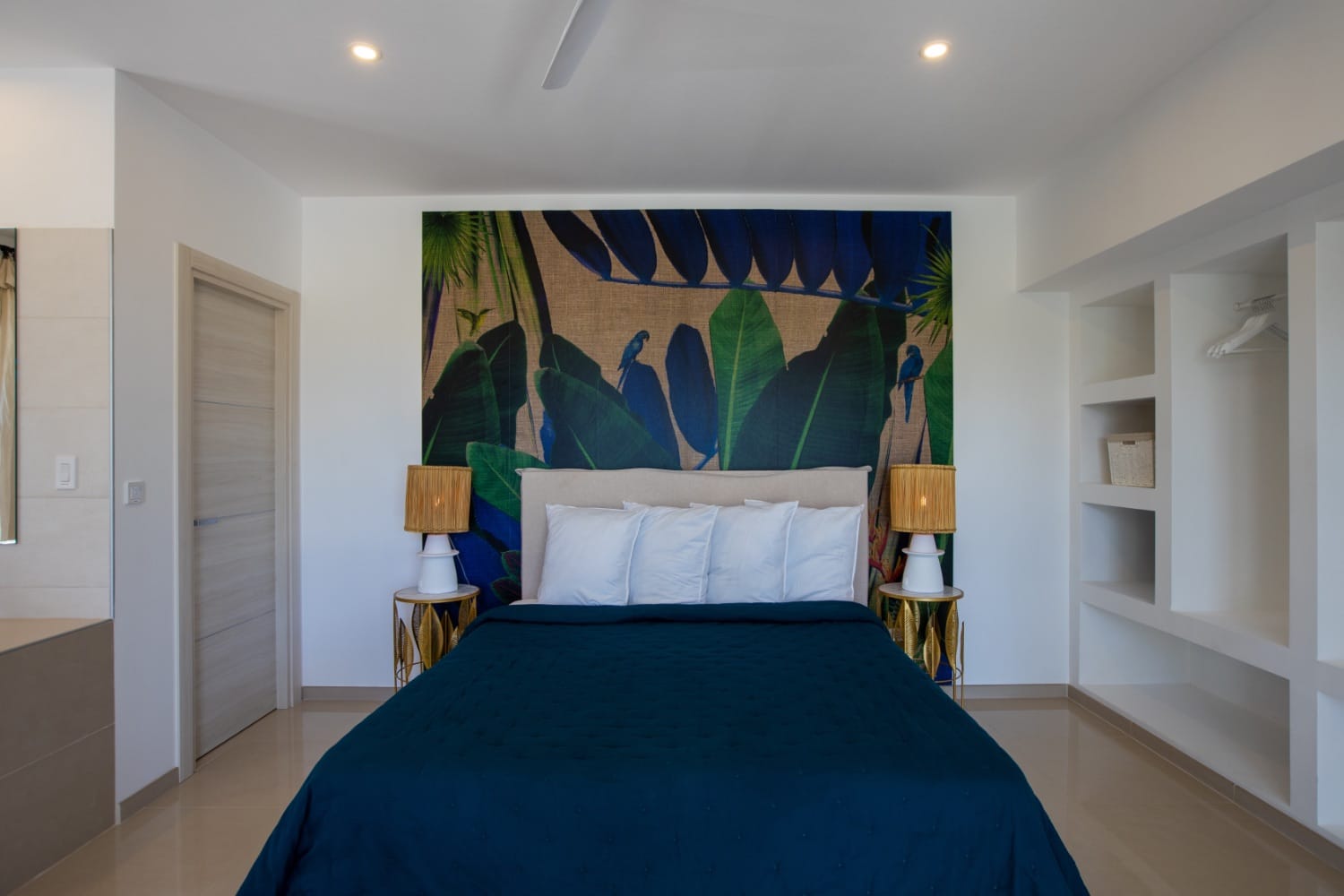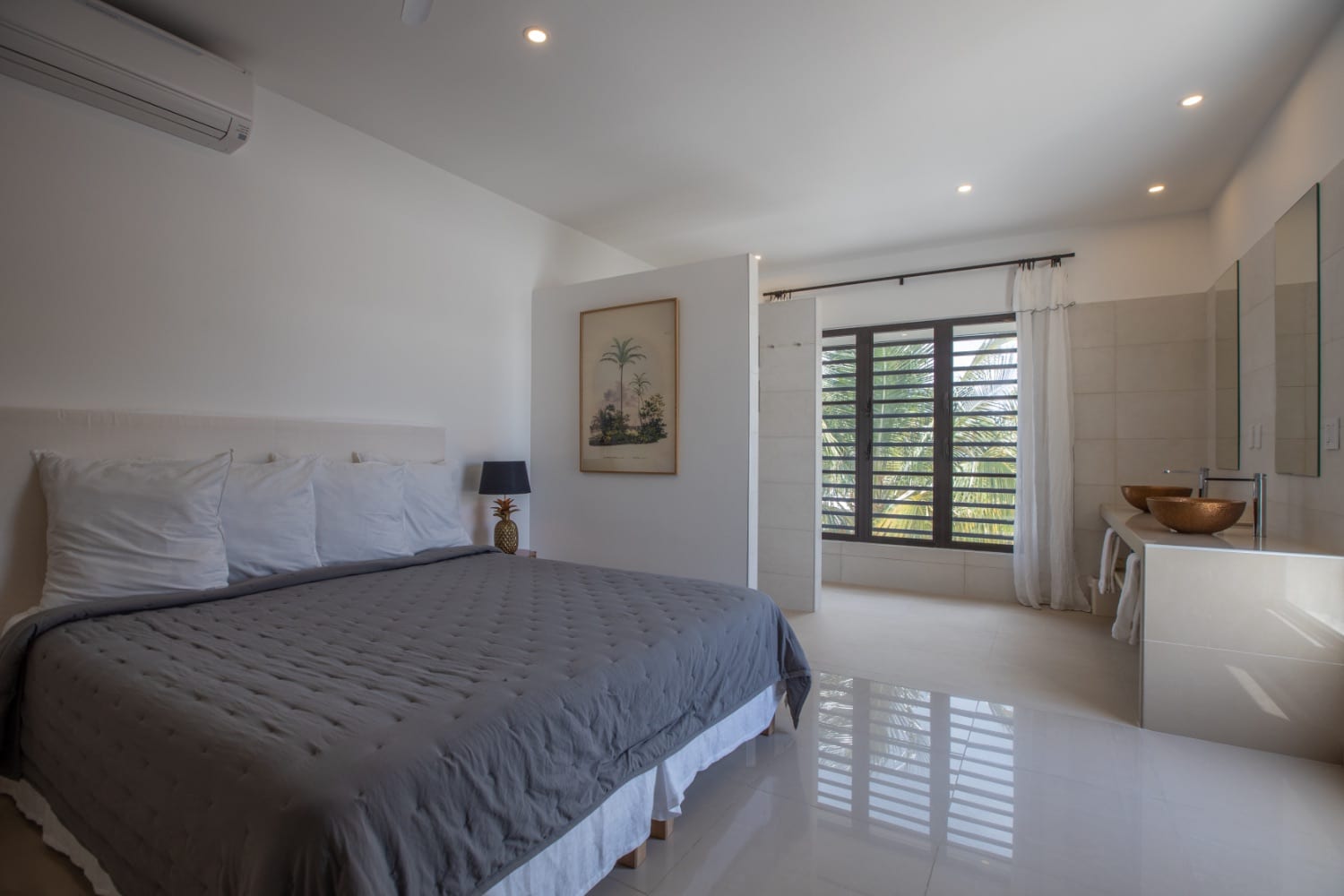 Each of the four bedrooms has been carefully designed to provide both privacy and comfort. Every suite features a king-size bed, its own en-suite bathroom, and air-conditioning, creating a peaceful retreat after a day spent exploring the island. Whether traveling with family or friends, the layout allows everyone to enjoy their own space while still sharing the warm social areas that make Villa Alma feel like home.