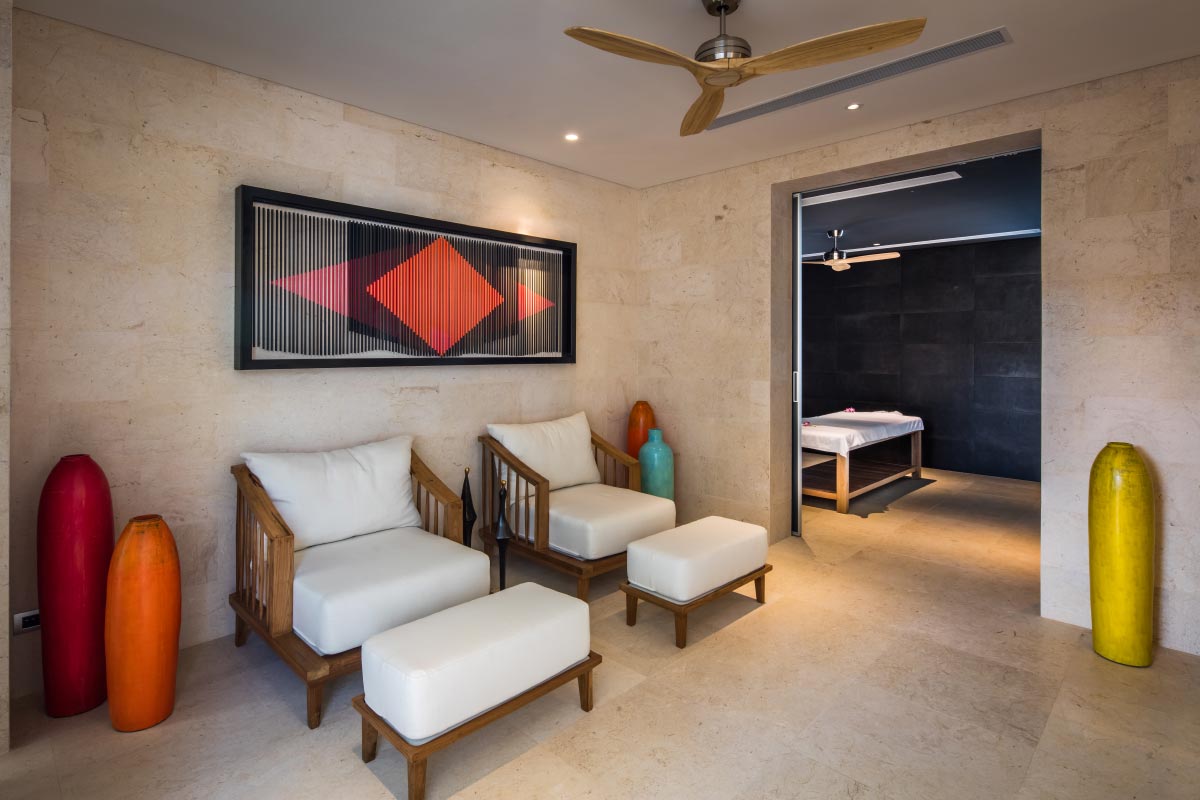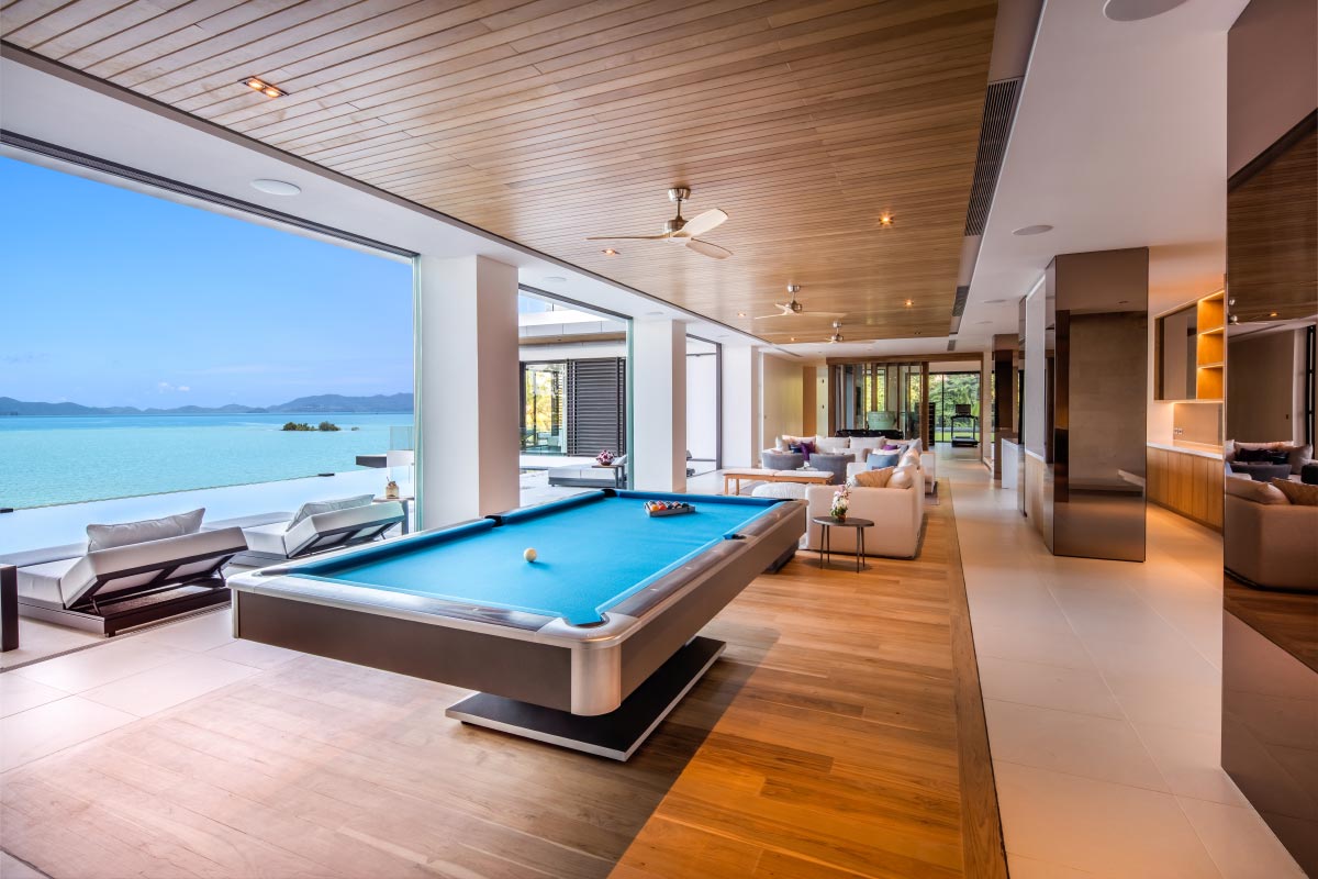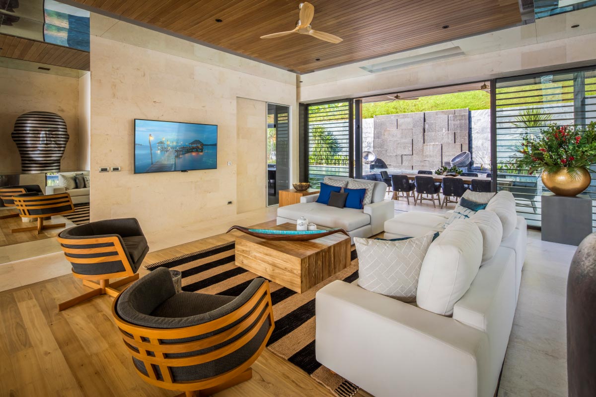 Rain, when it comes, only enhances the villa’s appeal. Indoors, Villa Amaravida is as well-appointed for leisure as it is for relaxation. A twelve-seat private cinema offers a luxurious take on movie night, while a game room with a Trackman Golf simulator, dart board, and projector screen provides endless entertainment for guests of all ages.
