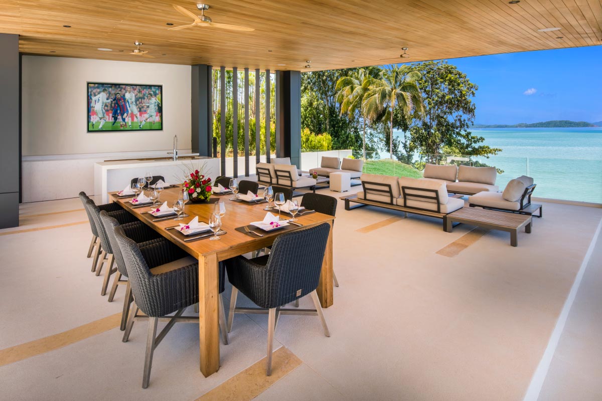 Despite its grand scale, Villa Amaravida retains a sense of intimacy and ease. The living and dining areas are airy and relaxed, encouraging long meals, lively conversation, or quiet reflection. The American-style kitchen is both stylish and functional, whether used by guests themselves or the villa’s private chef team.