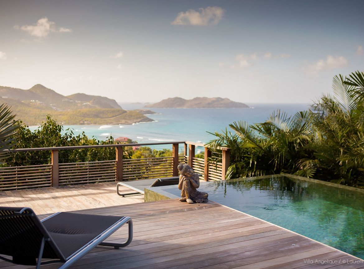 Villa Angelique, which is perched atop one of Saint-Jean’s most sought-after hills, offers a peaceful haven with expansive views of the Caribbean Sea and rolling greens at dawn.