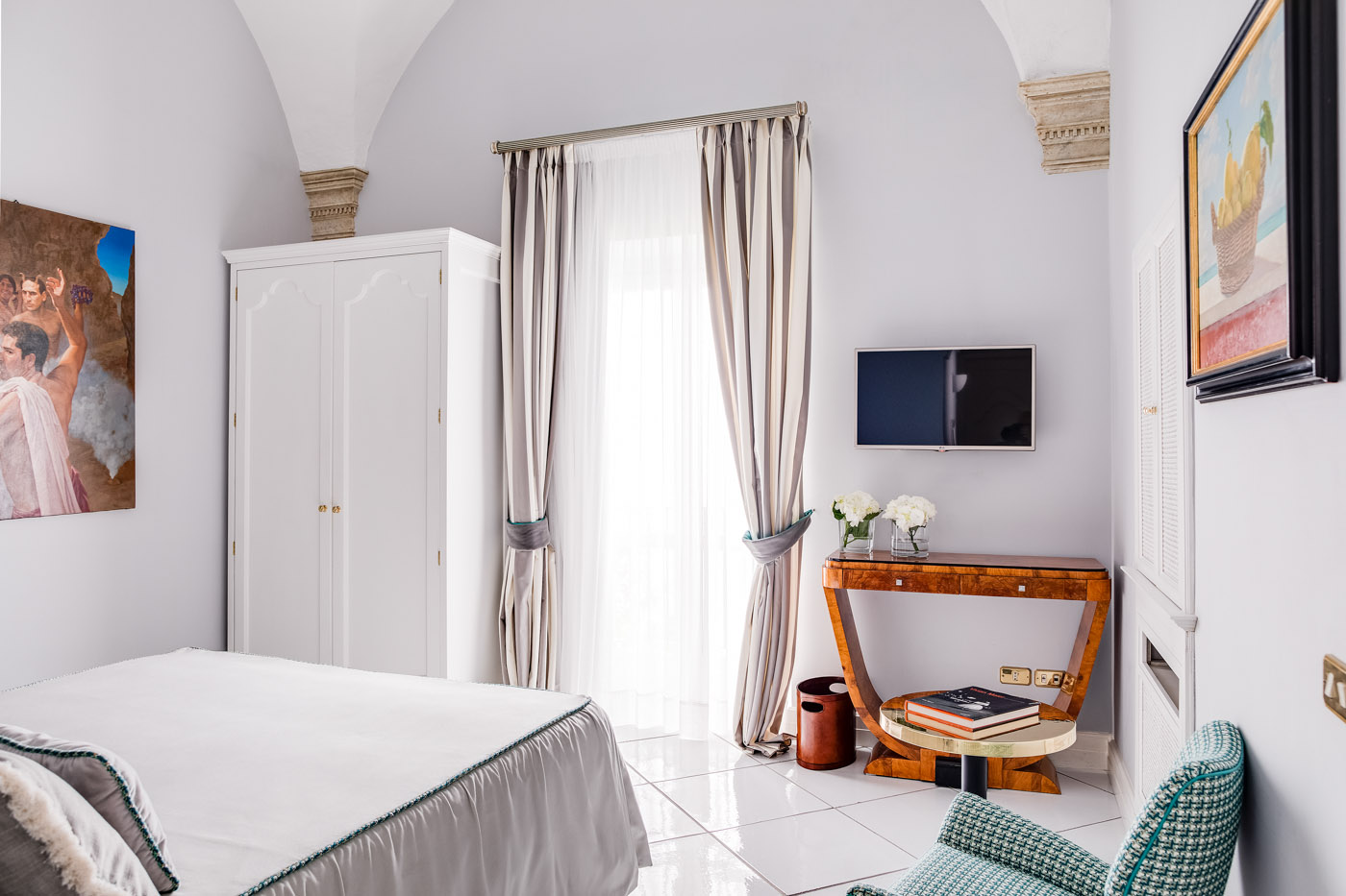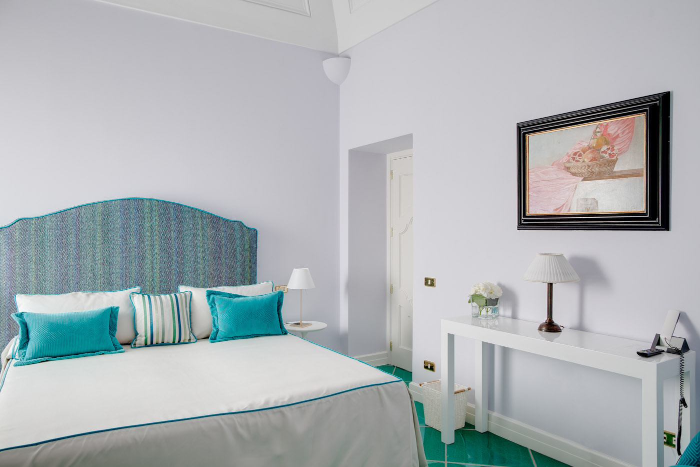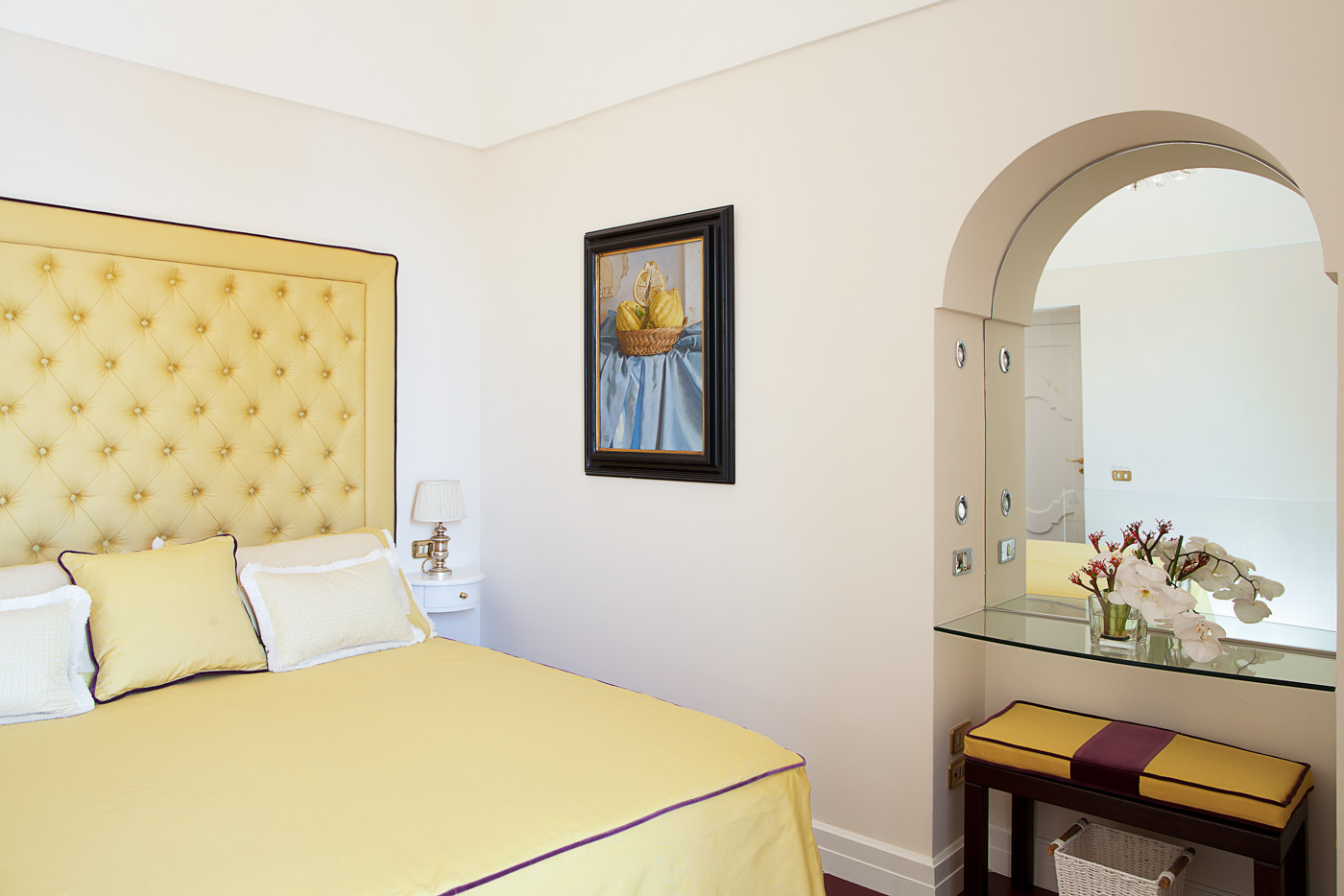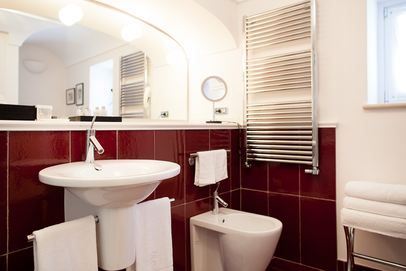 The fifth bedroom does not have the en-suite bathroom. The bathroom can be reached from the bedroom going down 10 small stairs in the hallway. In the bathroom, you will find a nice courtesy kit from Etro and Cotè Bastide.
