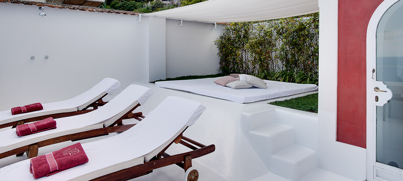 On the ground floor, you will find the first bedroom with a double bed and en-suite bathroom. The bedroom has a window with sea view, air conditioning, heating and SAT TV. In the bathroom, you will find a nice courtesy kit from Etro and Cotè Bastide. From the bedroom, you will access the main patio.