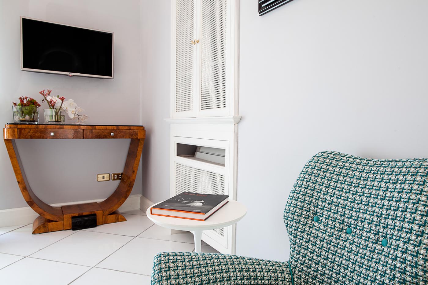 The fourth bedroom with en-suite bathroom has a double bed. The bedroom has a window with sea view, air conditioning, heating and SAT TV. In the bathroom, you will find a nice courtesy kit from Etro and Cotè Bastide.