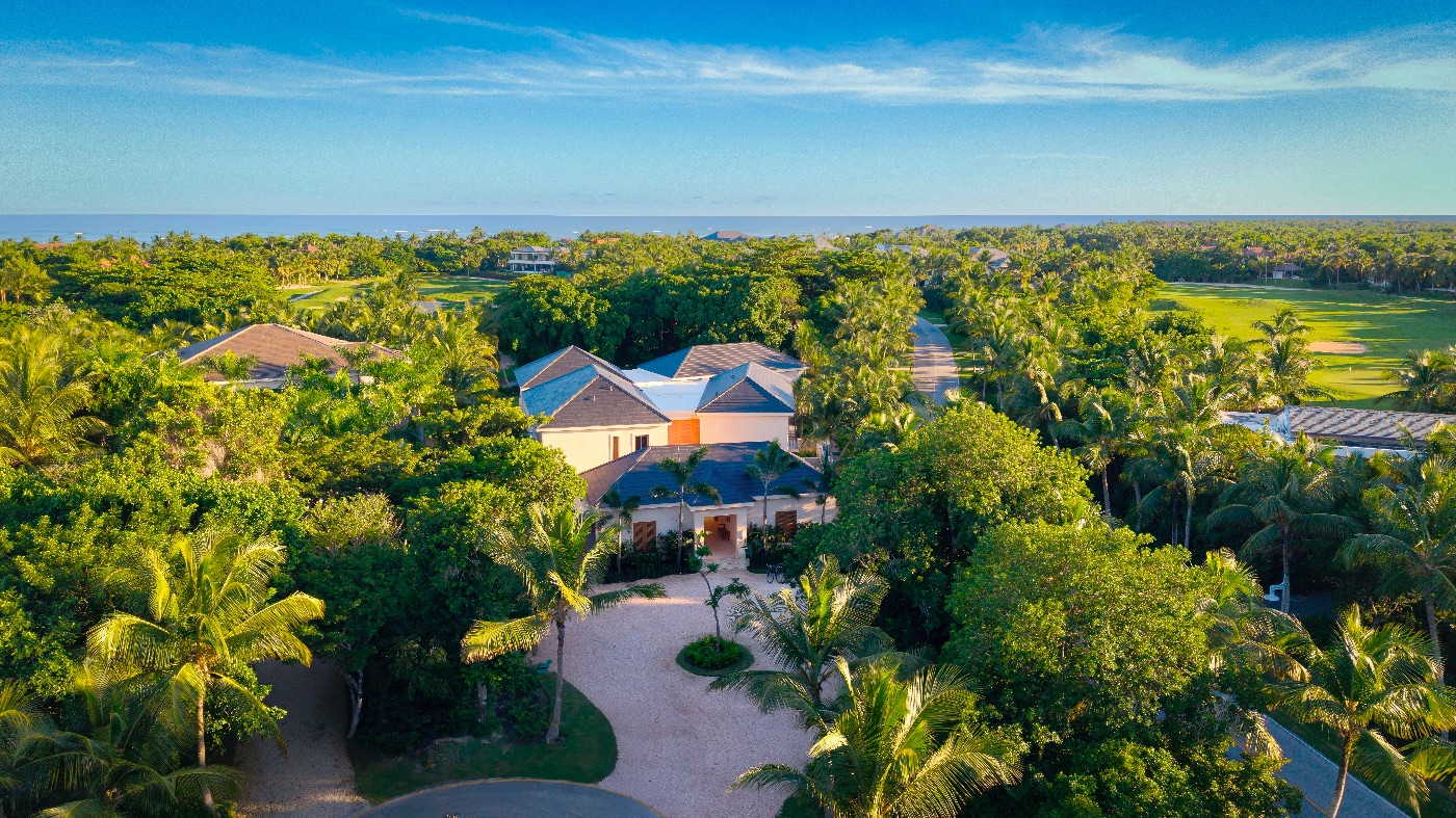 Puntacana Resort & Club is a 26-square-mile private community that includes the Ojos Indígenas Ecological Reserve, two signature courses (La Cana and Corales), beach clubs at Playa Blanca and La Cana, a spa, racquet sports, water sports, and horseback riding. Five minutes by golf cart to La Cana Beach & Golf Club and the Six Senses Spa, five minutes to the Oscar de la Renta Tennis Center, five minutes to Ojos Indígenas and Playa Blanca’s white sand swimmable beach, and just a short drive past the gates to Puntacana Village, the main supermarket, and BlueMall Punta Cana for dining and boutiques, the location strikes a balance between accessibility and tranquility.