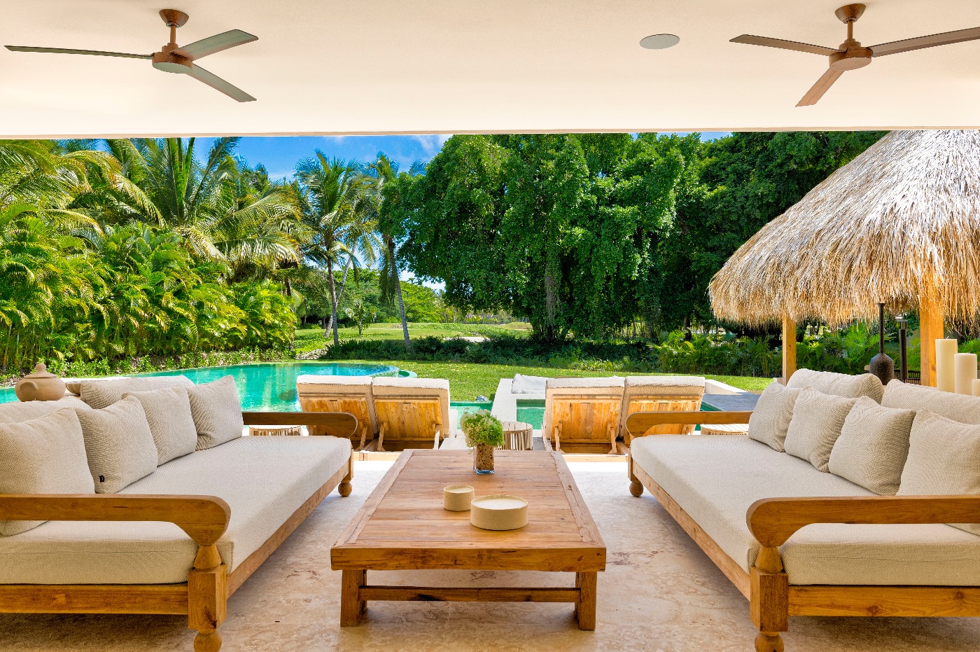 The first thing you notice about Villa Arrecife EFG9 is how effortless everything feels, with doors sliding away to trade winds, vintage-boho textures warming the modern lines, and a quiet that belongs to palm shade and open golf views.