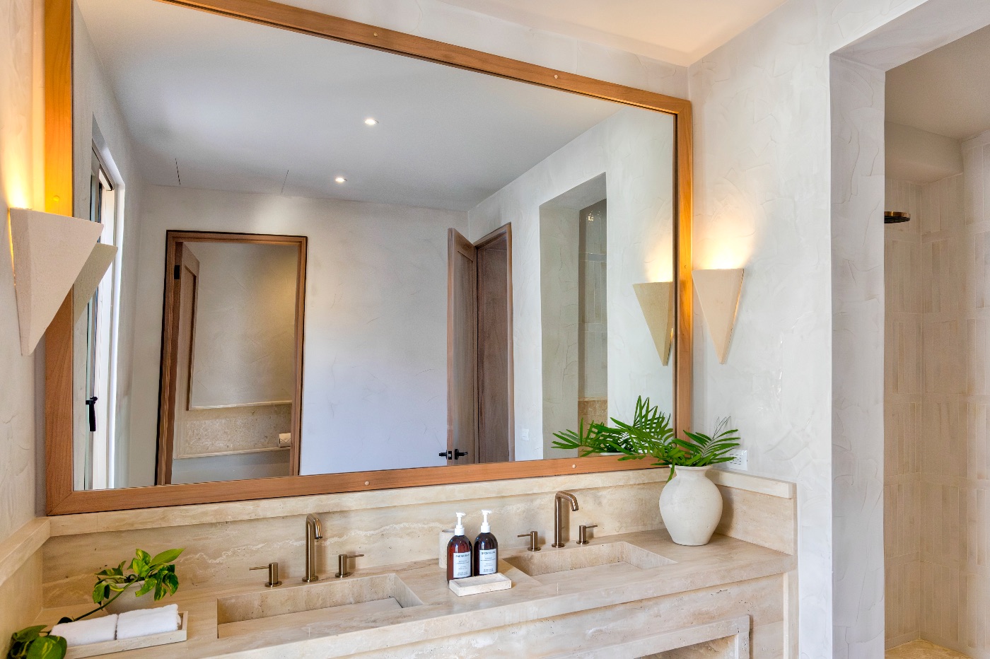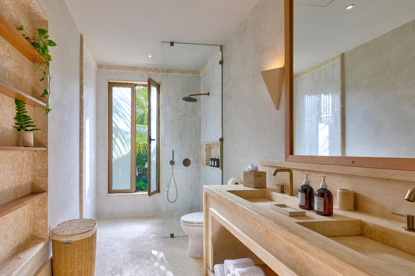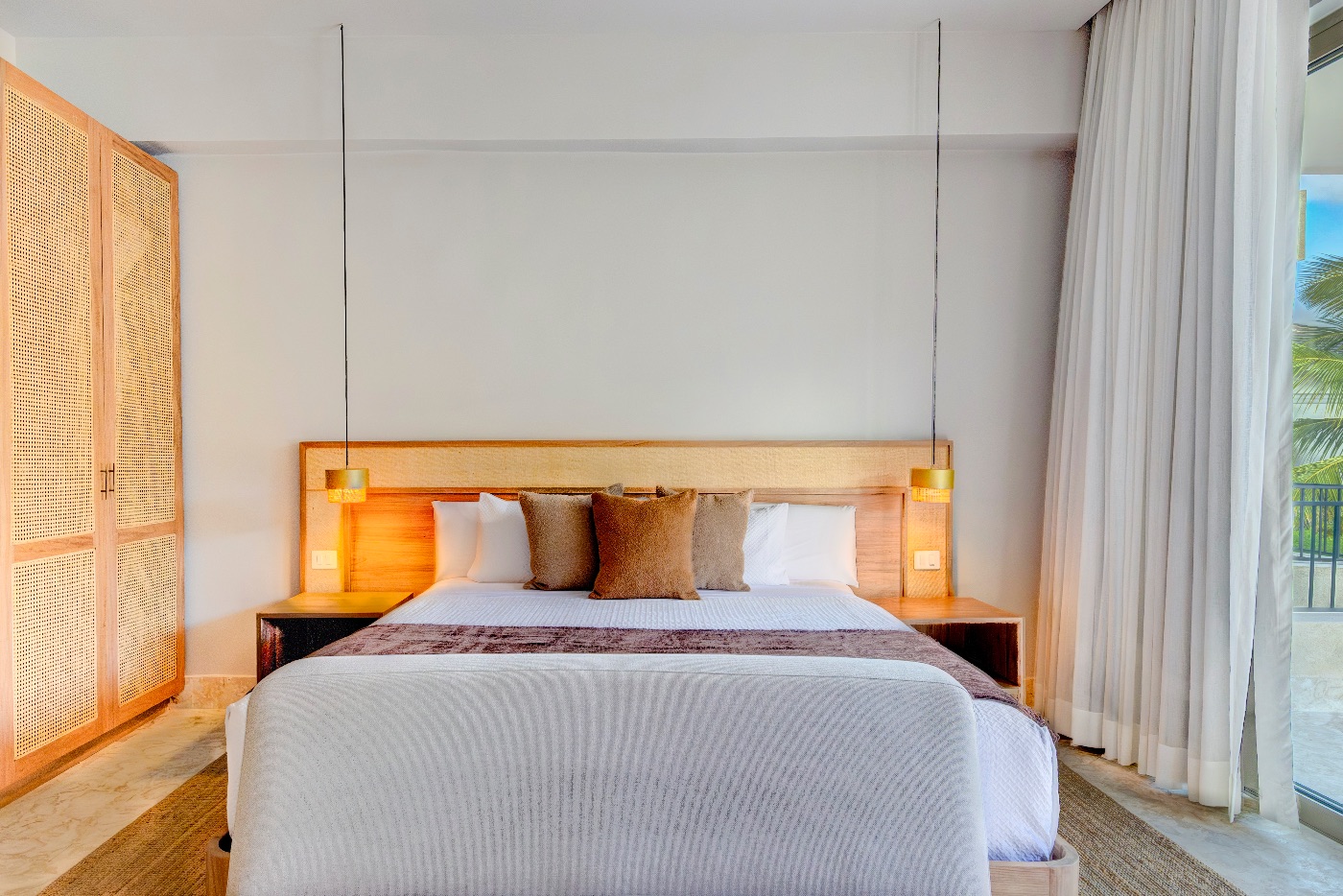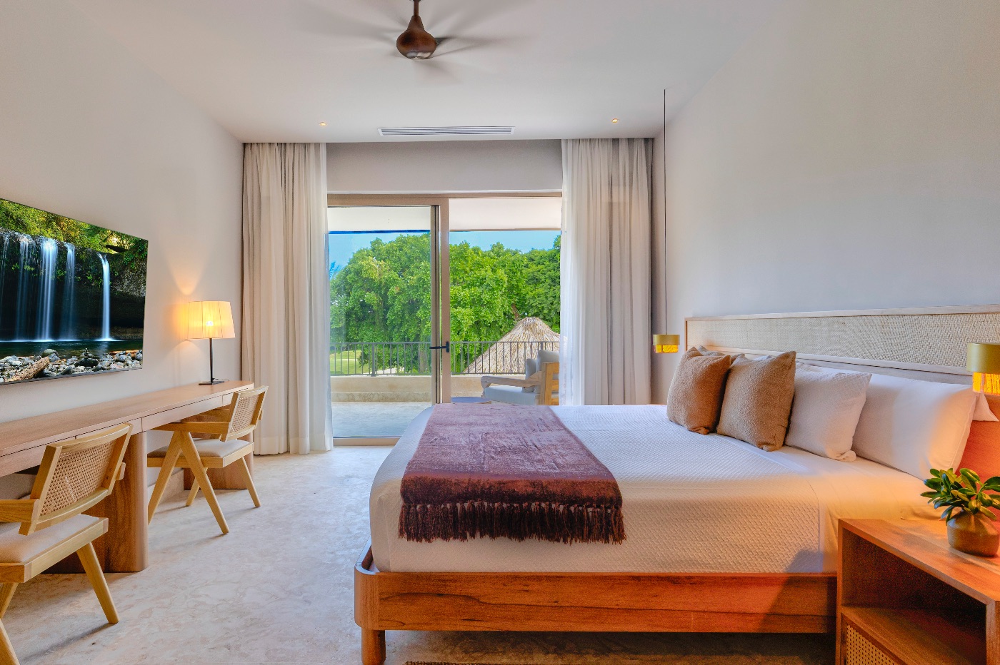 Ingeniously designed family rooms with queen and twin combinations so kids sleep close but not crowded, additional king suites for friends or grandparents, and a king-bed primary with the privacy you desire are all available. Early swims aren’t interrupted by late-night movies because each room has a Smart TV and an ensuite bathroom. You’ll be barefoot everywhere, and the tone is sophisticated without being precious.