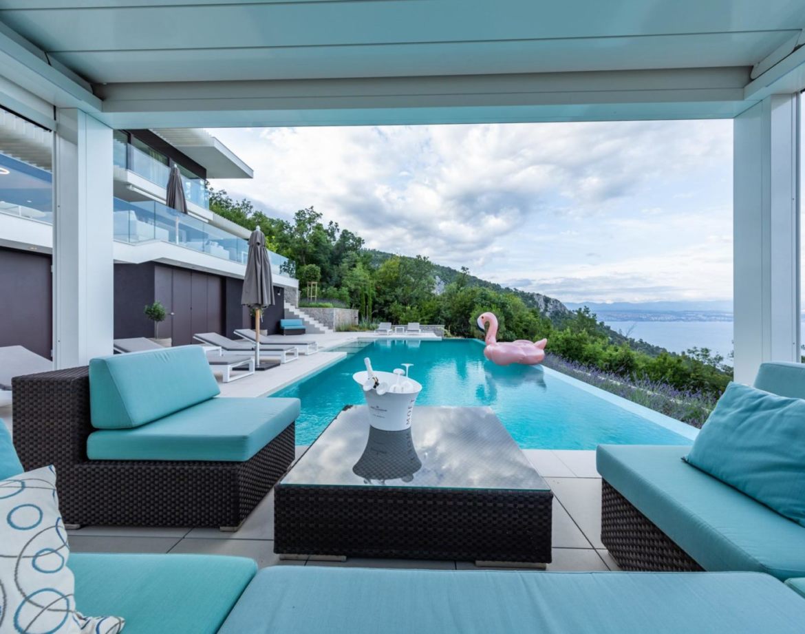 Villa Aurora is a luxury home located on the hills above Kvarner bay not far from Opatija in the Istra area, Croatia. This luxury villa located in Medveja is nearby outstanding restaurants, bars, shops and recreational facilities along the famous Medveja beach.