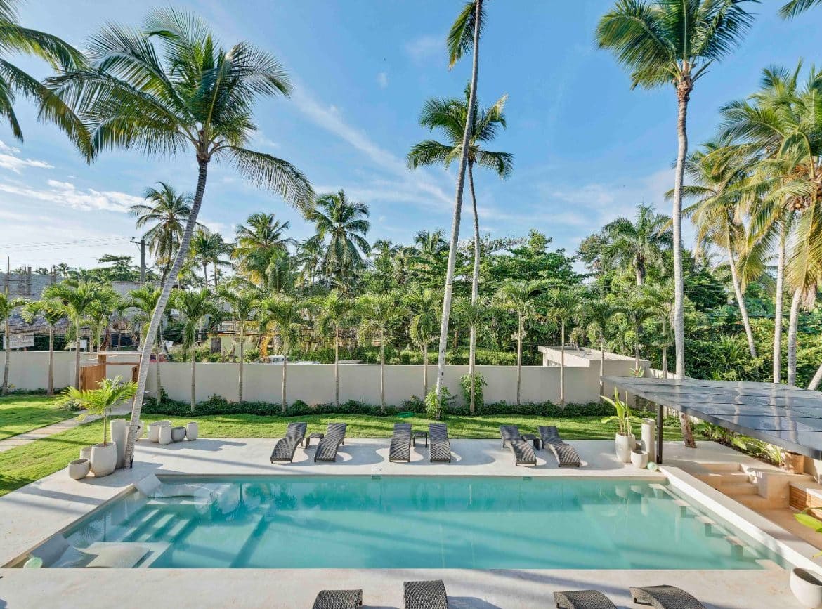 Nestled at the core of Villa Coco’s allure lies its magnificent pool in Dominican Republic, a lavish focal point adorned with an innovative bar catering to swimmers both within and outside the water. This splendid feature not only elevates the villa’s charm but also serves as a communal hub, ideal for both unwinding and socializing.