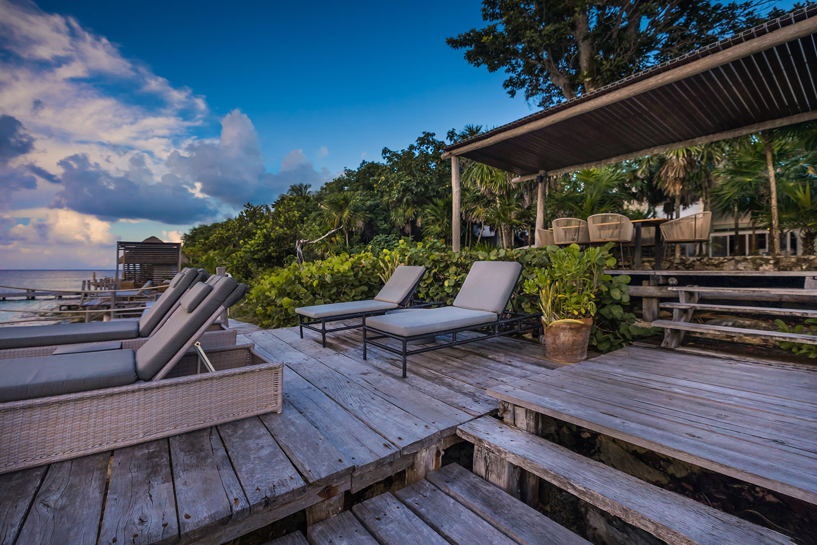 Evening: Head up to the rooftop garden as the sun paints the water in color. With cocktails, soft music, and the rustle of palms, the rooftop becomes a natural amphitheater for the sunset show.