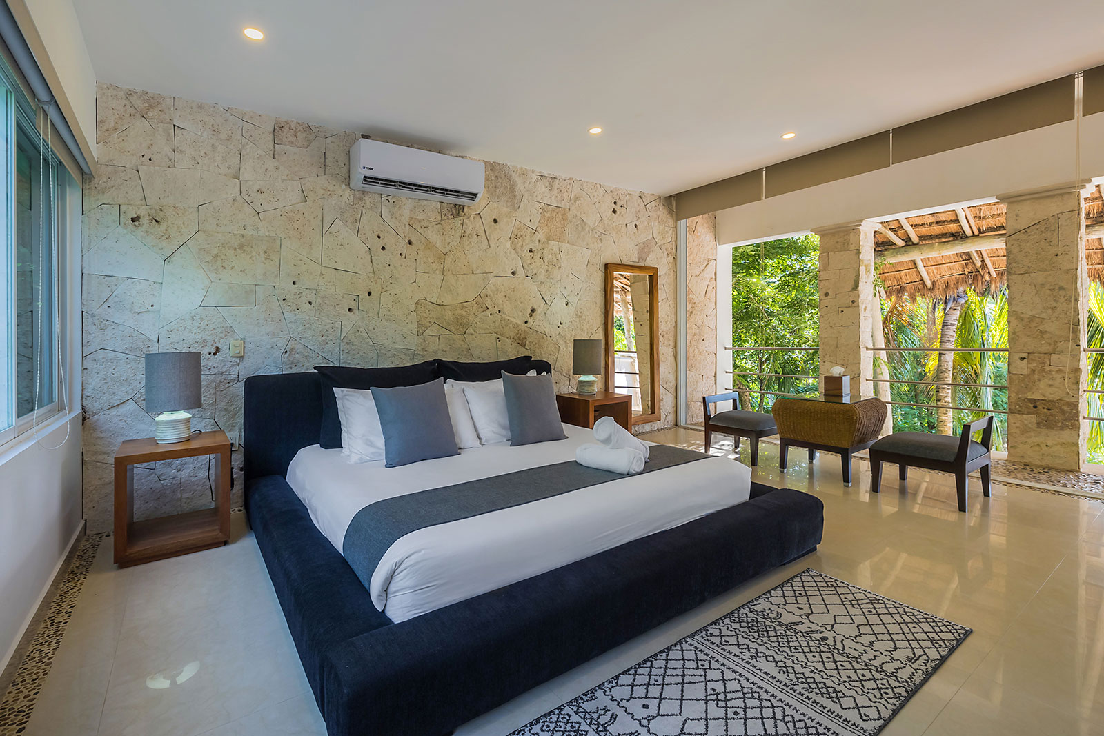 Afternoon: Children run back and forth from the pool to the beachfront while someone else enjoys the palapa hot tub. The cabana and beach loungers turn napping and reading into a ritual. If you’re in the mood to explore, the villa is just a short walk from several sandy beaches, with Cozumel’s town center a scenic drive away (about 9 miles).