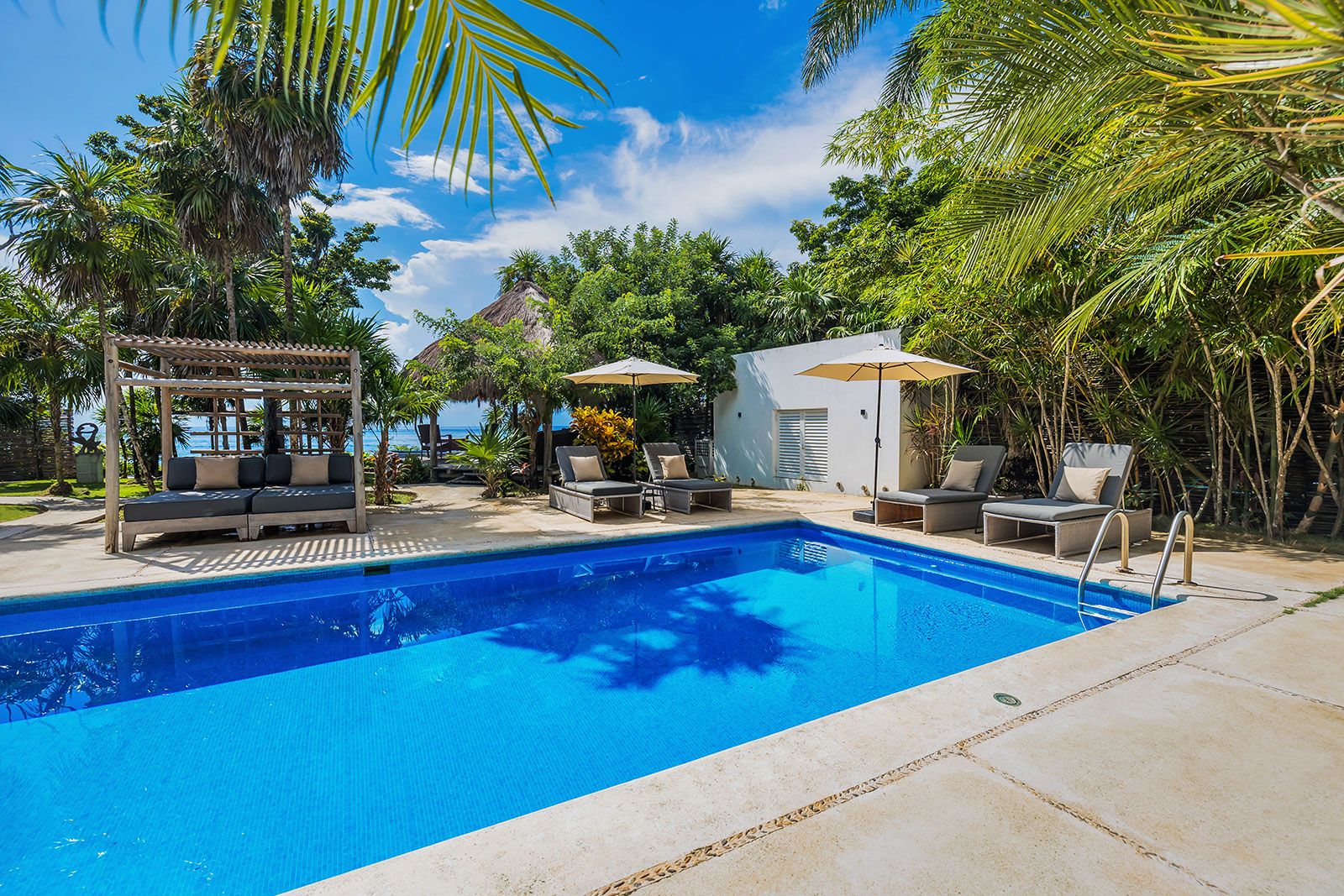 Private pool + palapa hot tub: A 32-foot pool for laps or family play, plus a handmade hot tub beneath the palapa for cooler evenings