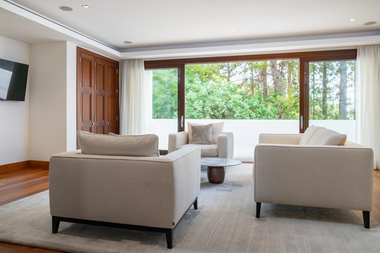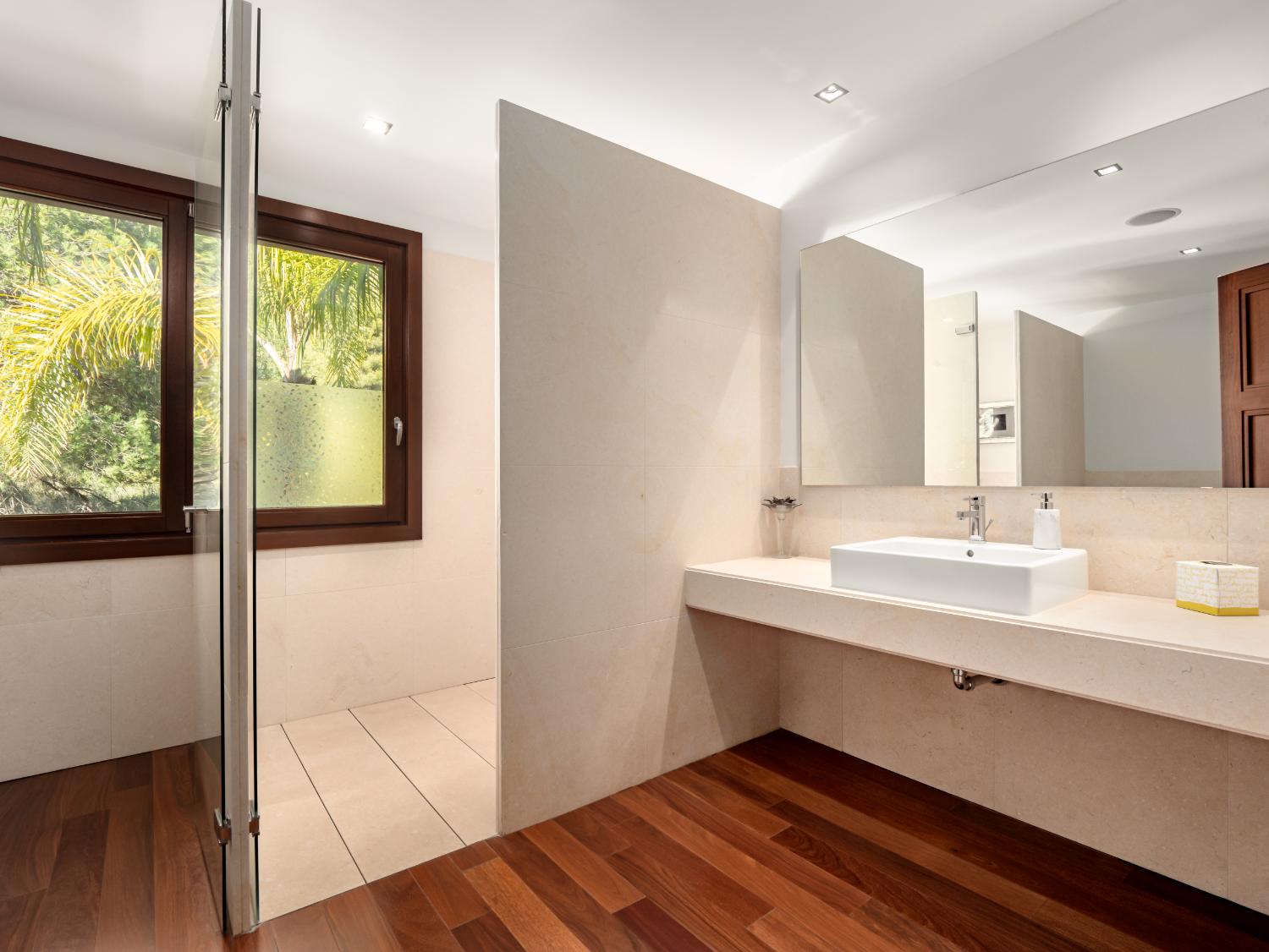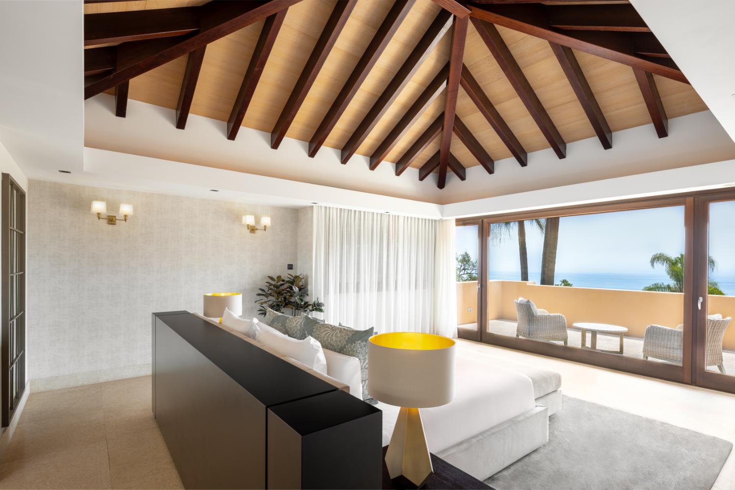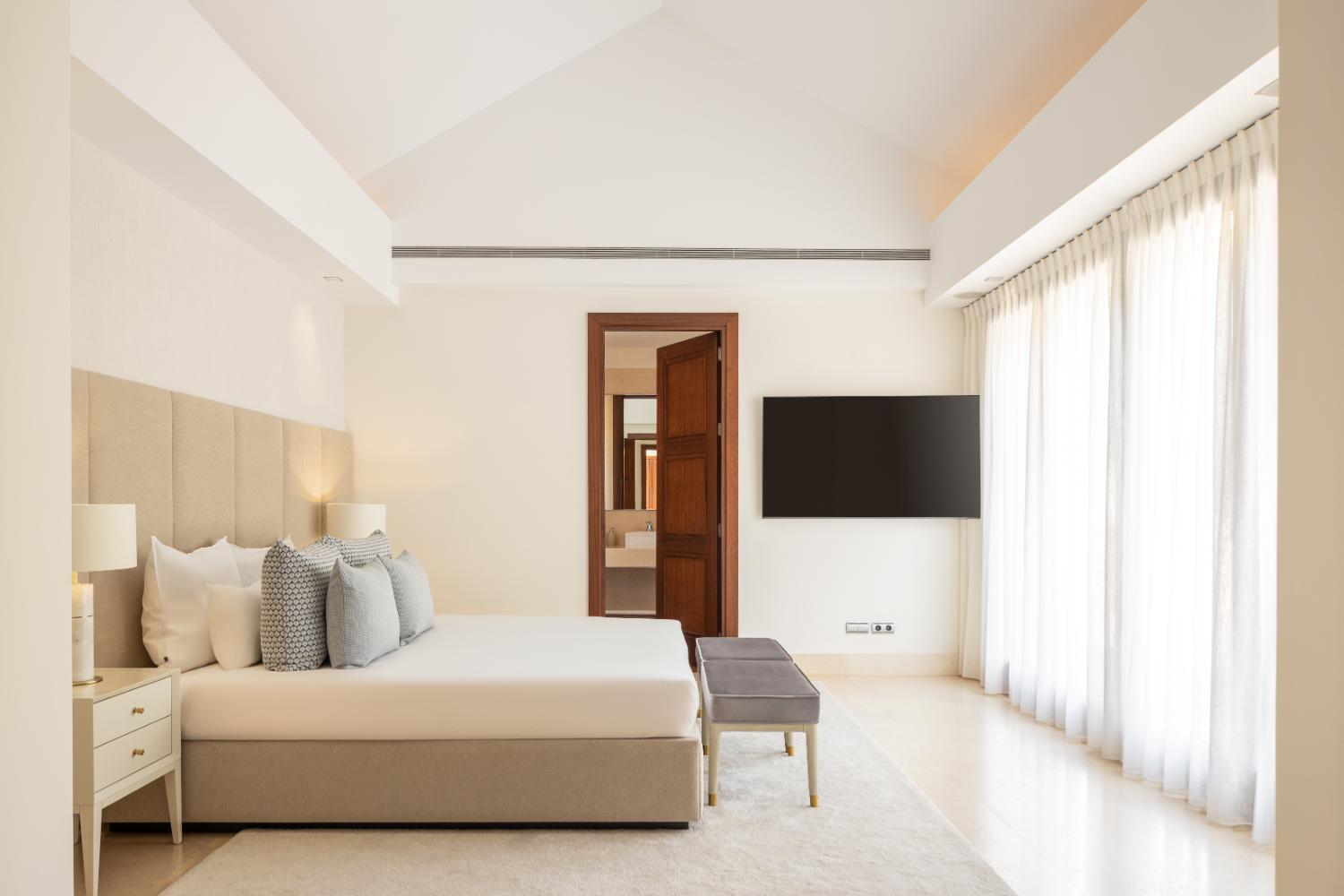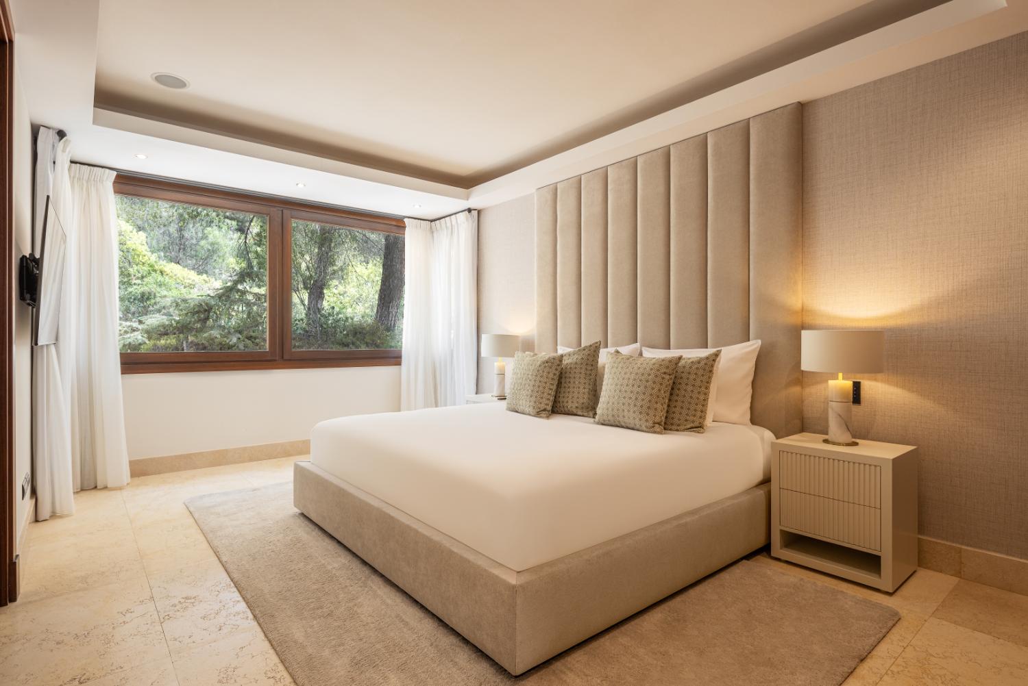 Villa El Mirador functions as a true family home thanks to its approximately 2491 m² of built spaces and its flexible layout. There are a total of six bedrooms: five individually decorated en suite bedrooms in the main villa, each with ample storage and spa-like bathrooms; and a separate one-bedroom apartment that is perfect for teenagers, grandparents, or traveling employees who require privacy and independence. The main suite is a haven in and of itself, complete with a dressing room, private terrace, and even a small home theater for relaxing at the end of the day.
