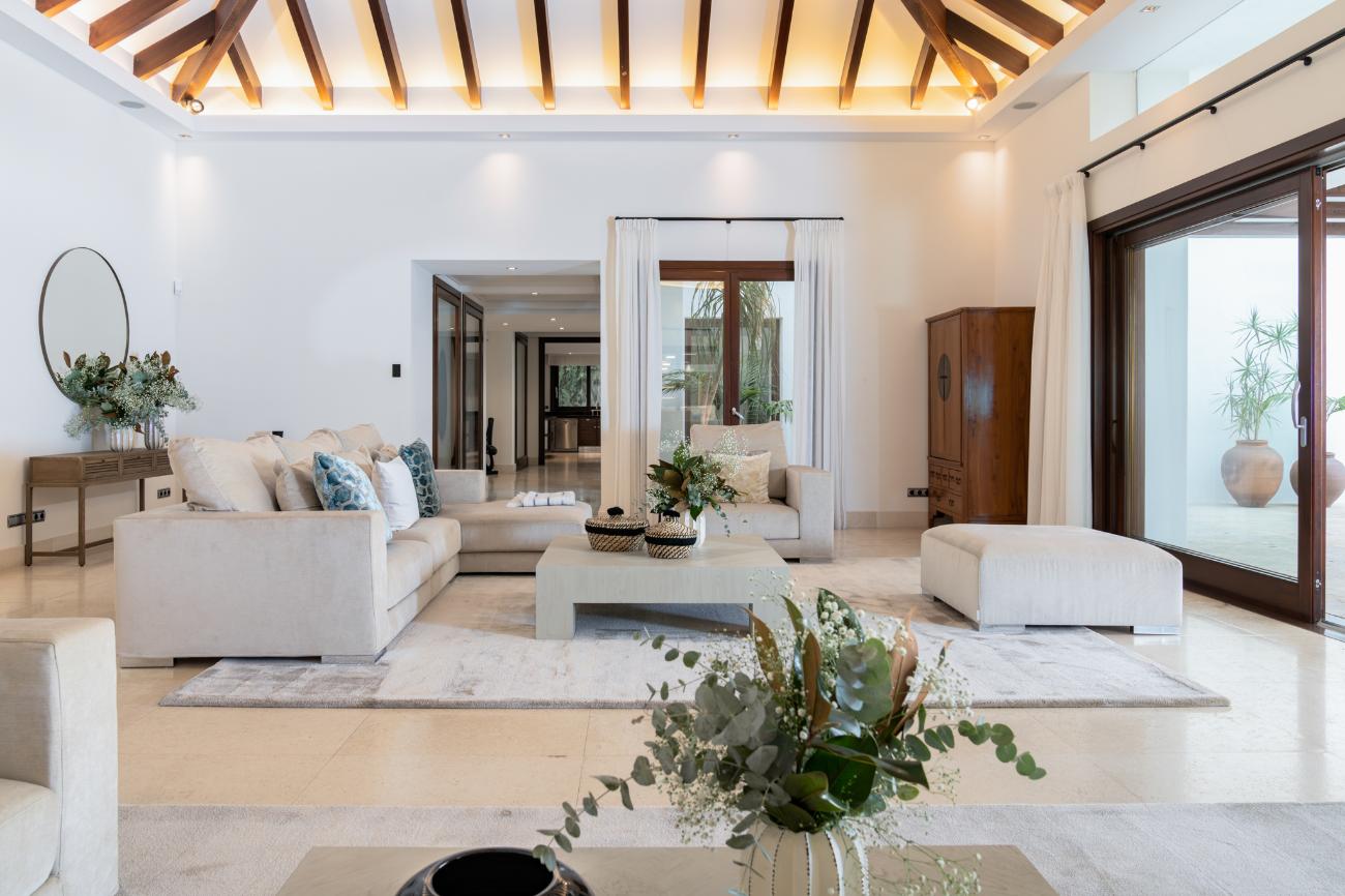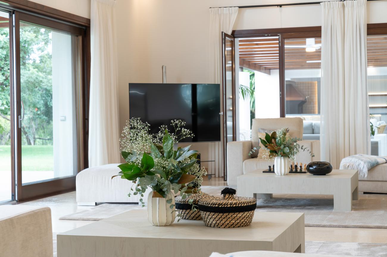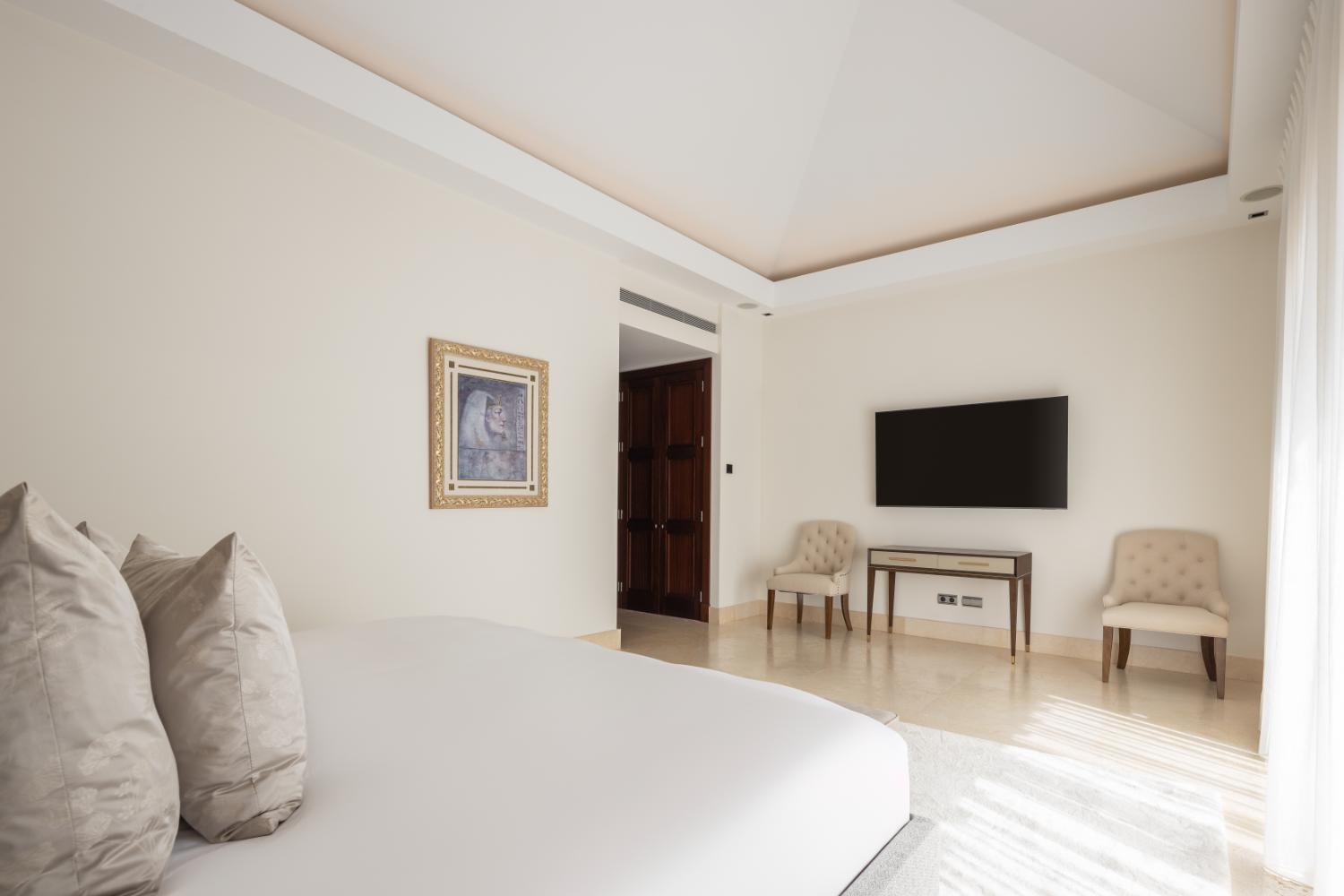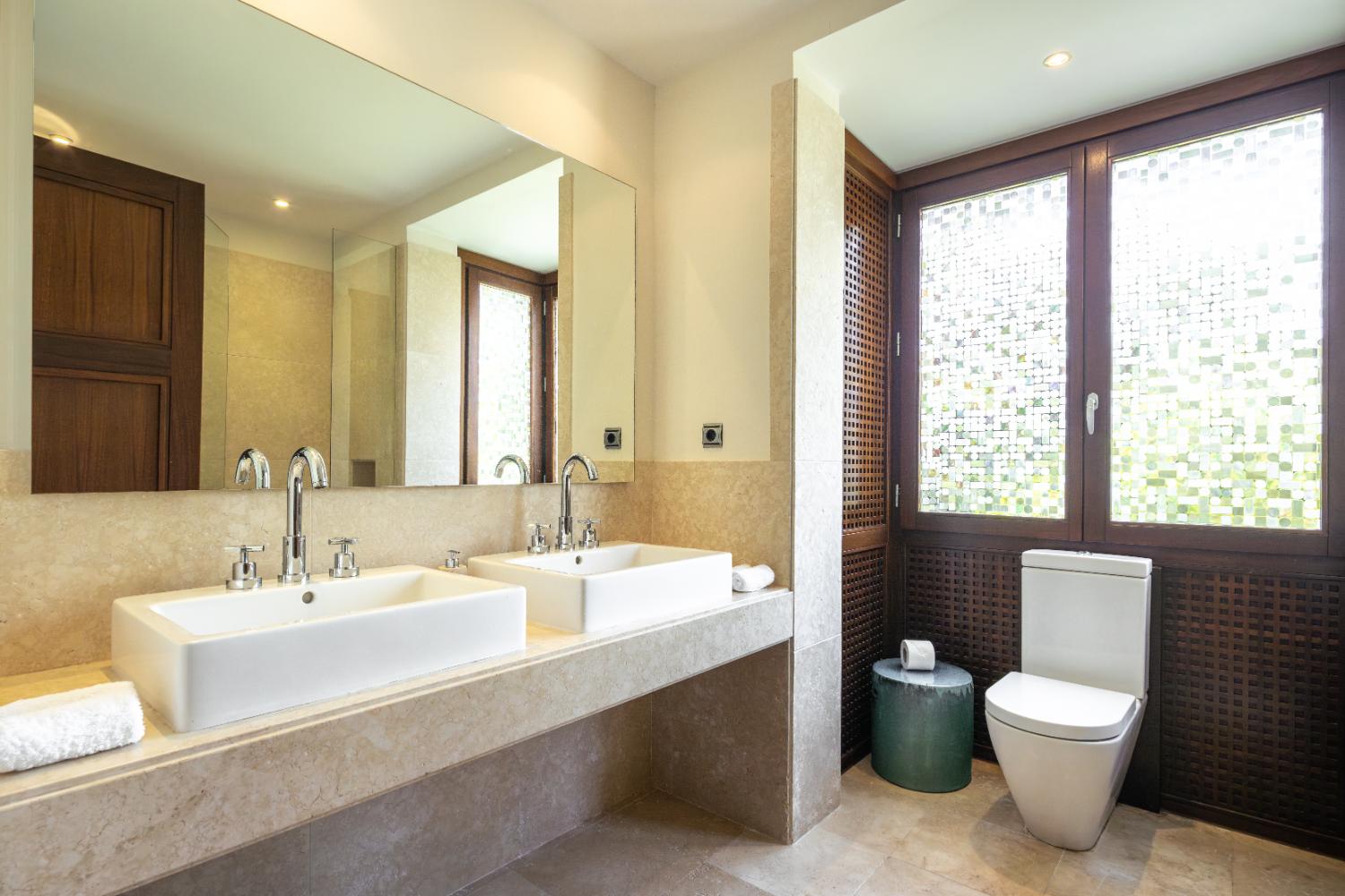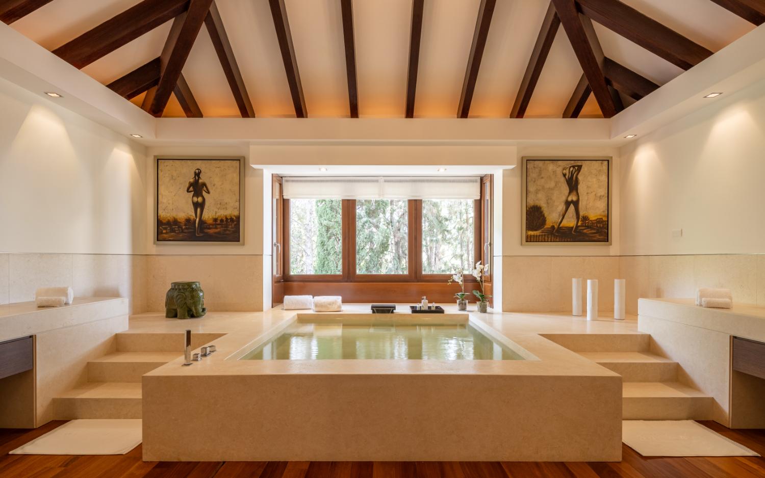 Villa El Mirador functions as a true family home thanks to its approximately 2491 m² of built spaces and its flexible layout. There are a total of six bedrooms: five individually decorated en suite bedrooms in the main villa, each with ample storage and spa-like bathrooms; and a separate one-bedroom apartment that is perfect for teenagers, grandparents, or traveling employees who require privacy and independence. The main suite is a haven in and of itself, complete with a dressing room, private terrace, and even a small home theater for relaxing at the end of the day.
