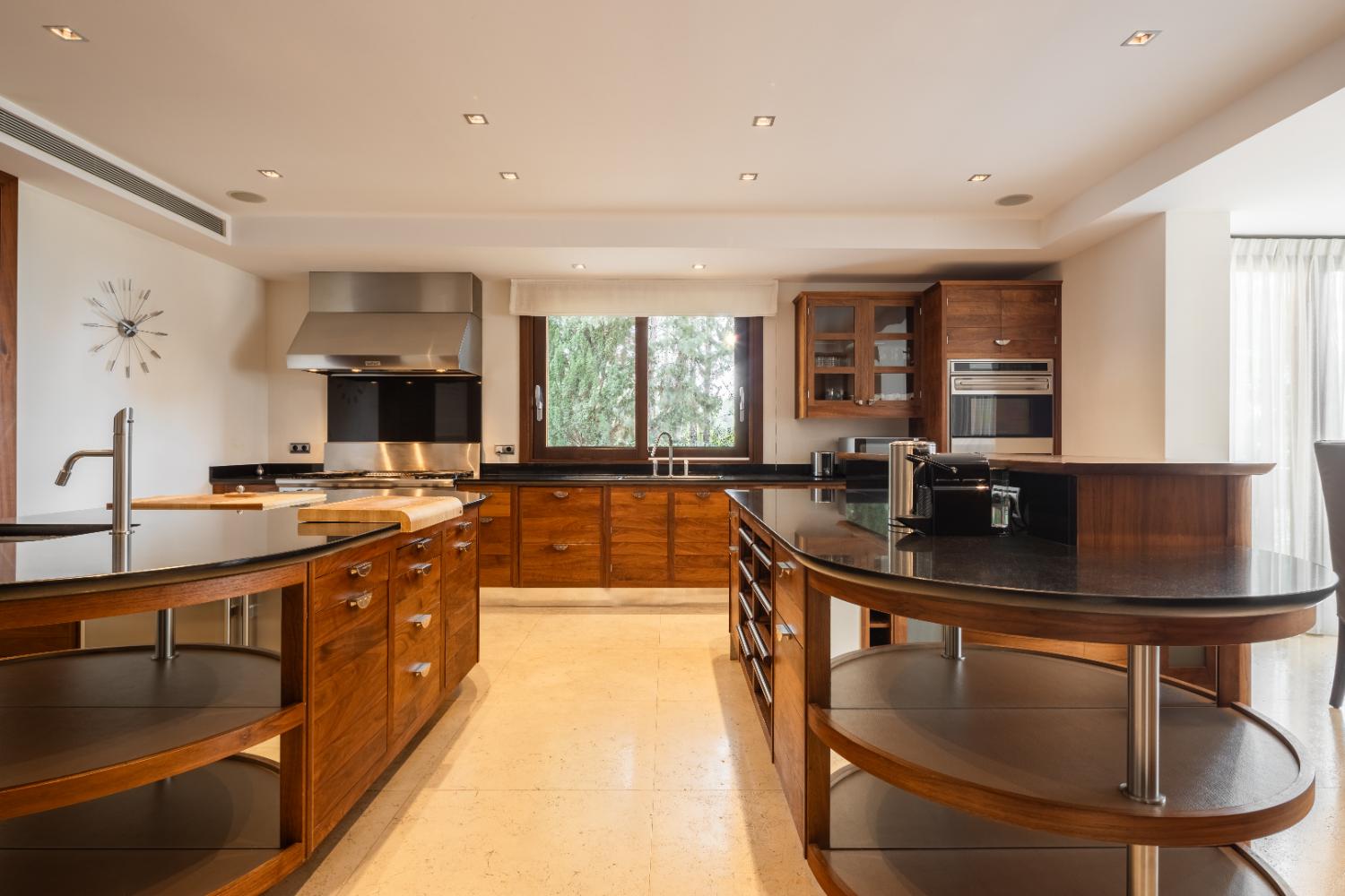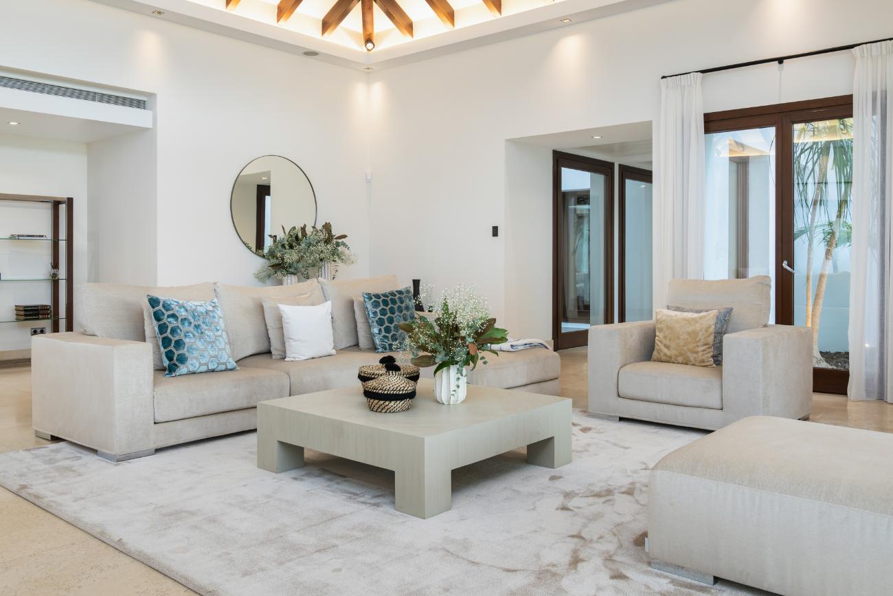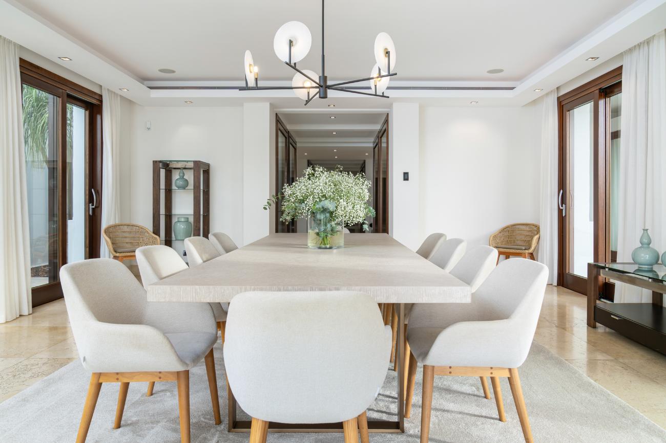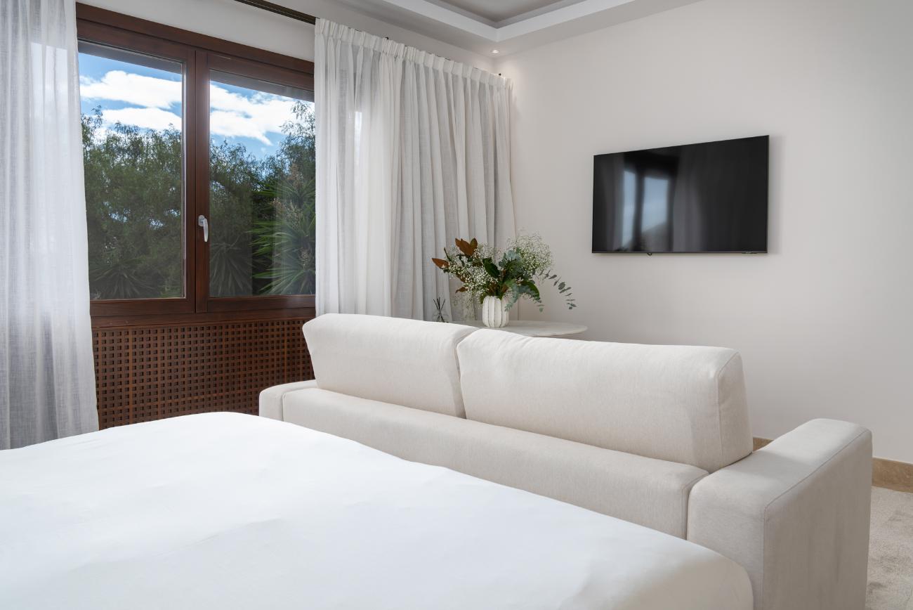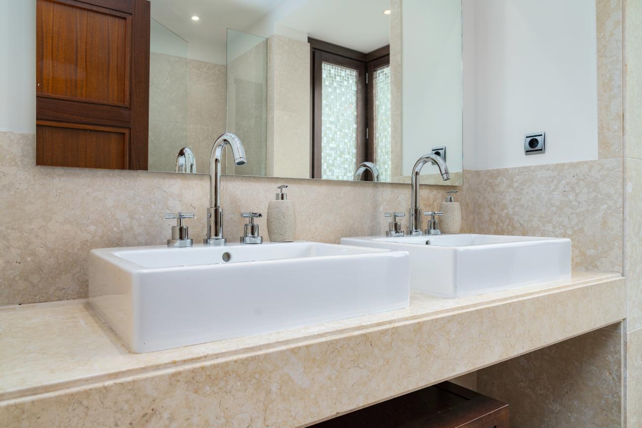 Villa El Mirador functions as a true family home thanks to its approximately 2491 m² of built spaces and its flexible layout. There are a total of six bedrooms: five individually decorated en suite bedrooms in the main villa, each with ample storage and spa-like bathrooms; and a separate one-bedroom apartment that is perfect for teenagers, grandparents, or traveling employees who require privacy and independence. The main suite is a haven in and of itself, complete with a dressing room, private terrace, and even a small home theater for relaxing at the end of the day.