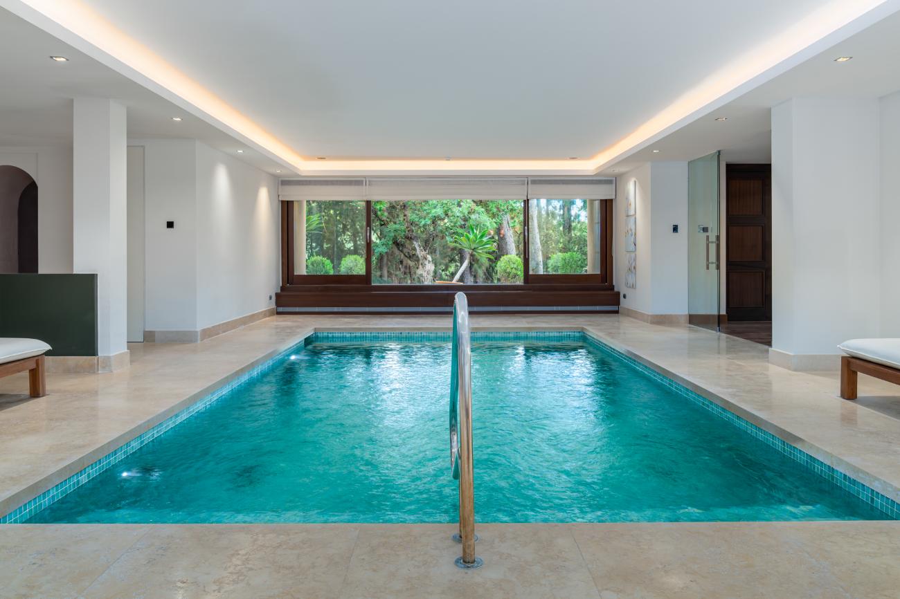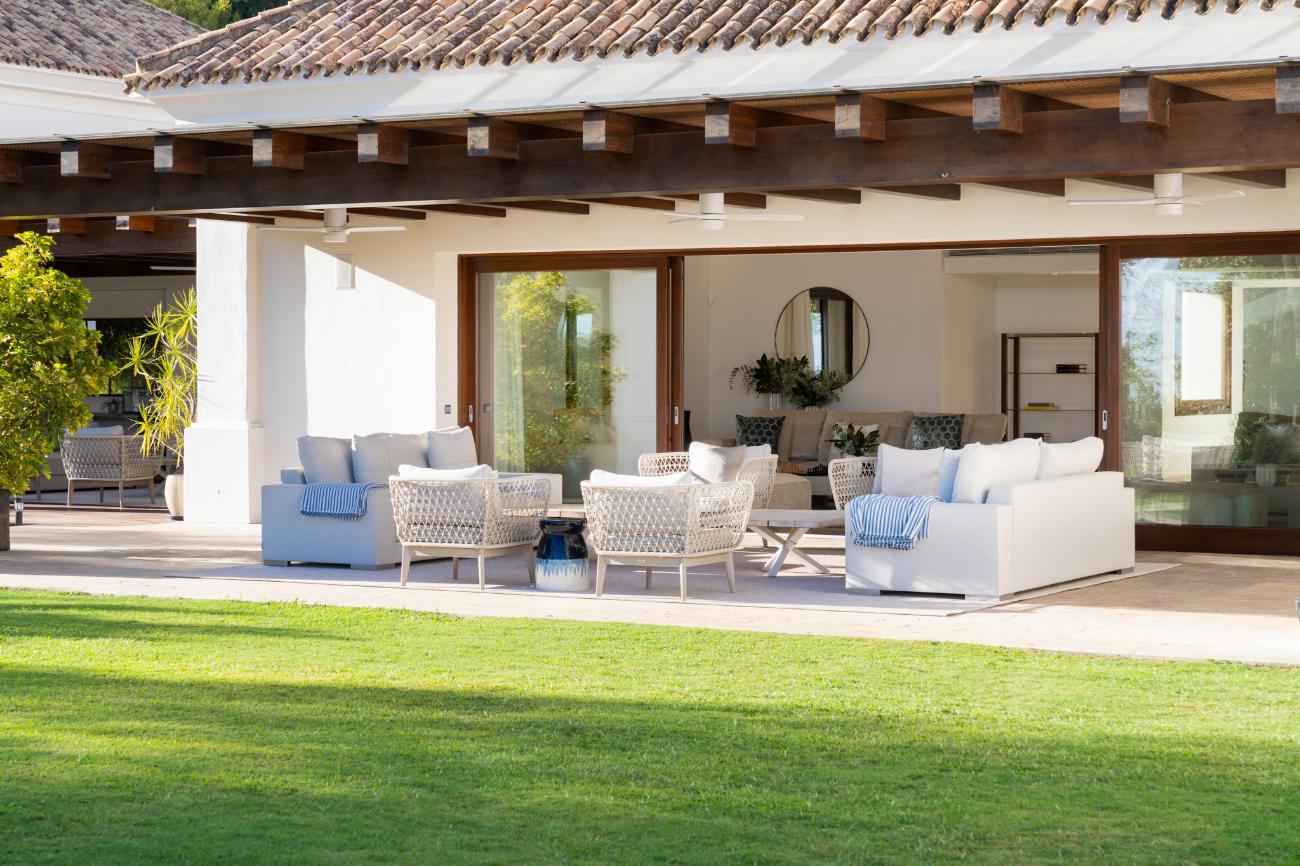It is the kind of house that transforms a vacation into a routine: leisurely breakfasts on a shaded terrace, a swim between sun and shadow, and a movie after dinner while the garden falls into silence. It is situated in the ultra-exclusive Cascada de Camoján enclave (foothills of Sierra Blanca, Marbella).