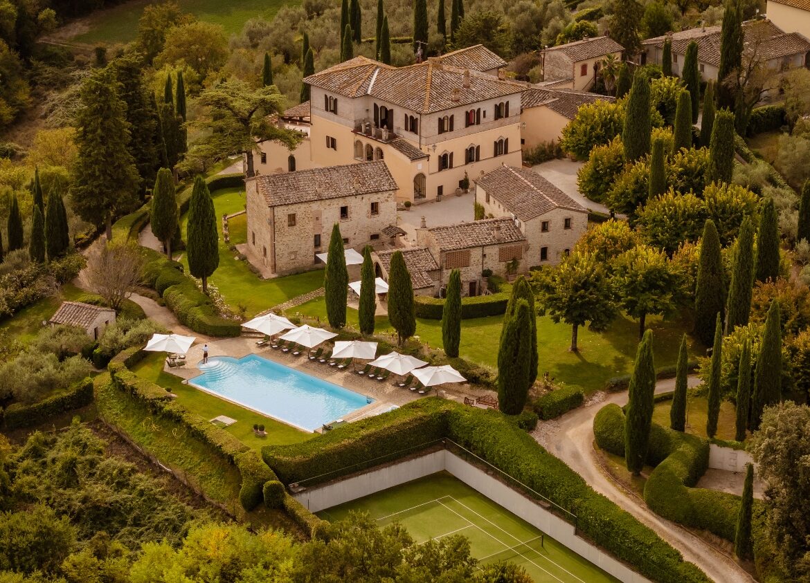 This is the luxury grand villa where Italian and foreign noble families celebrated. Located near Siena in the Chianti region, this luxury estate is now completely restored and features luxurious interiors and spacious areas for the whole family.