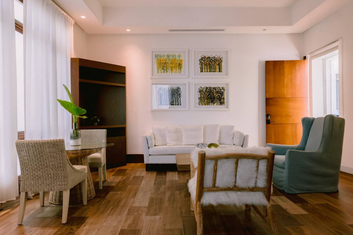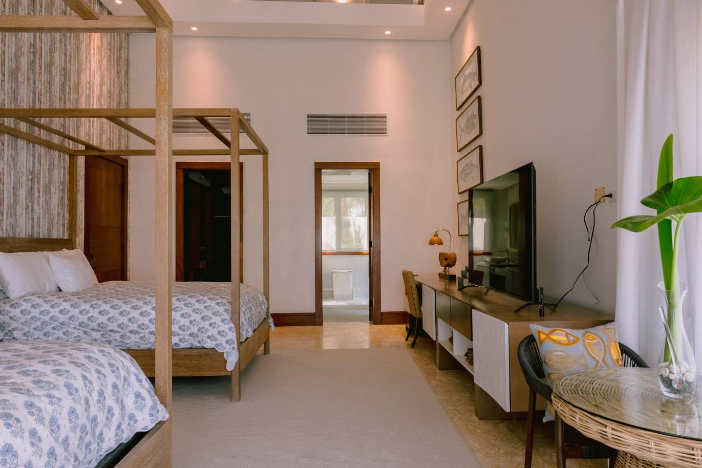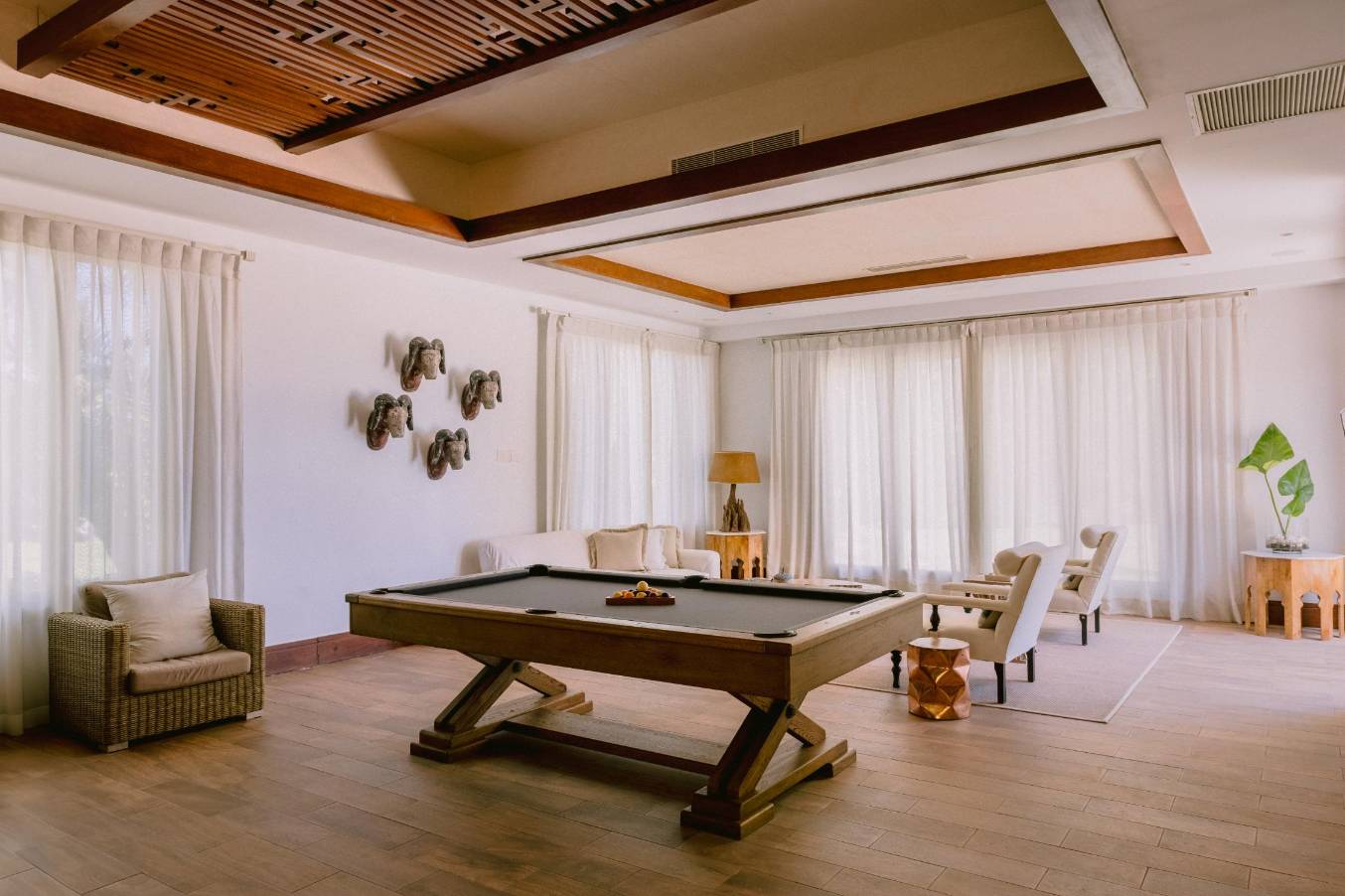 Designed for up to 12 guests, Villa Fairway Luxe offers six serene bedroom suites, each with its own ensuite bathroom, air conditioning, and the kind of comfort you notice most at night—cool sheets, quiet halls, and privacy when you want it. Three suites feature king beds, while three additional suites are set up with two queen beds each, making it effortless to host couples, friends, and families under one roof. When the day winds down, the entertainment room becomes the natural meeting point for laughter and friendly competition around the pool table, while outside the terraces and tropical gardens set the scene for sunset cocktails and long al fresco dinners with the golf course as your backdrop.