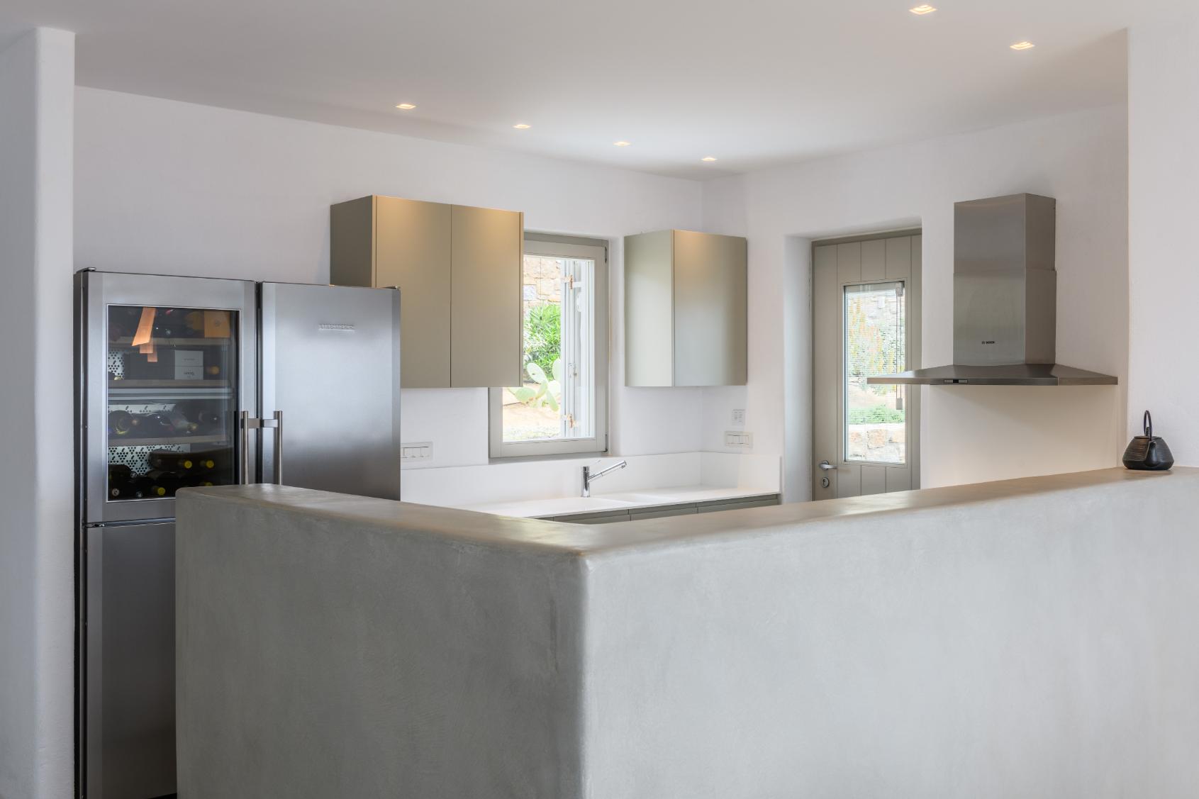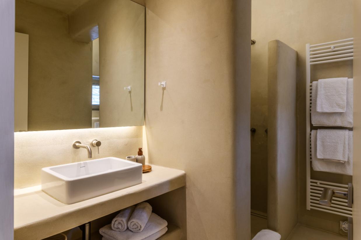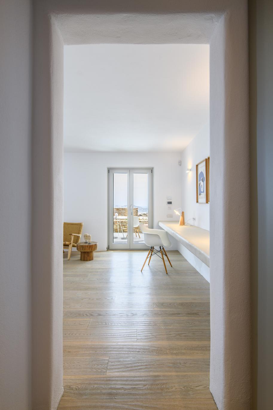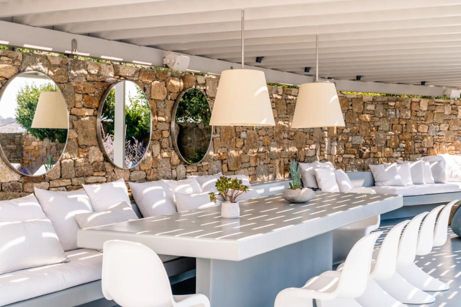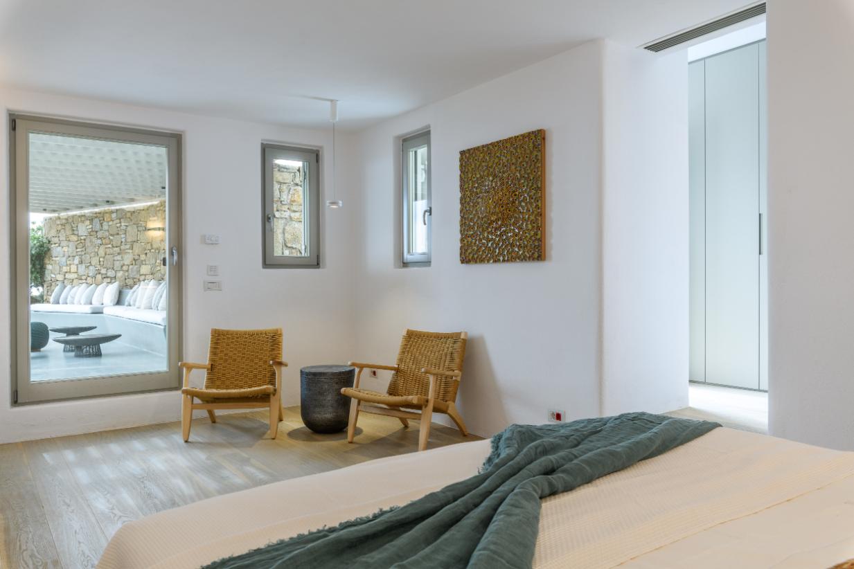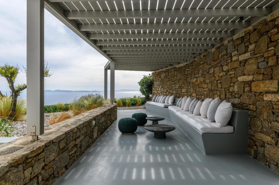 With its sculptural lines, locally inspired stonework, and indoor-outdoor rhythm that keeps the breeze flowing and the sea in sight, Villa Faros combines modern minimalism with true Mykonian character. As a result, the house has a sophisticated yet grounded feel, offering a genuine island experience without compromising on contemporary comfort.
