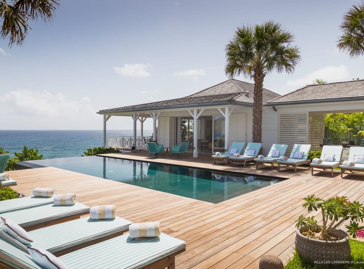 Like a silent lighthouse of its own, Villa Il Faro rises from the verdant hillside above Anse des Lézards.
