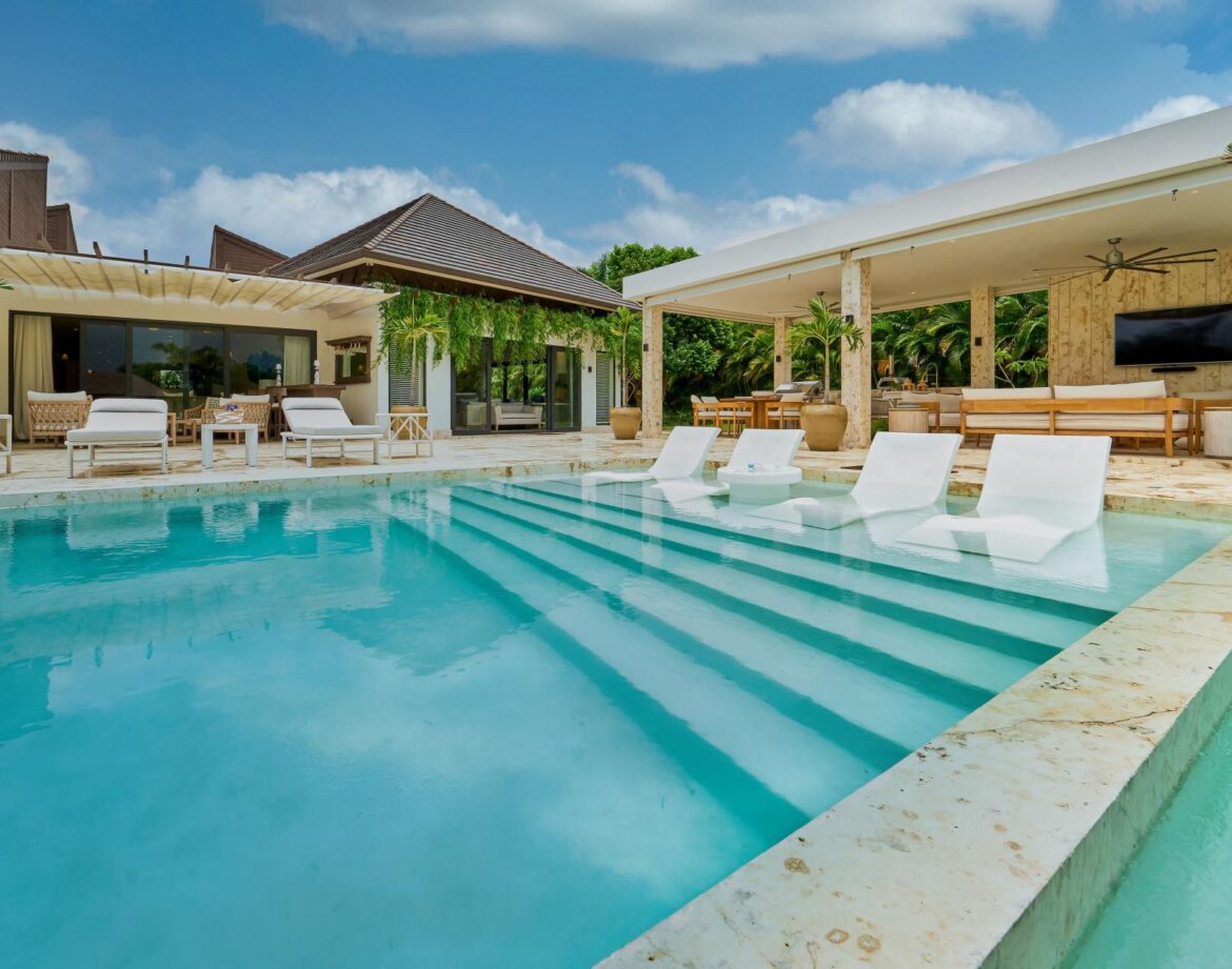 From the morning light that floods the interiors to the evenings spent outside under the stars, everything at Villa Kari seems to have been designed to flow effortlessly. Located on the esteemed grounds of Casa de Campo Resort, this one-story modern villa is perfect for families and groups who appreciate privacy, space, and well-thought-out design. It offers a sophisticated yet inviting atmosphere.