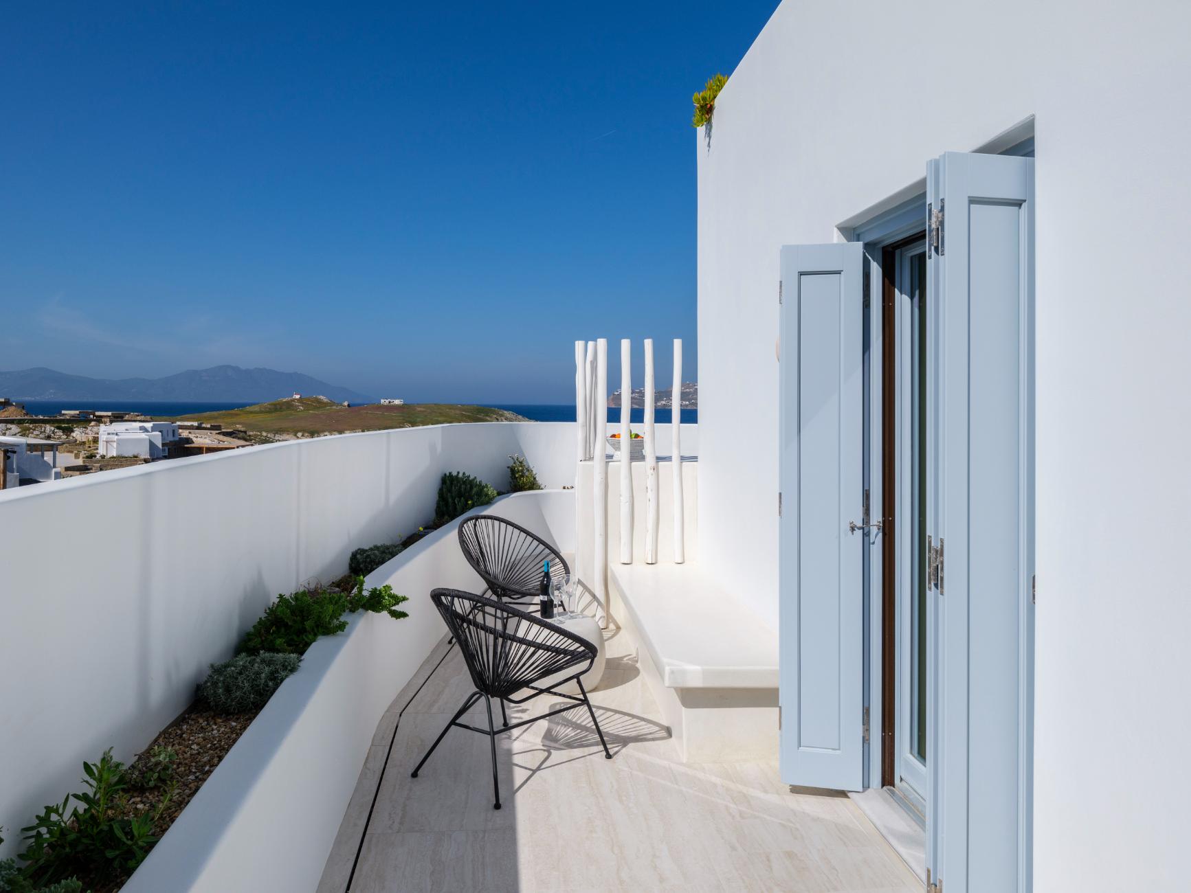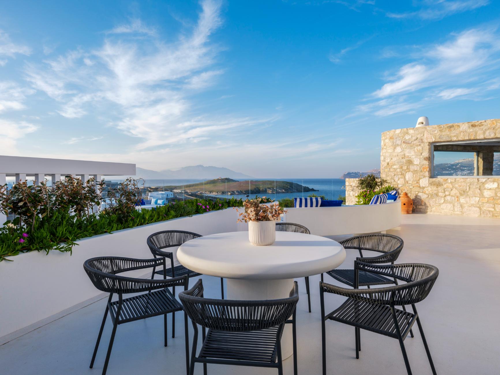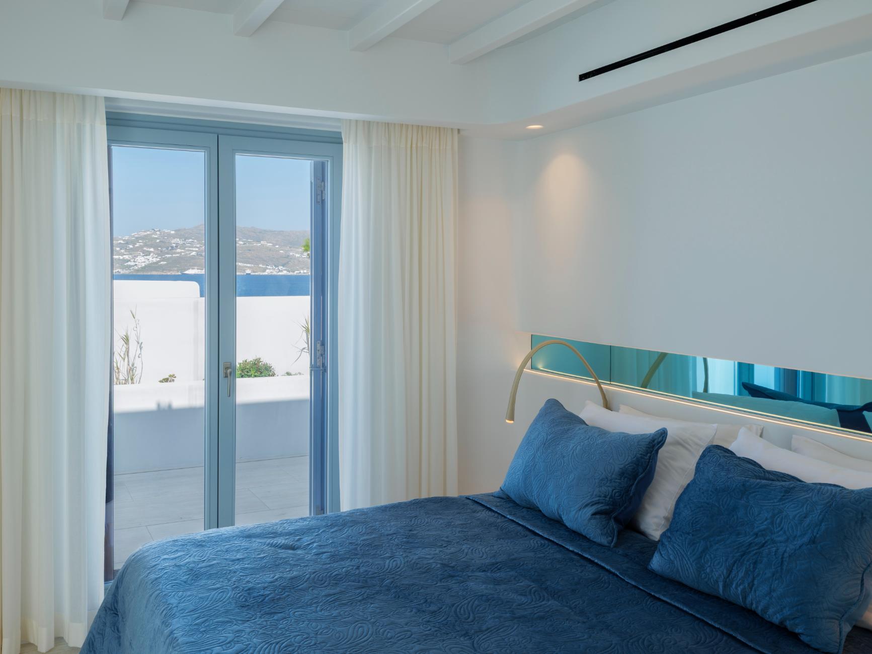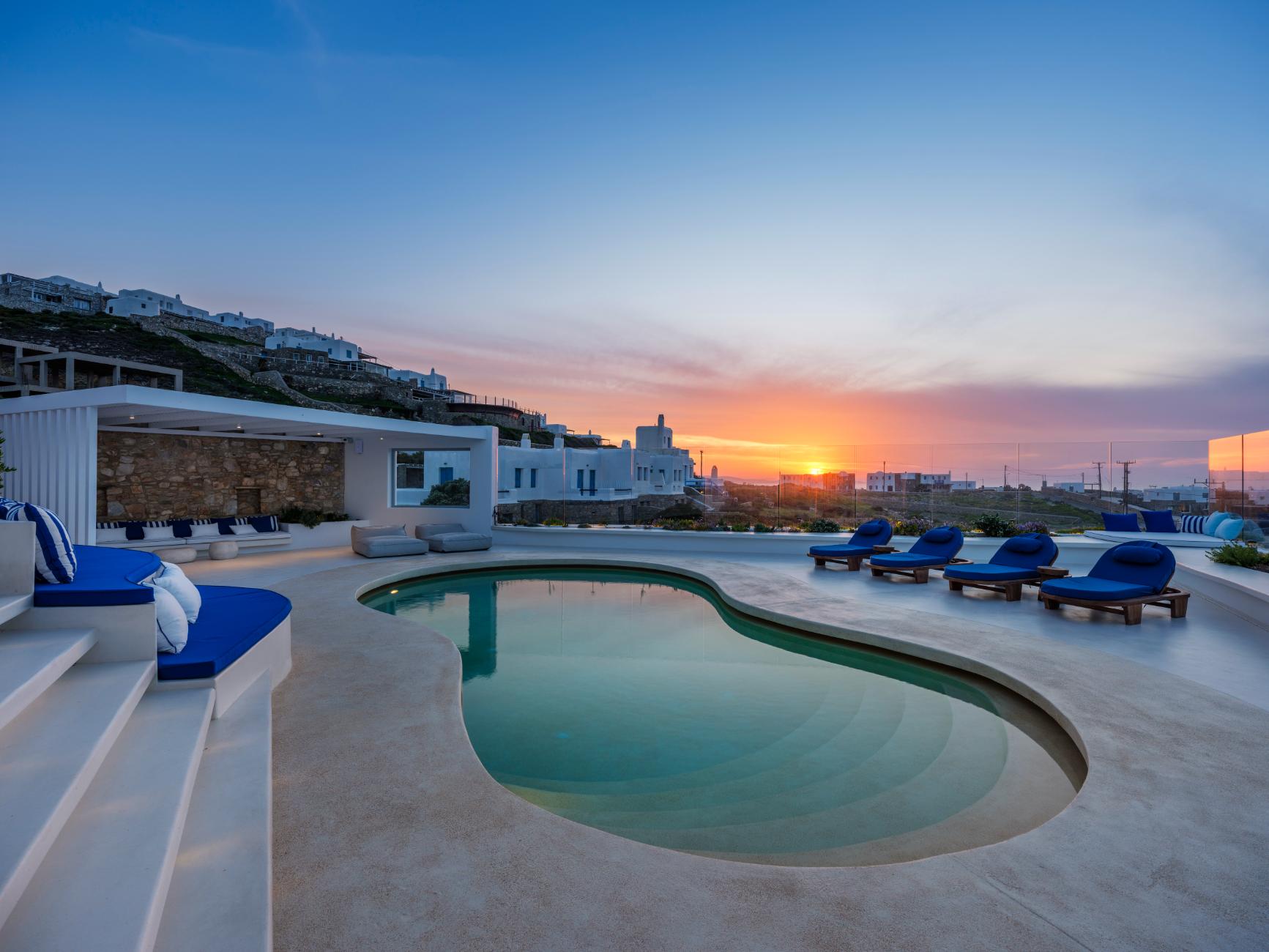 What makes Villa Kiya different is simple: it combines a true entertainer’s outdoor setup for large gatherings with three independent sea-view jacuzzi suites—so you get both a social villa and a “private hotel suite” feeling in one, a standout among Greece Villas on Mykonos.