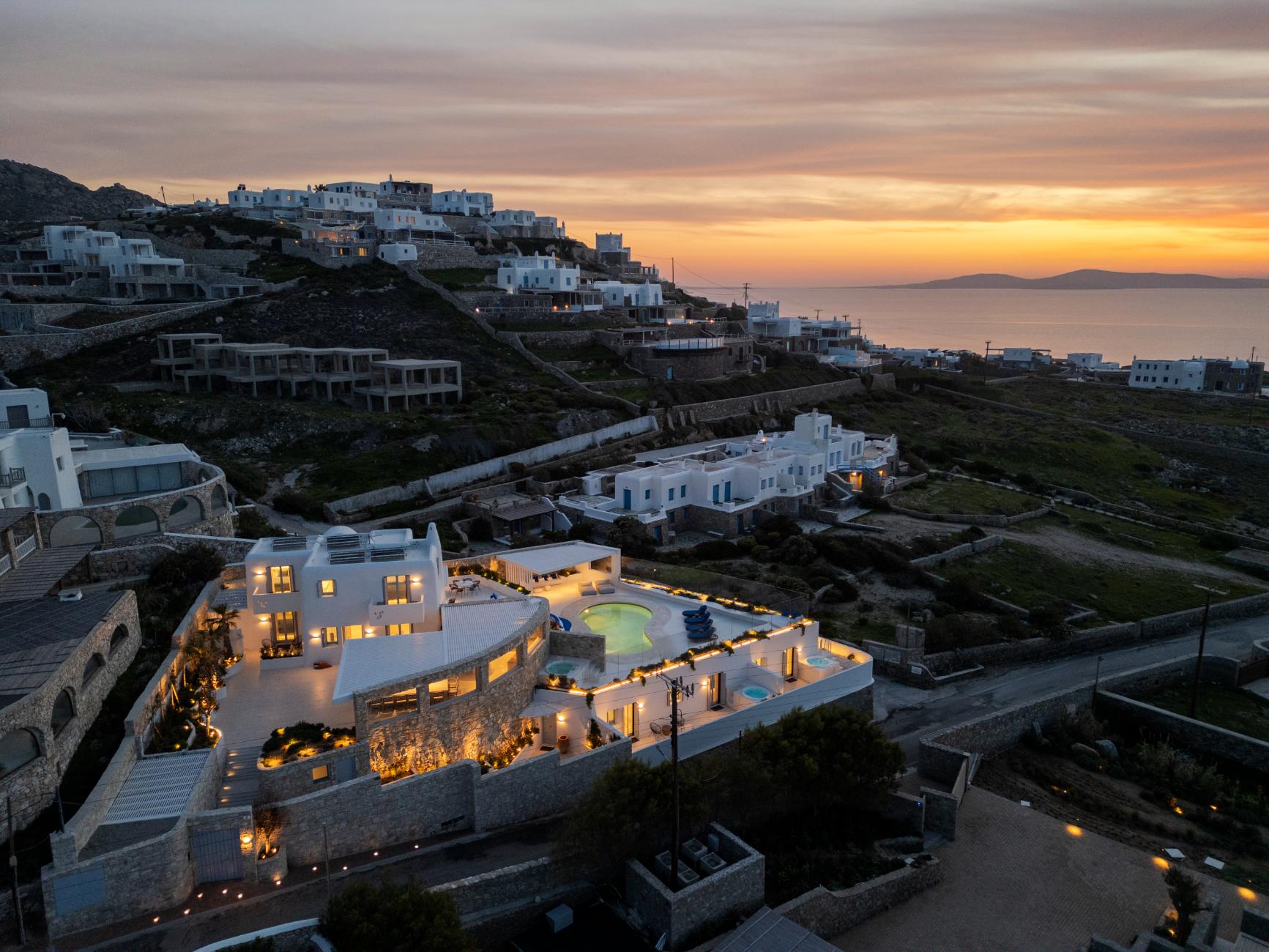 For practicalities, the most convenient arrival point is Mykonos Airport (JMK), typically around 15–30 minutes by car depending on where the villa sits on the island and traffic; the New Port is often a similar range, roughly 15–35 minutes in realistic conditions, with peak summer hours taking longer.