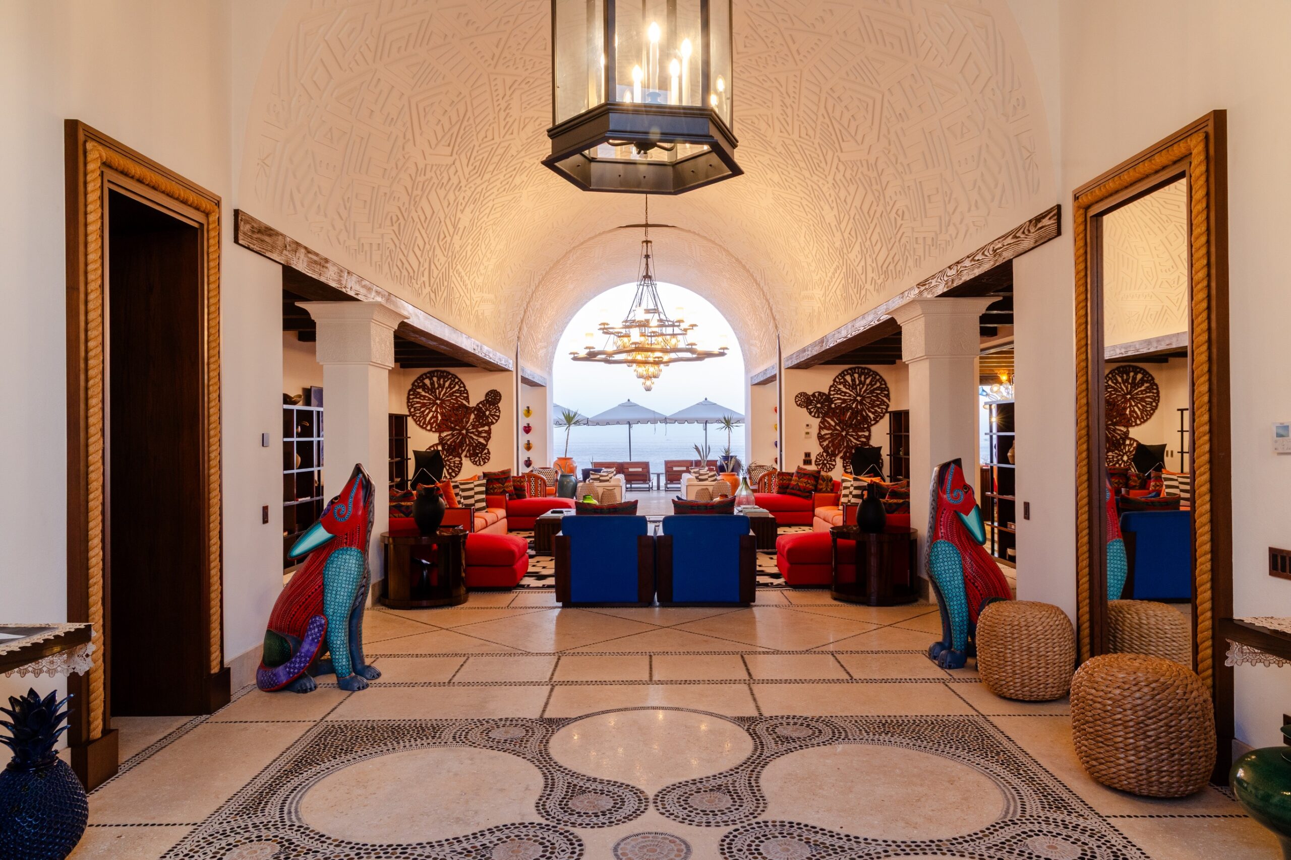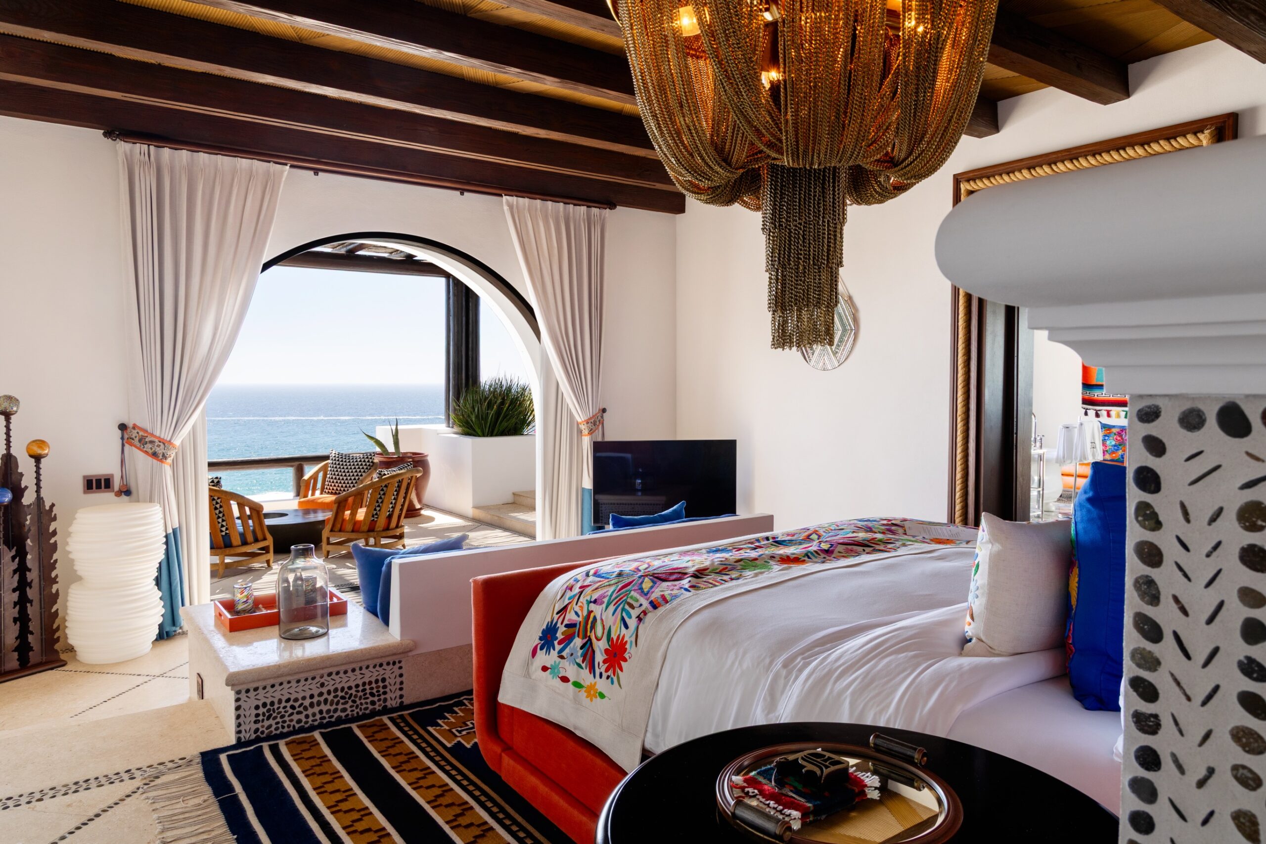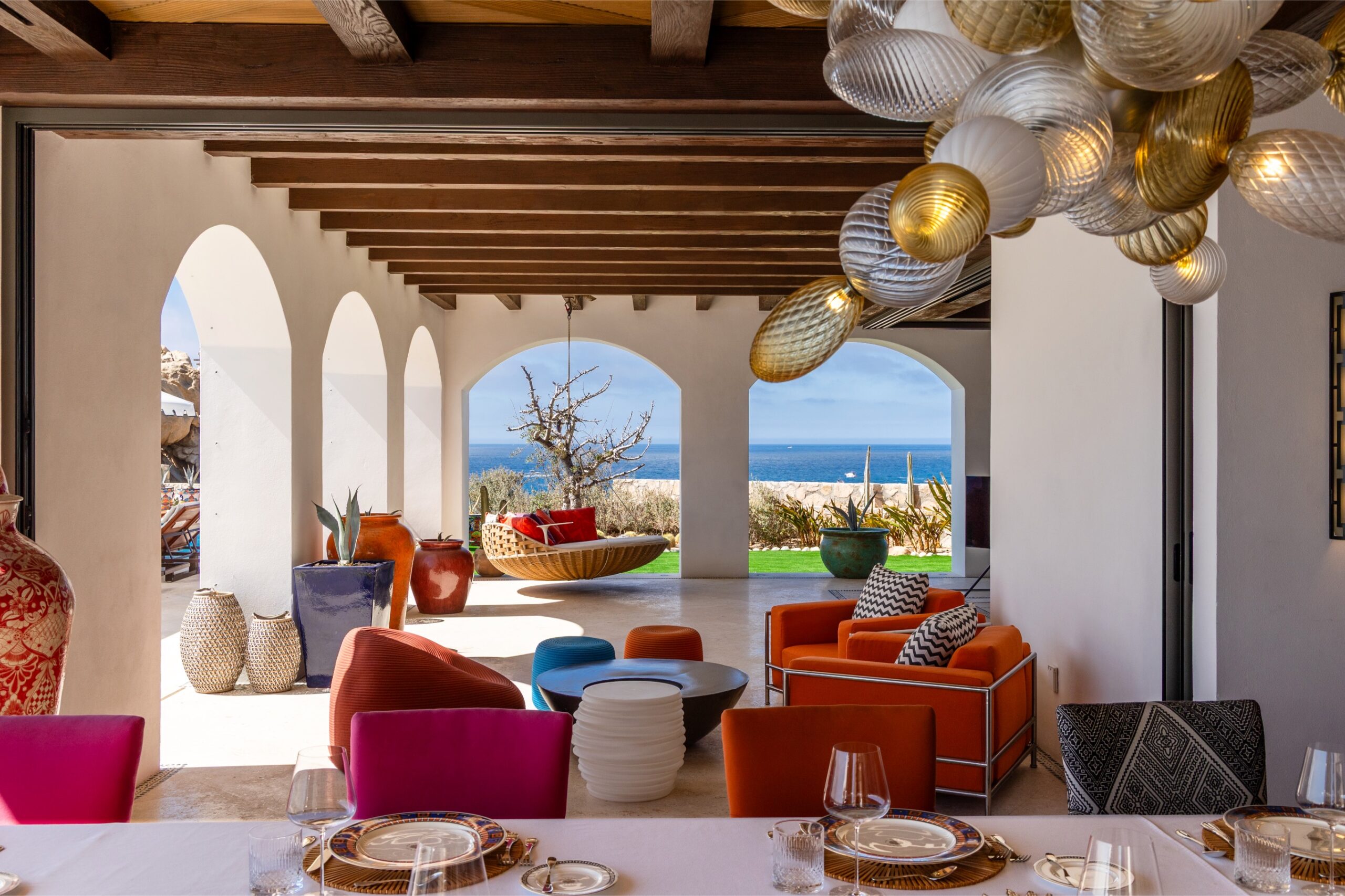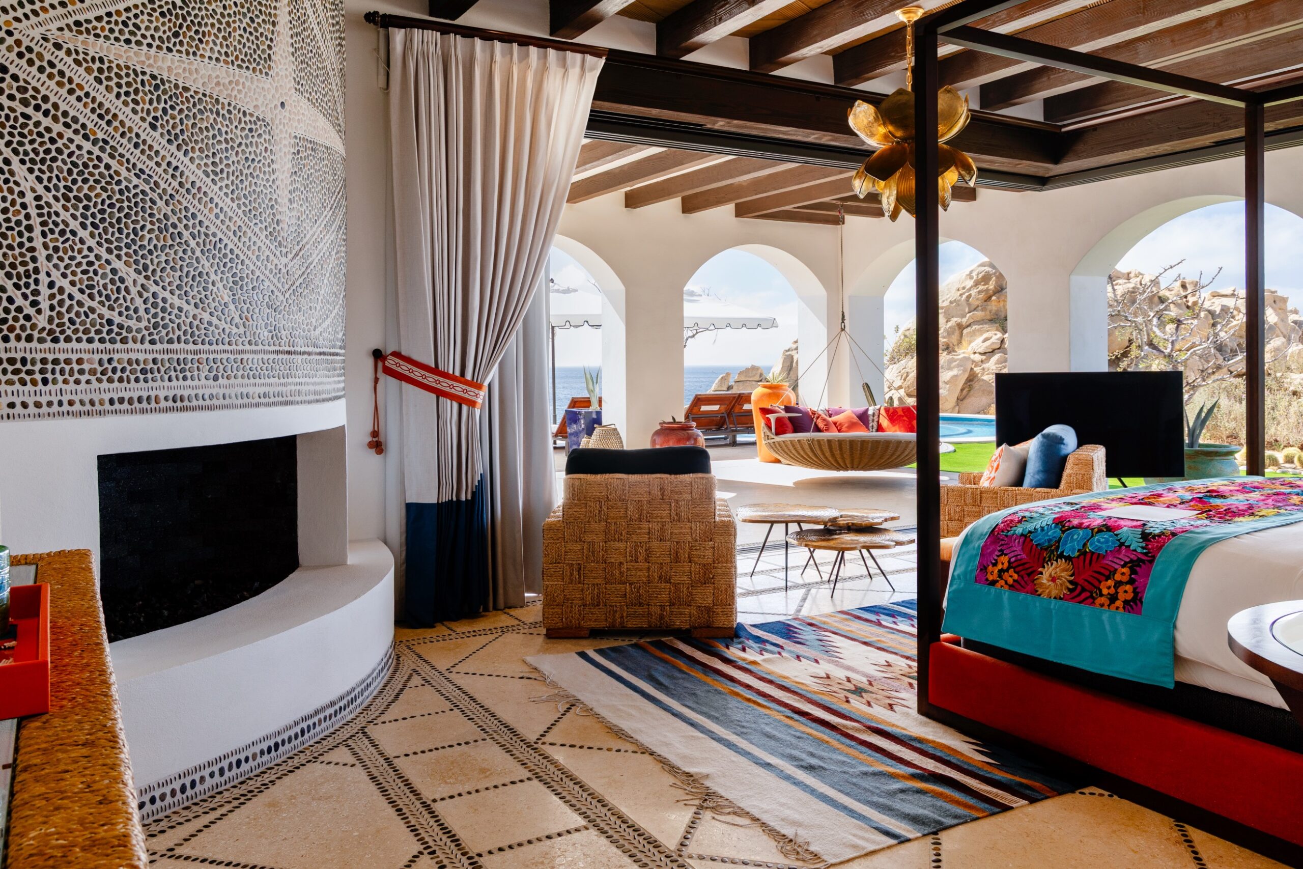 This 20,000-square-foot hacienda, which is located at the southernmost tip of Baja California, where the desert meets deep blue water, effortlessly reimagines old-world grandeur. Locally made furniture, carved doors, painted nichos, fountains, and shaded patios are interspersed throughout the interiors’ vibrant colors and rich textures, inviting you to move from salon to terrace to pool without ever losing sight of the ocean. A late breakfast beneath the portals, a swim in the salty breeze, or a siesta on the upper terrace while fishing boats sail by are just a few of the natural activities that take place there on long, sunny days.