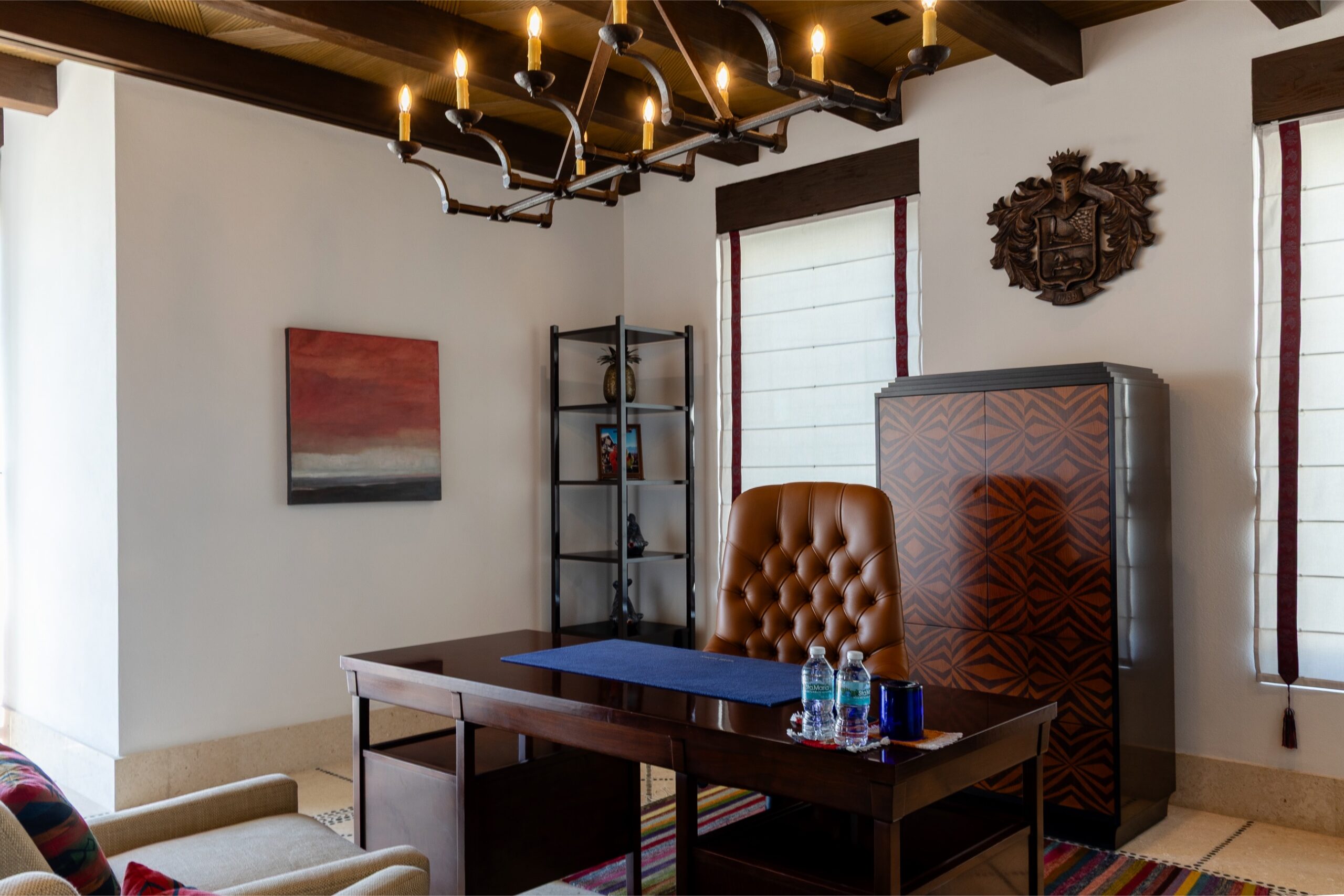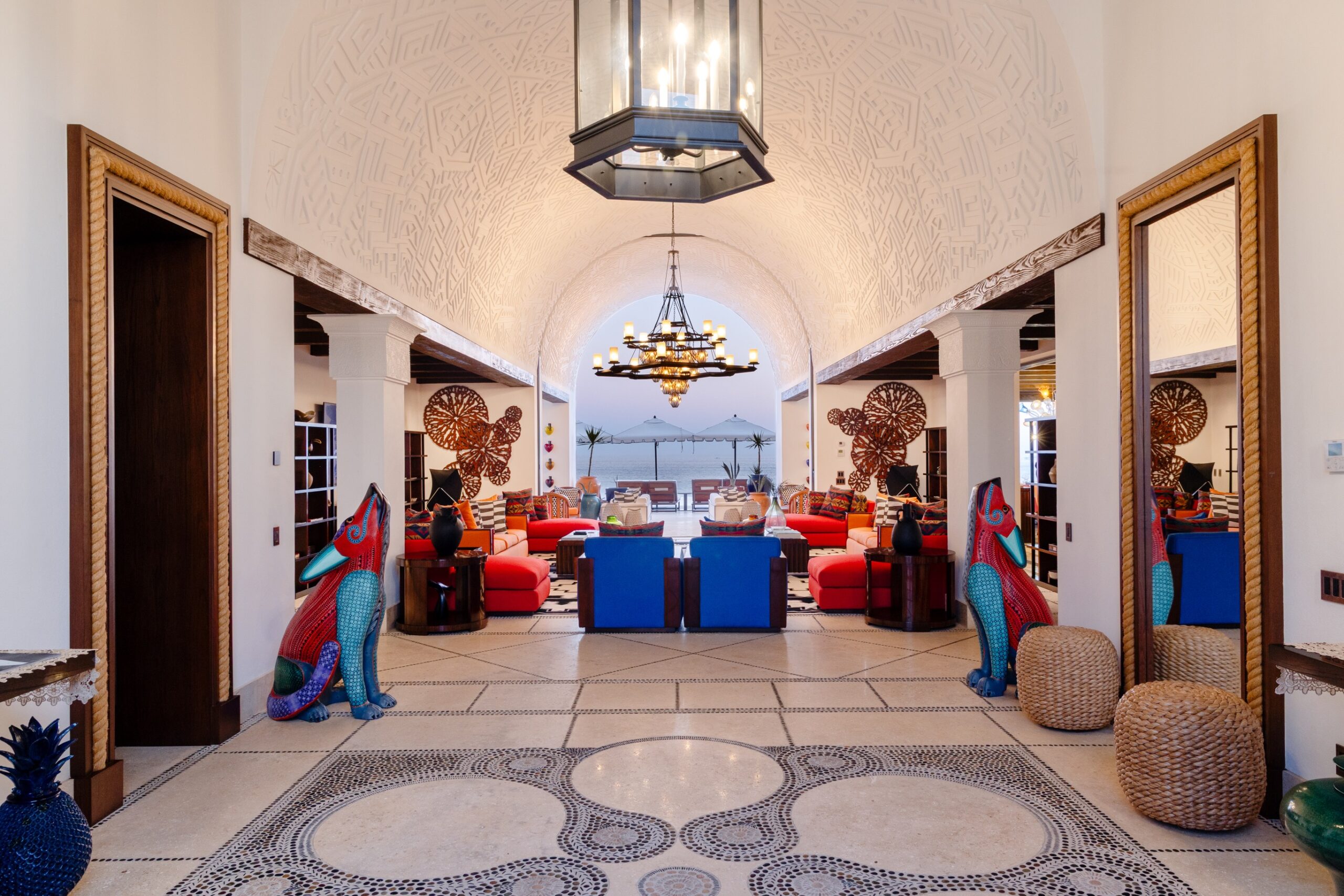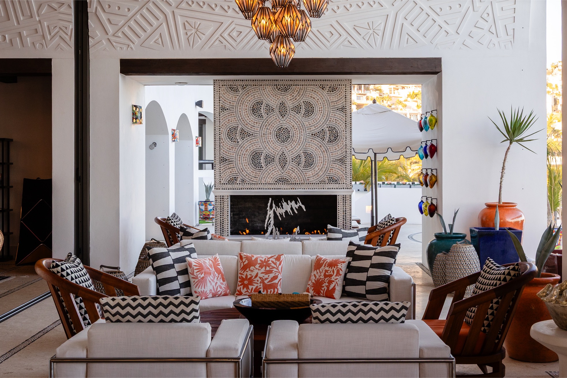 This 20,000-square-foot hacienda, which is located at the southernmost tip of Baja California, where the desert meets deep blue water, effortlessly reimagines old-world grandeur. Locally made furniture, carved doors, painted nichos, fountains, and shaded patios are interspersed throughout the interiors’ vibrant colors and rich textures, inviting you to move from salon to terrace to pool without ever losing sight of the ocean. A late breakfast beneath the portals, a swim in the salty breeze, or a siesta on the upper terrace while fishing boats sail by are just a few of the natural activities that take place there on long, sunny days.