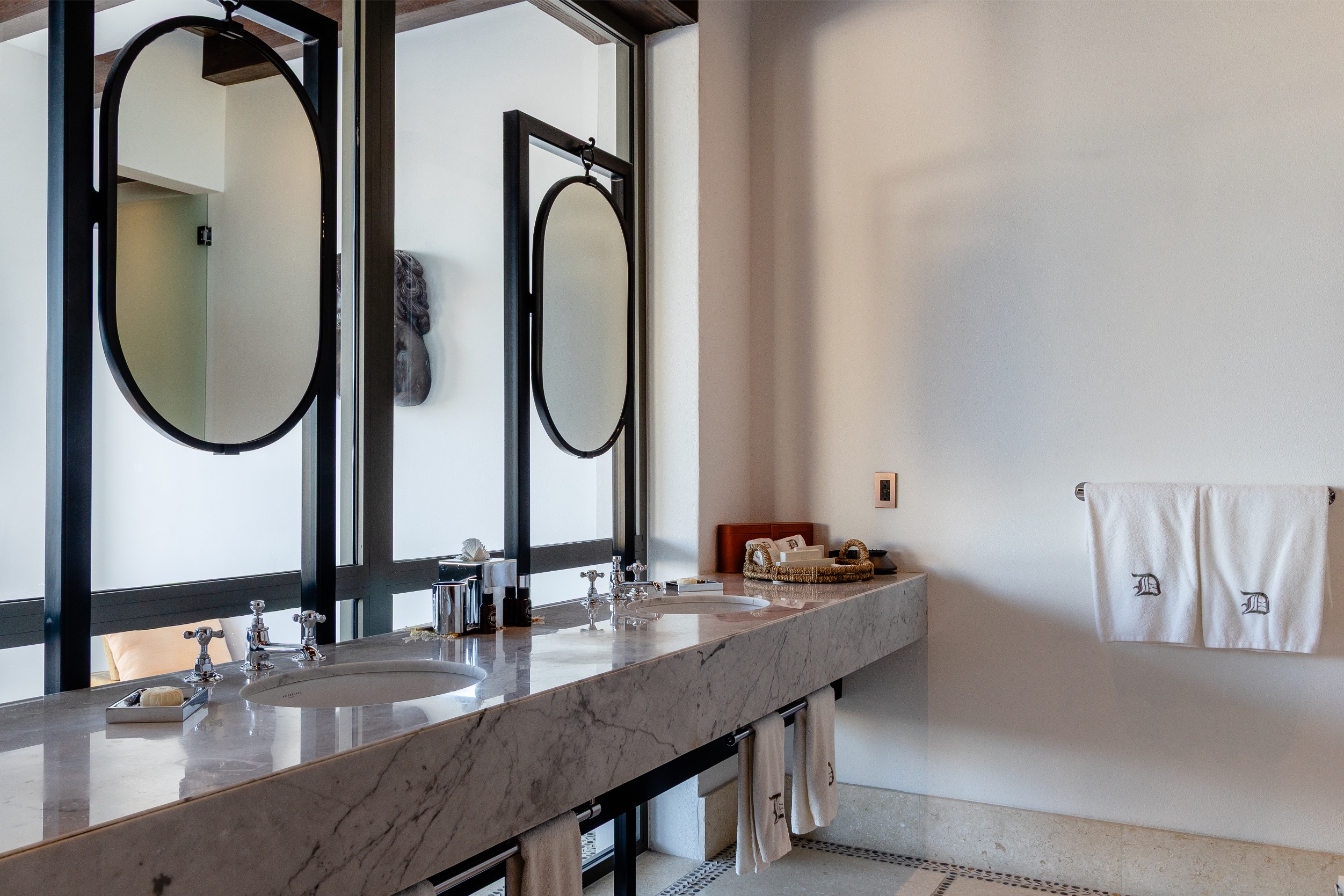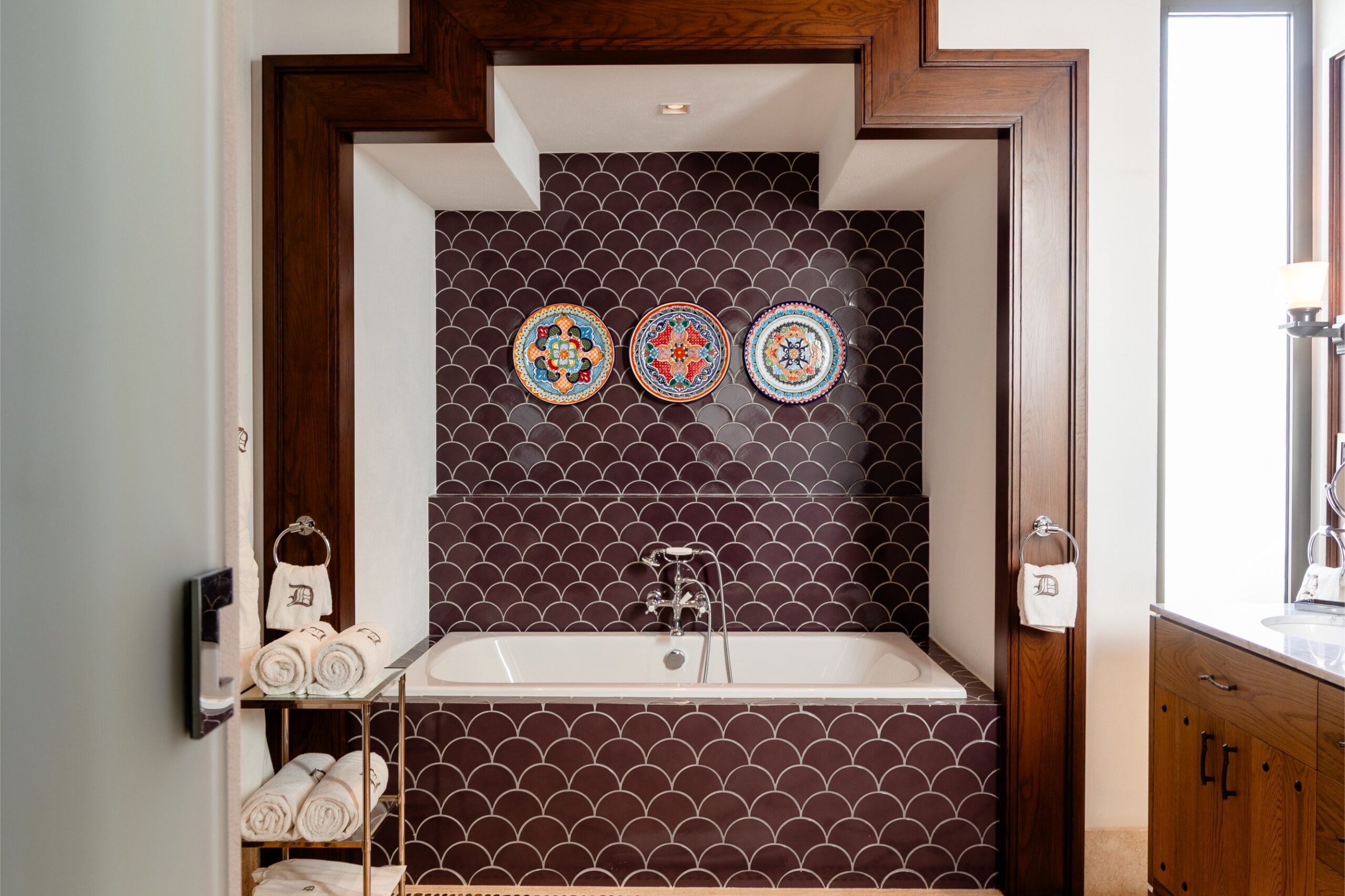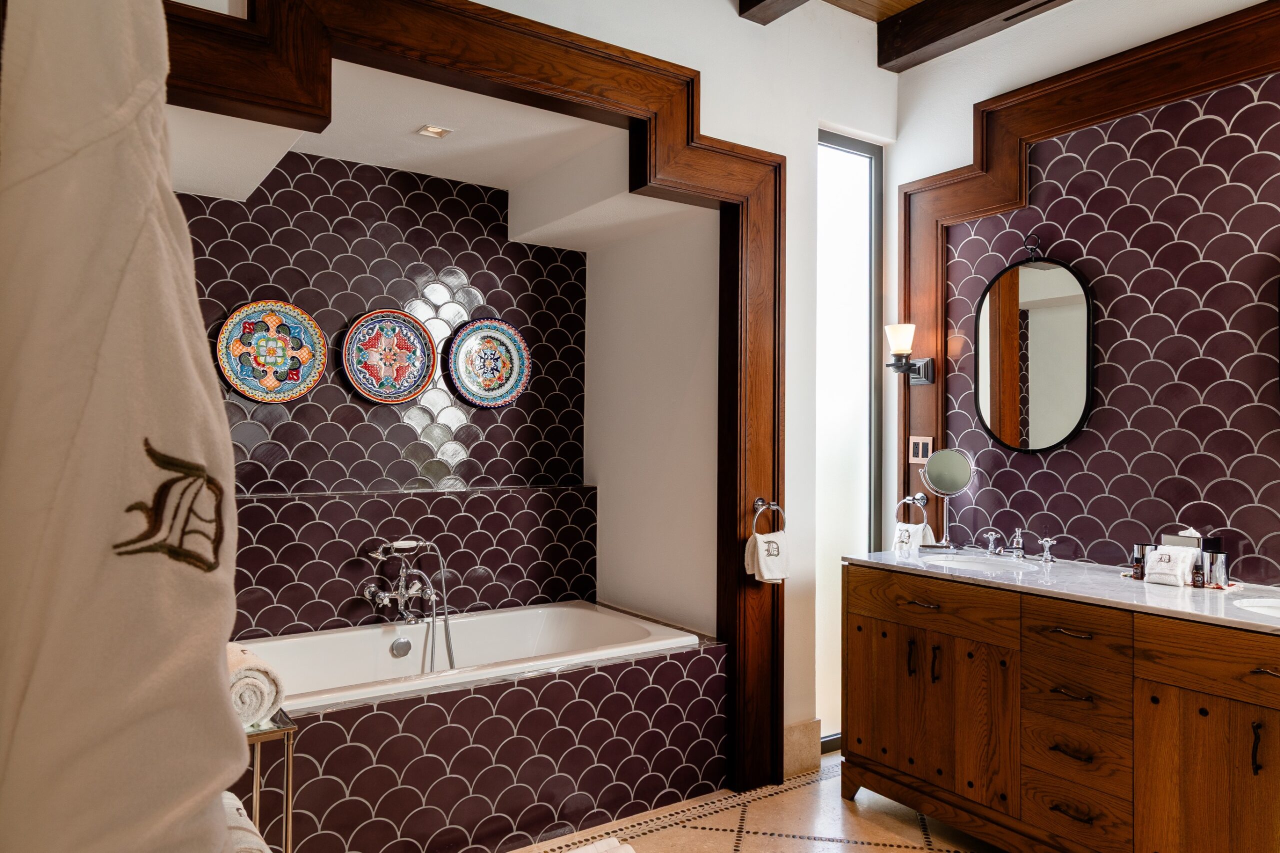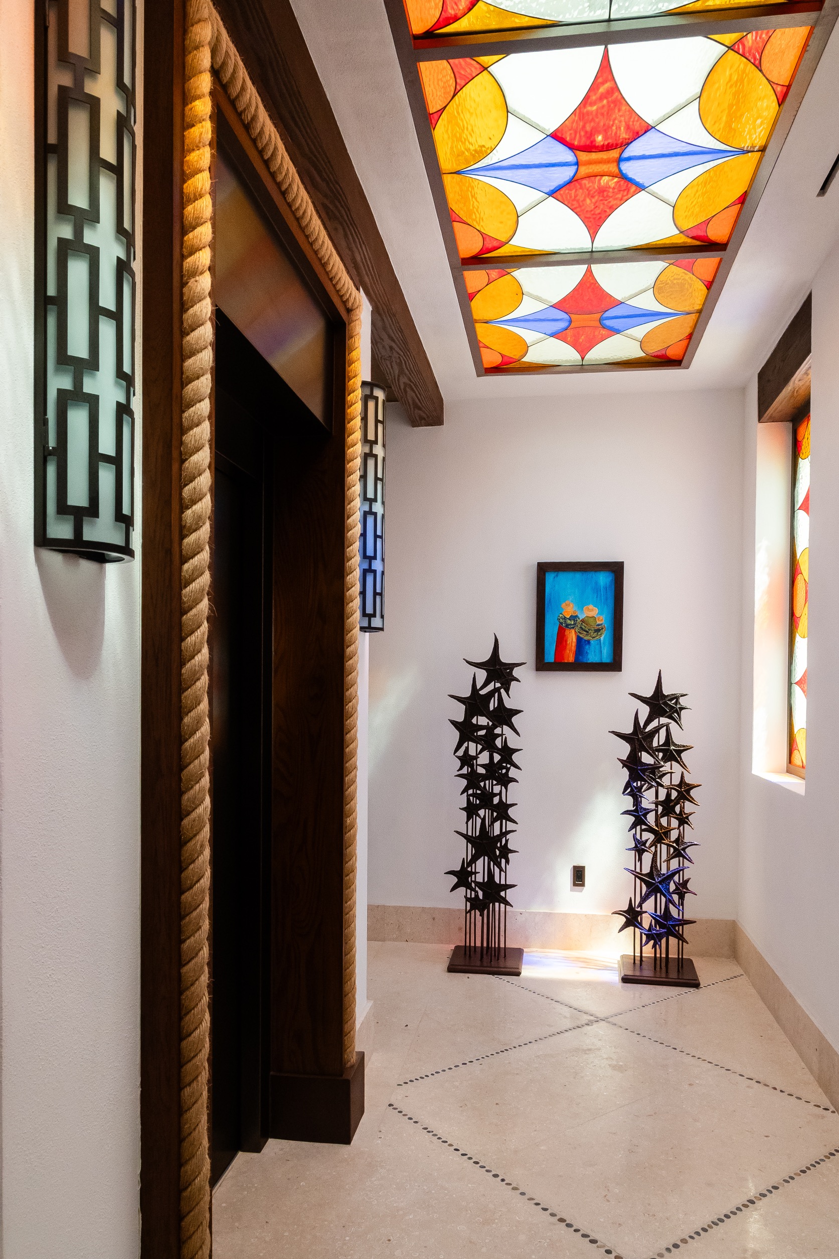 This 20,000-square-foot hacienda, which is located at the southernmost tip of Baja California, where the desert meets deep blue water, effortlessly reimagines old-world grandeur. Locally made furniture, carved doors, painted nichos, fountains, and shaded patios are interspersed throughout the interiors’ vibrant colors and rich textures, inviting you to move from salon to terrace to pool without ever losing sight of the ocean. A late breakfast beneath the portals, a swim in the salty breeze, or a siesta on the upper terrace while fishing boats sail by are just a few of the natural activities that take place there on long, sunny days.