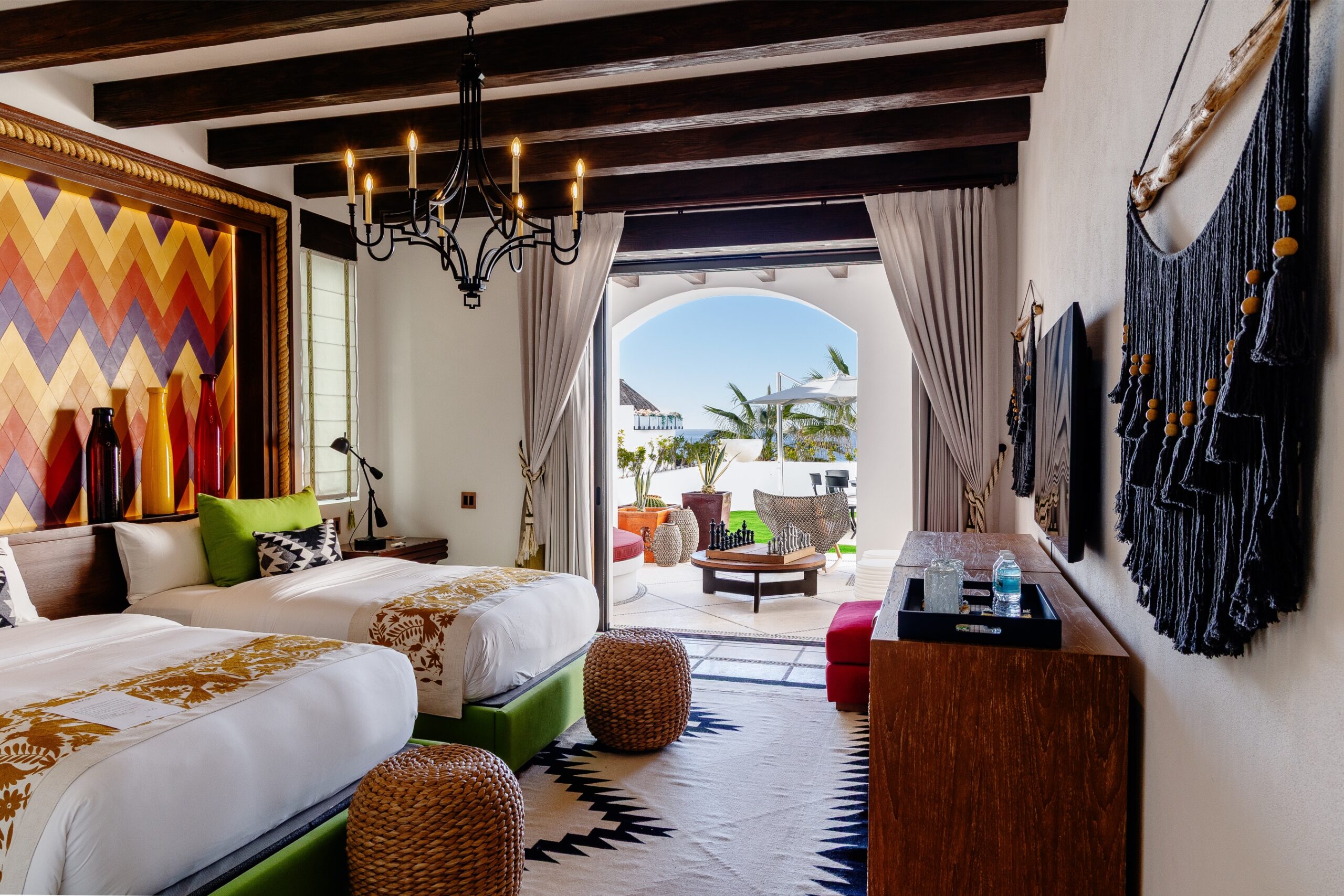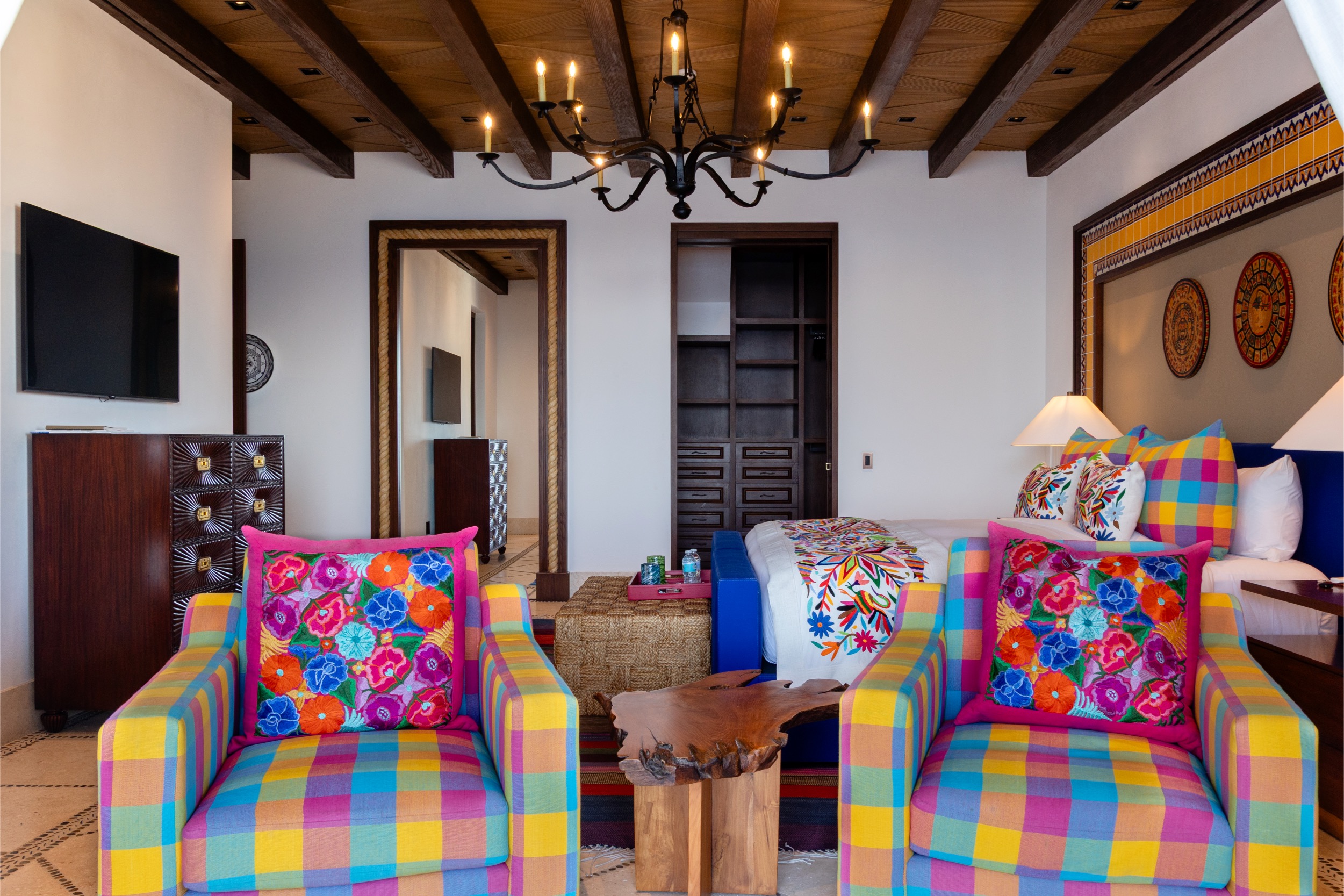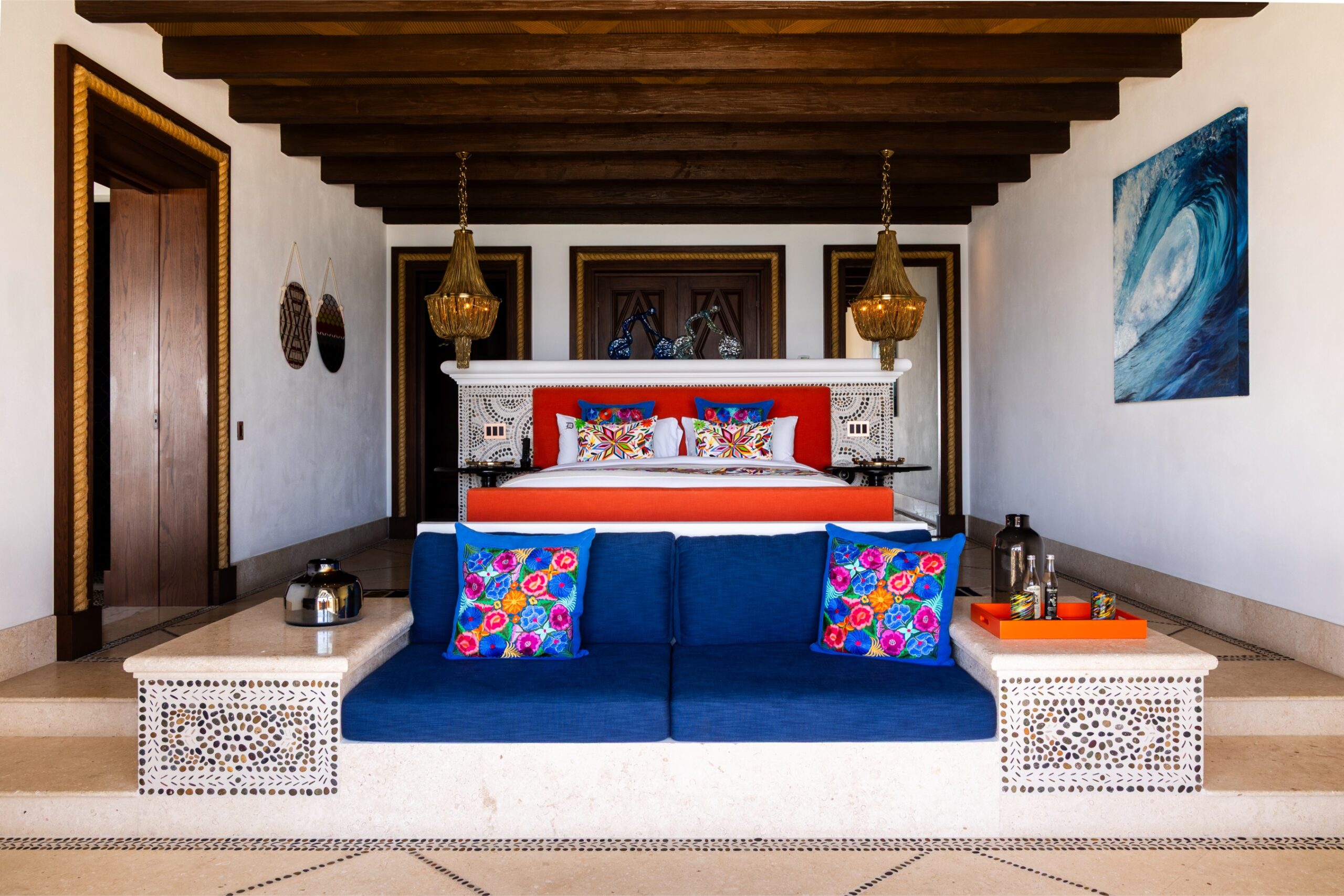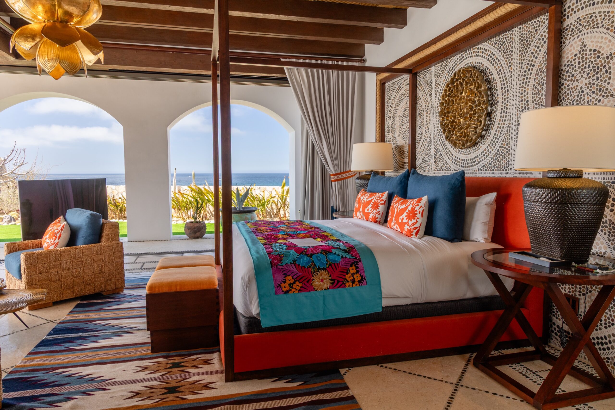 Villa La Datcha’s suites are all beautifully and comfortably designed, combining a striking Mexican color scheme with ample space, private ensuite bathrooms, and walk-in closets to make unpacking feel like you’re moving into your own beachfront home. Ten bedrooms serve as the focal point of milestone celebrations and multigenerational vacations, and the two oceanfront primary suites serve as peaceful havens.
