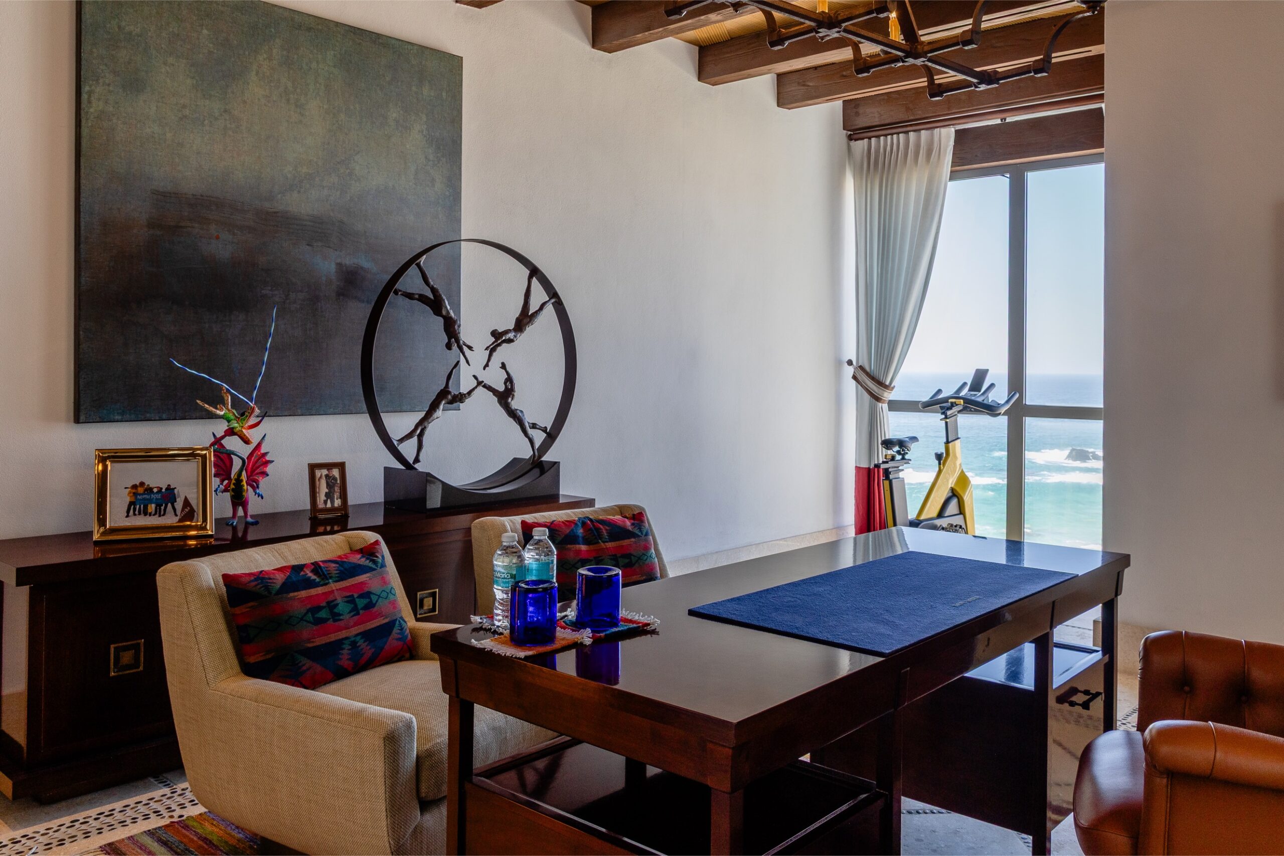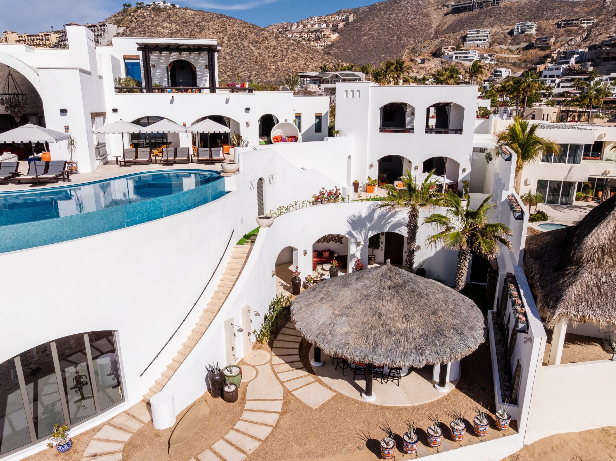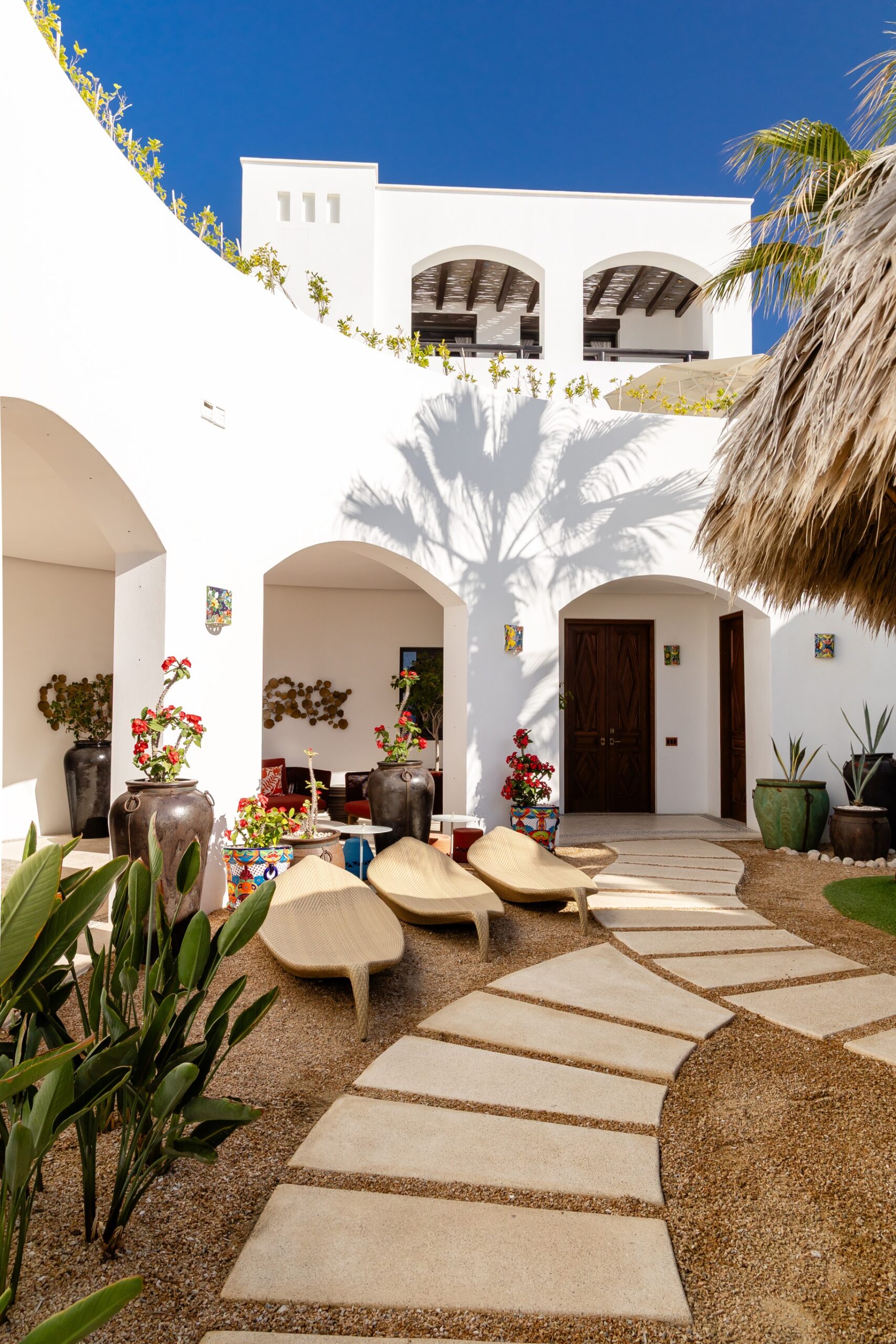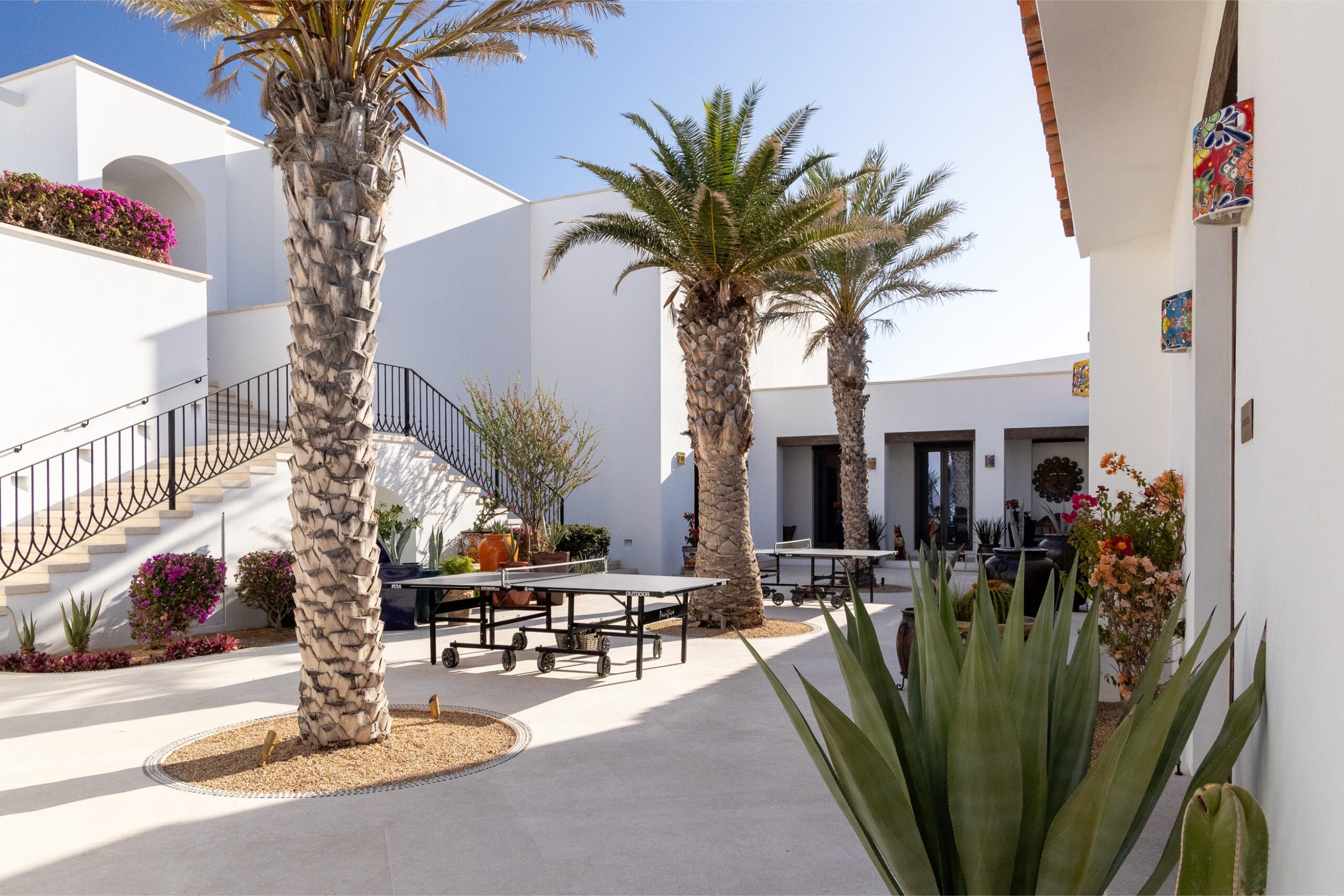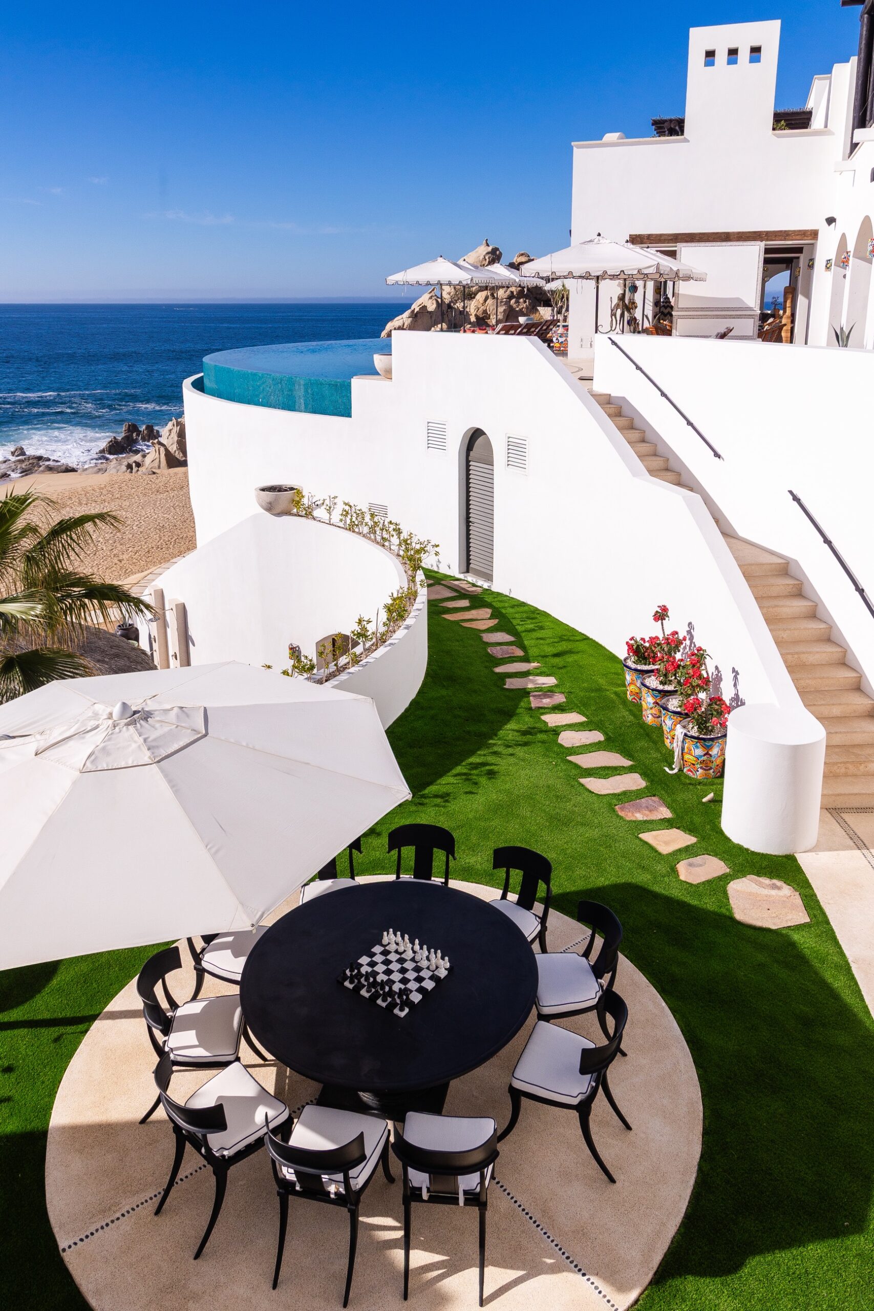 Sunrise walks and sunset viewing become daily rituals because of Cabo’s ideal climate, which includes up to 350 sunny days annually and sea temperatures that range from the low 20s °C in the winter to the high 20s °C in the summer. The villa’s pools and the serene waters of nearby Médano Beach are your best bet for safe swims and water toys. When you do venture down to the sand, keep in mind that you’re on the dramatic Pacific side, where it’s usually best for strolling and whale-spotting rather than swimming.