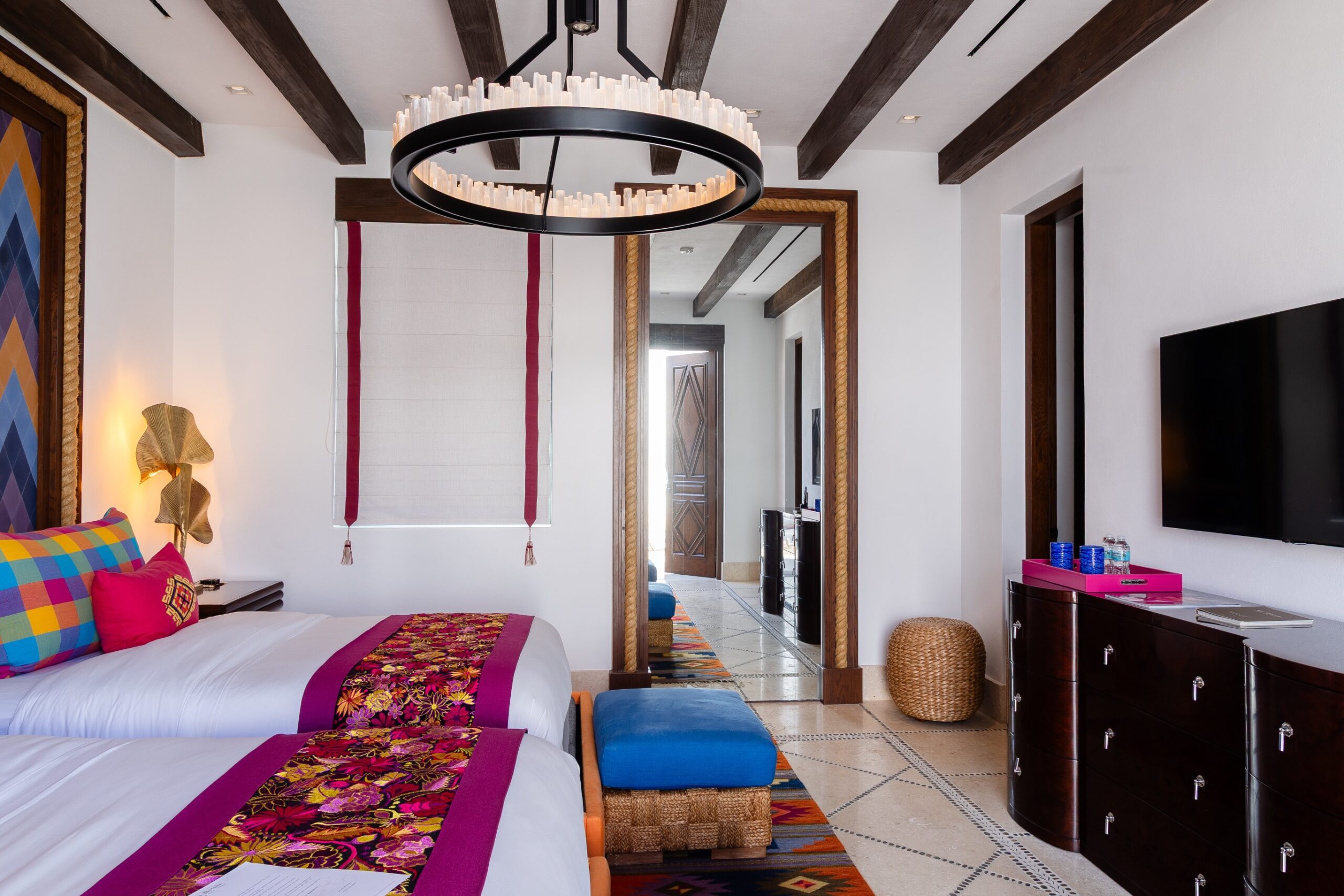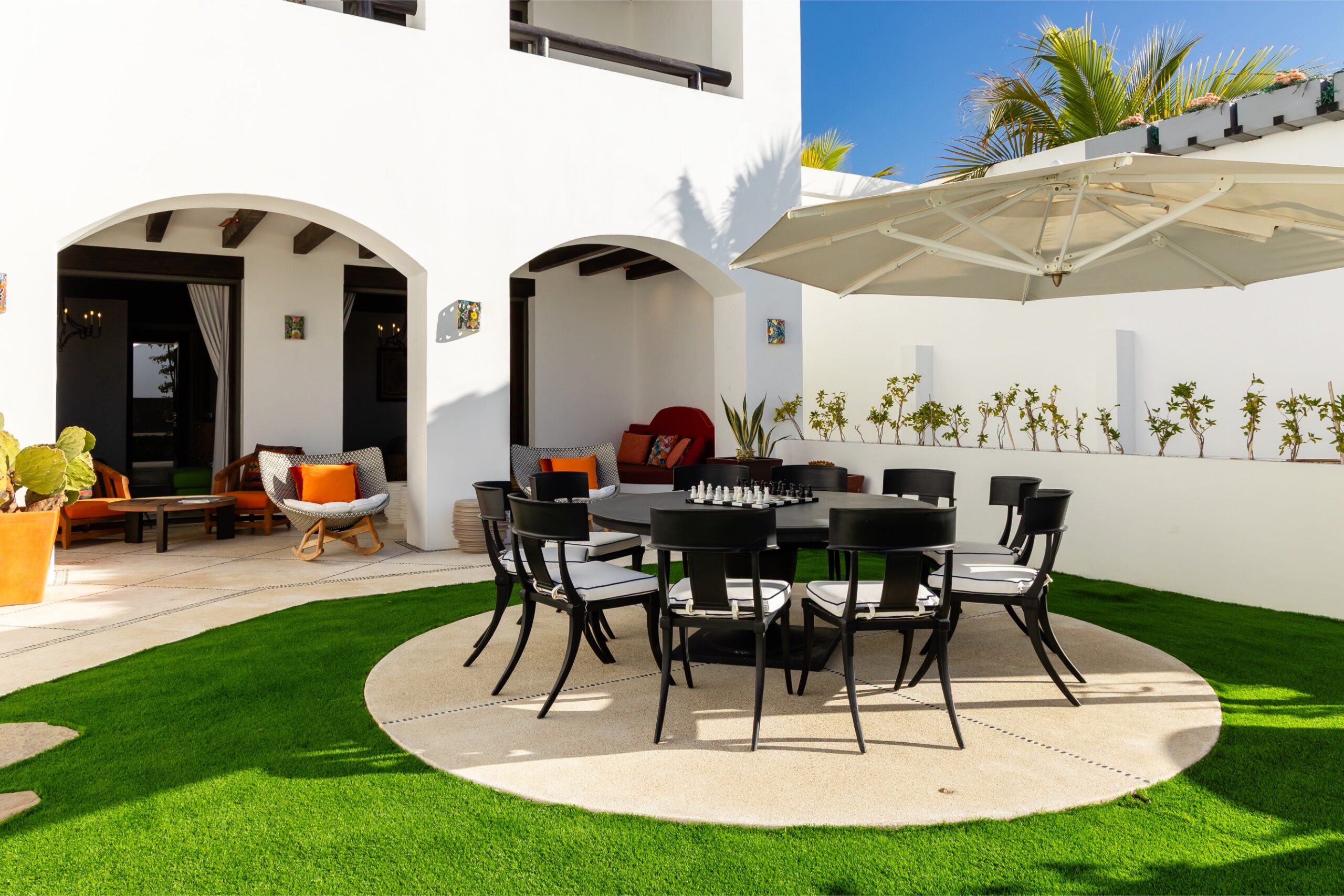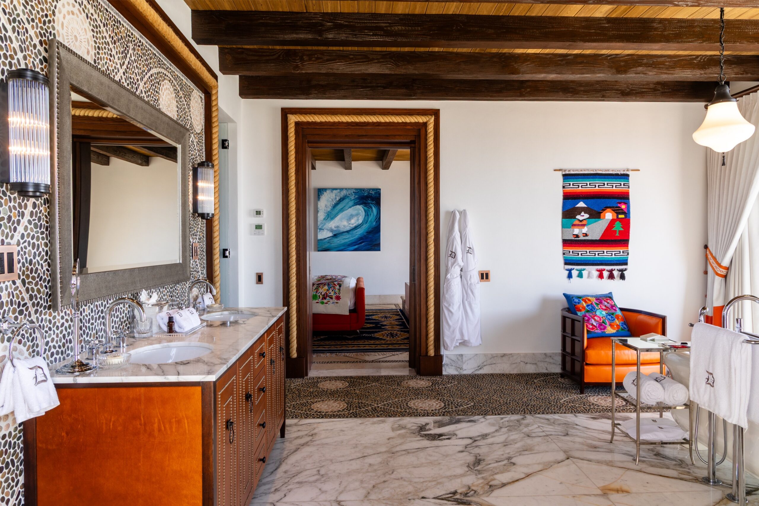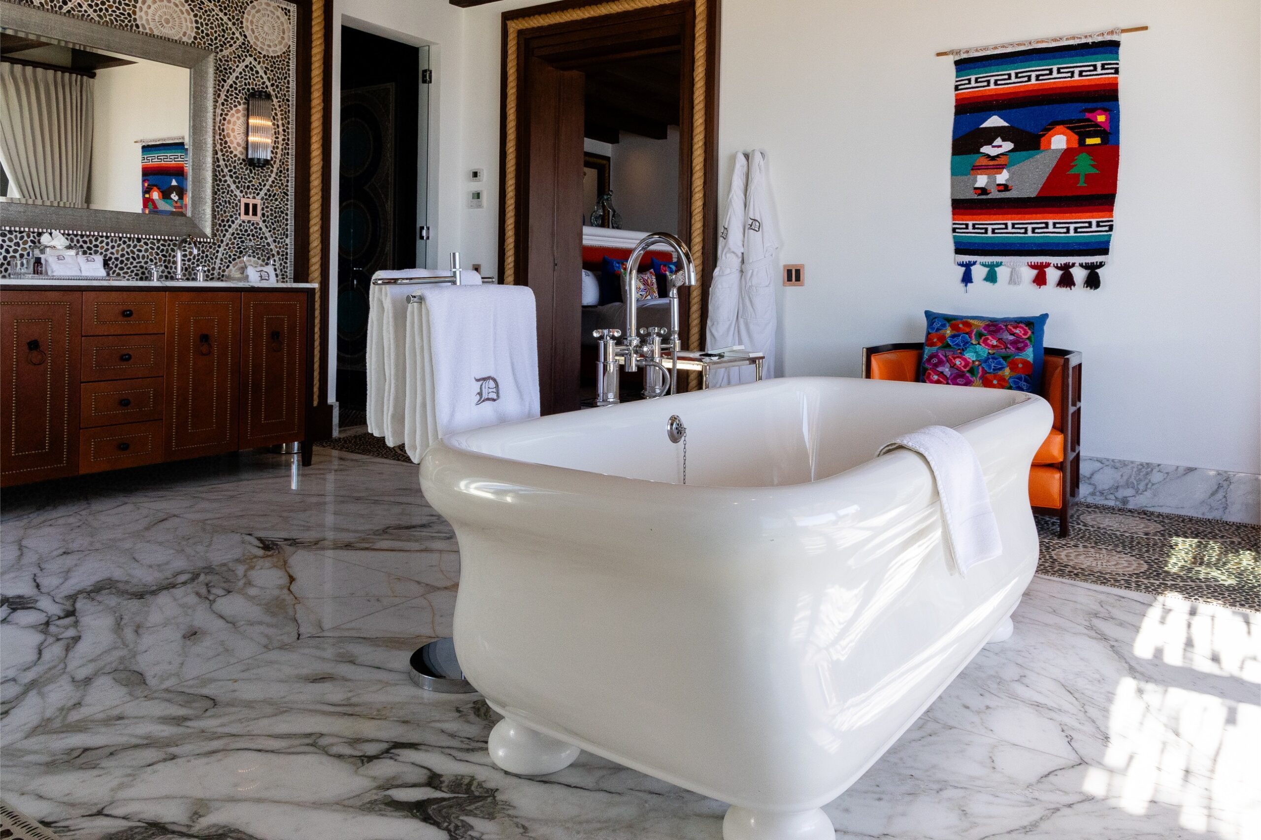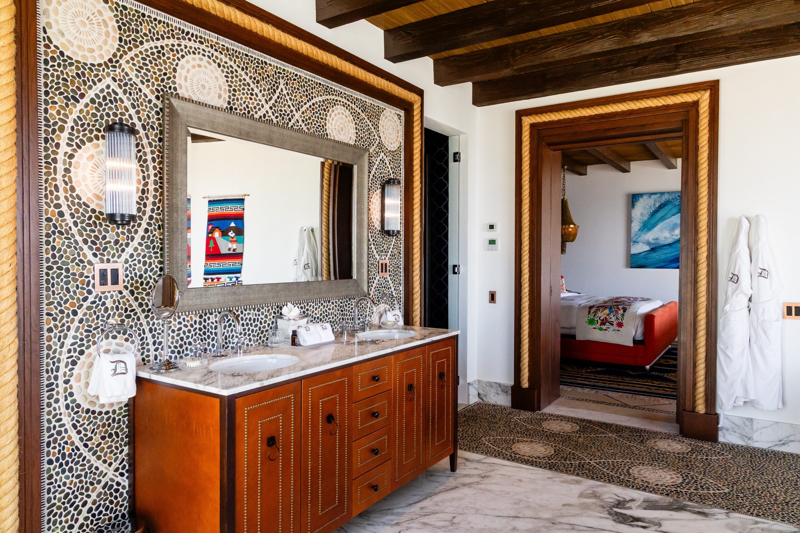 Sunrise walks and sunset viewing become daily rituals because of Cabo’s ideal climate, which includes up to 350 sunny days annually and sea temperatures that range from the low 20s °C in the winter to the high 20s °C in the summer. The villa’s pools and the serene waters of nearby Médano Beach are your best bet for safe swims and water toys. When you do venture down to the sand, keep in mind that you’re on the dramatic Pacific side, where it’s usually best for strolling and whale-spotting rather than swimming.